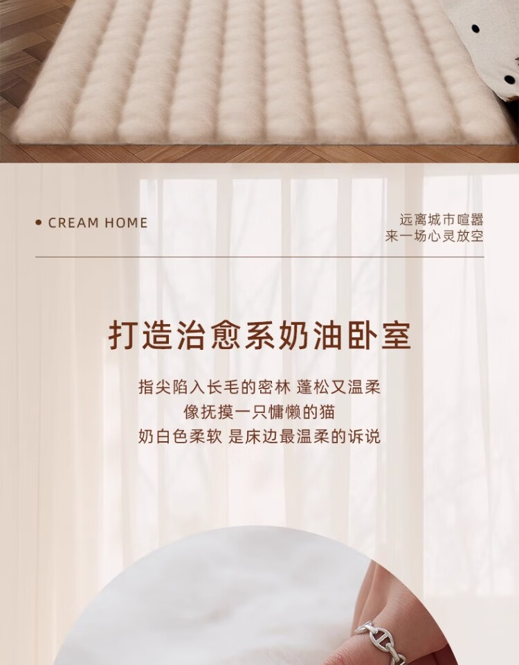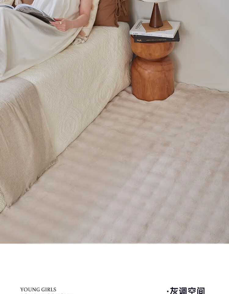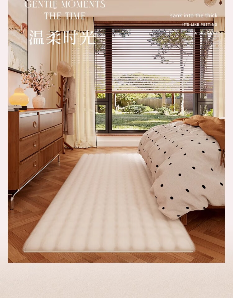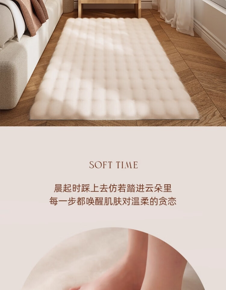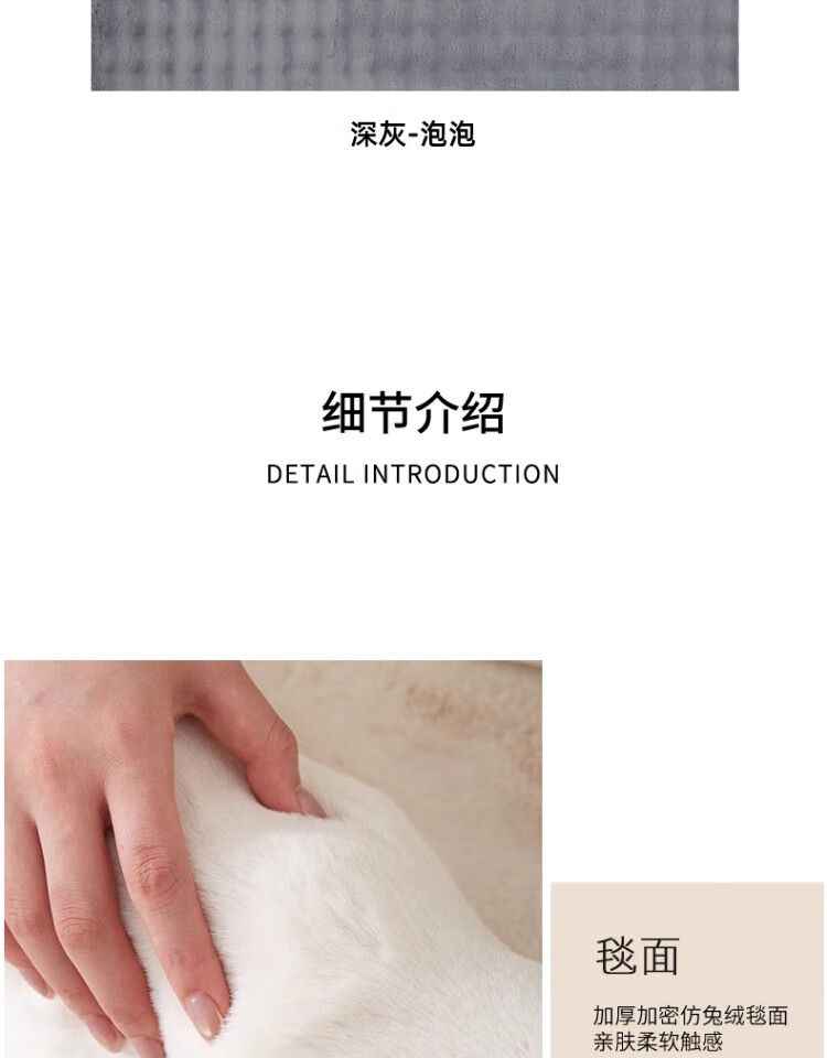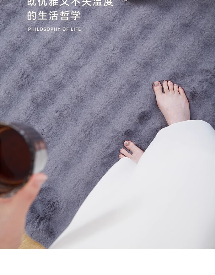 京华仿兔毛床边毯主卧室可机洗新款加厚加密不掉毛长条撸猫感毛绒地毯 深灰-泡泡 60cm*160cm 加厚加密材质