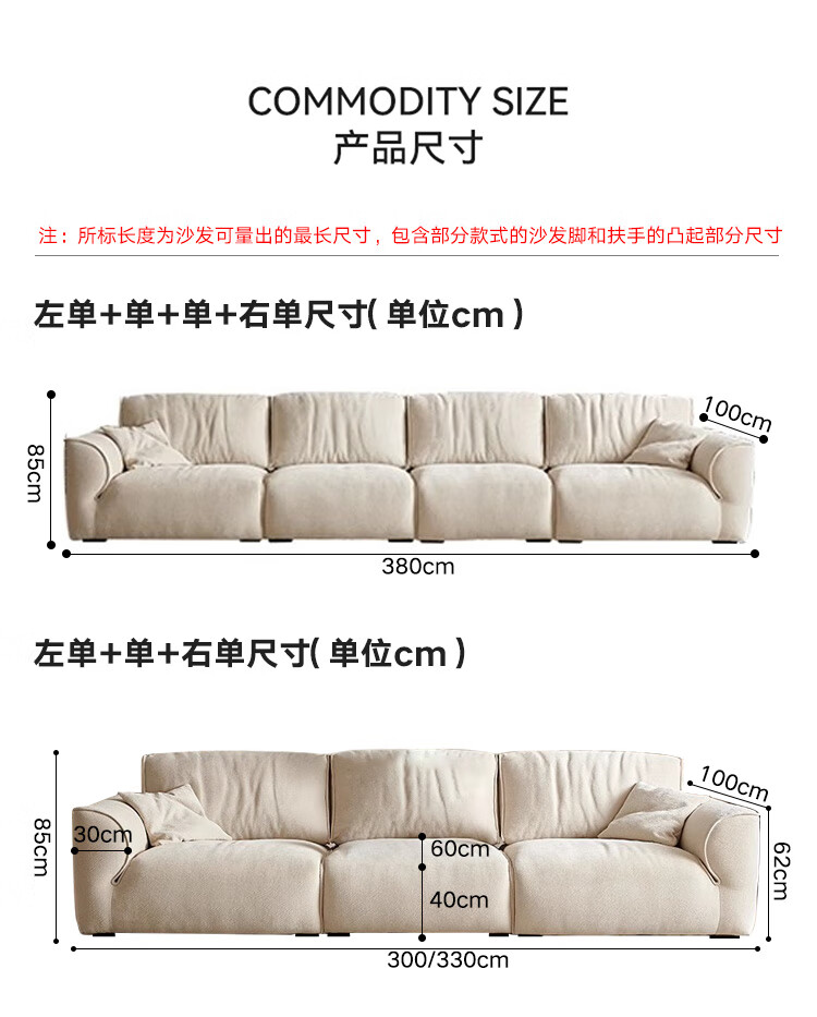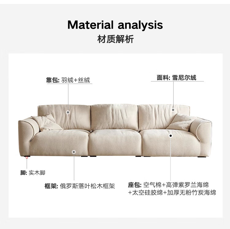 恋尚舒格兰德沙发佛山龙江厂家意式极简兰德里花瓣雪尼尔绒客厅直排沙发 3.8米左单+单+单+右单【新升级太空坐感/更释压 抗菌六防猫抓布(羽绒+硅胶棉+紫罗兰海绵)