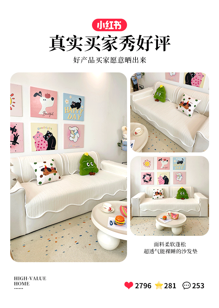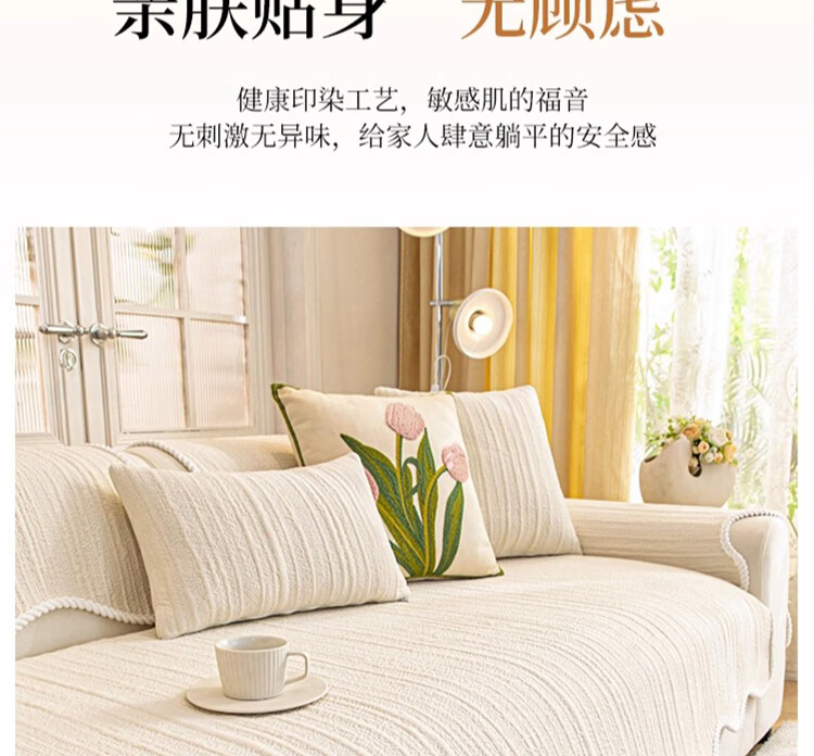 无印良品沙发垫四季通用奶油风沙发座垫皮沙发专用垫防滑防猫抓沙发坐垫 素晶-米白【透气防滑 四季适宜】 70*120cm