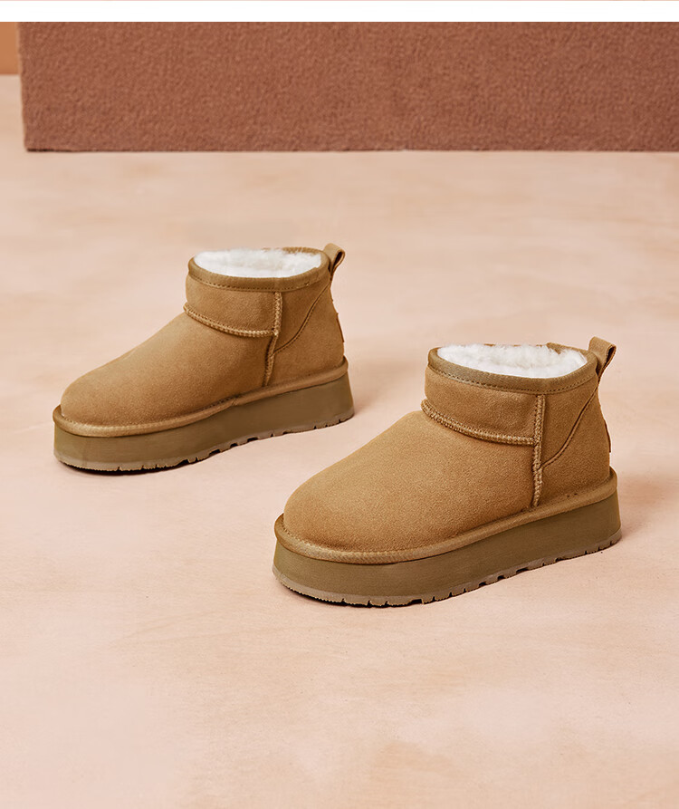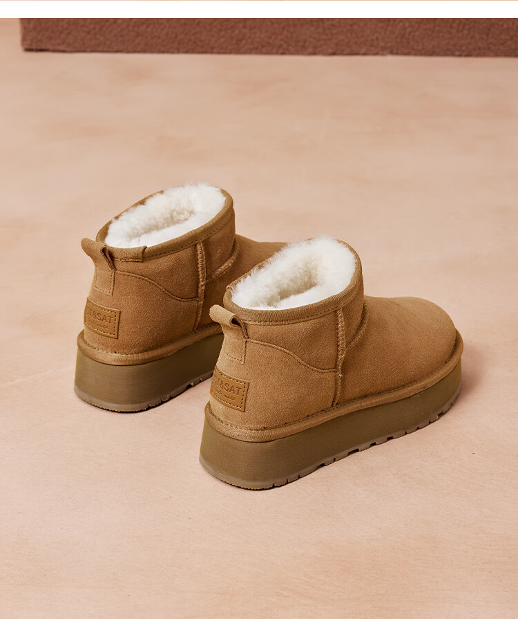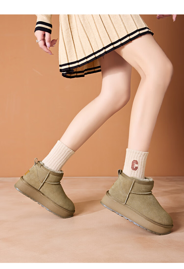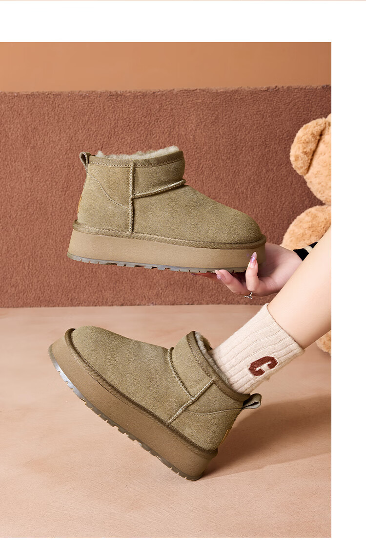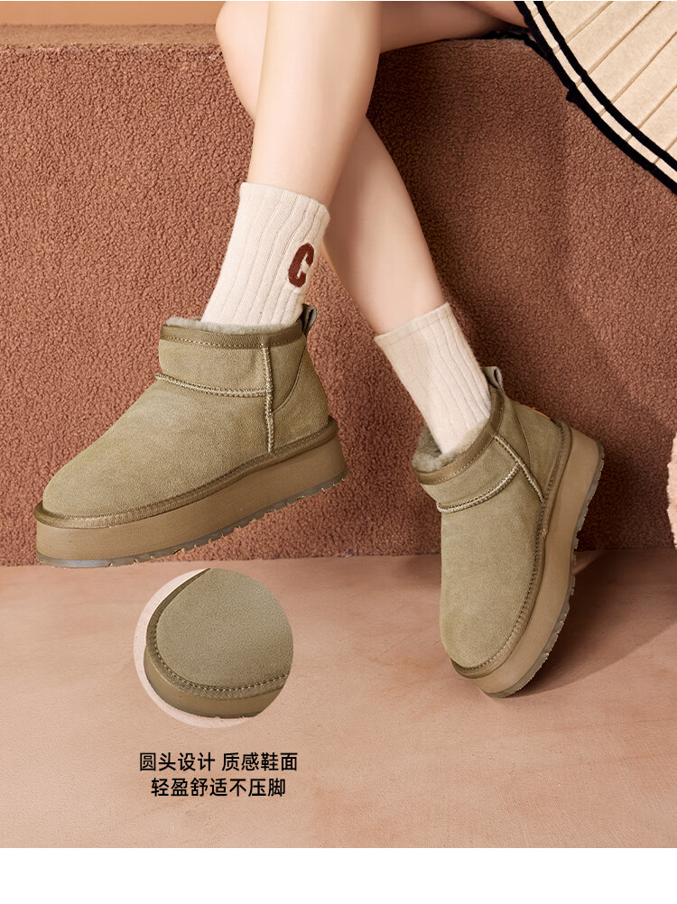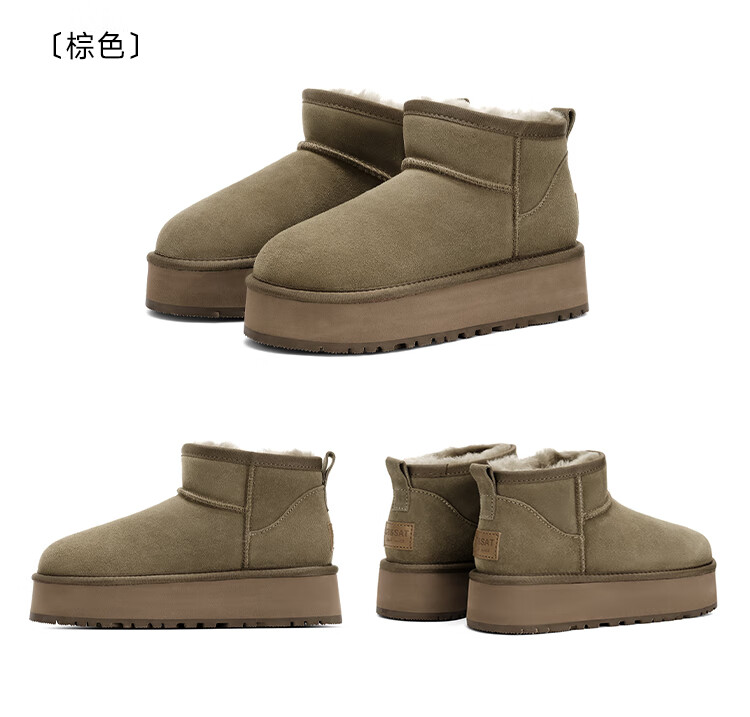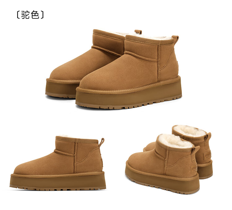 星期六加绒保暖厚底雪地靴2025冬季新款百搭轻便时尚棉鞋东北防寒毛毛鞋 驼色 【厚底加绒】跟高4cm 37
