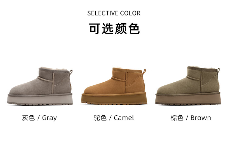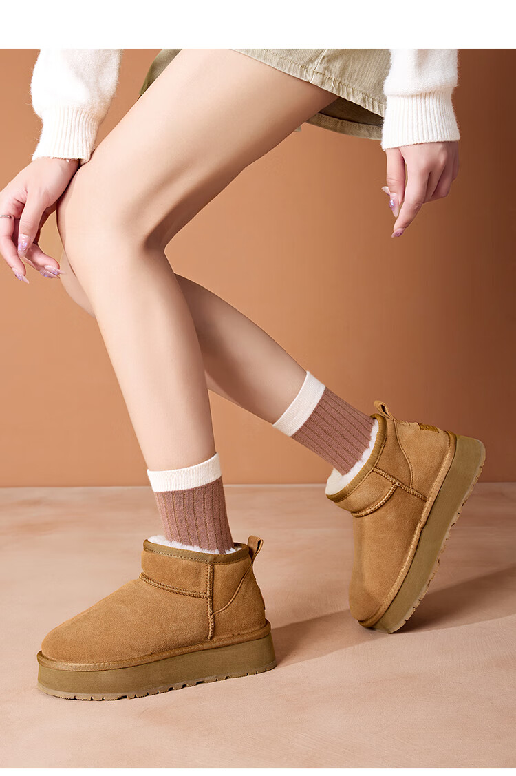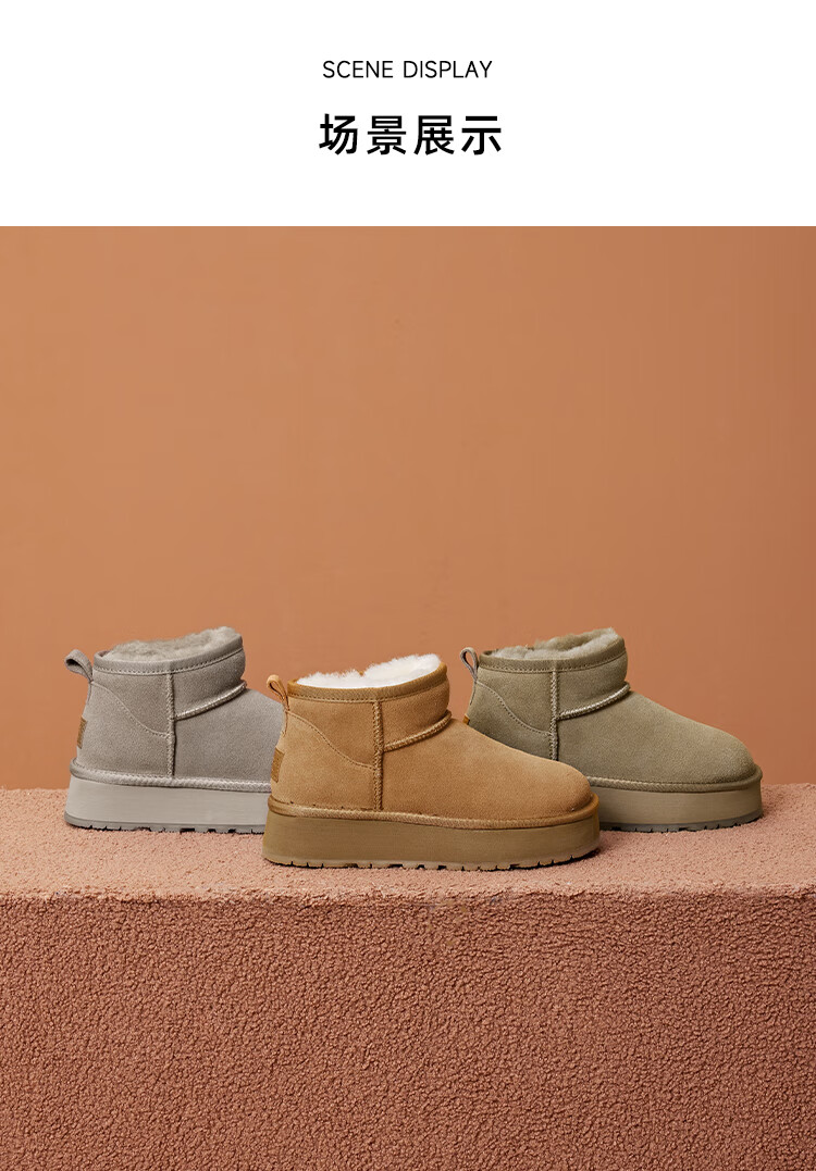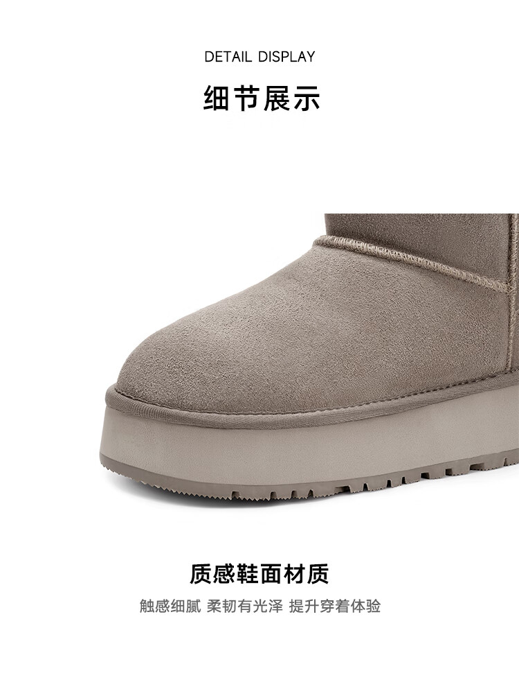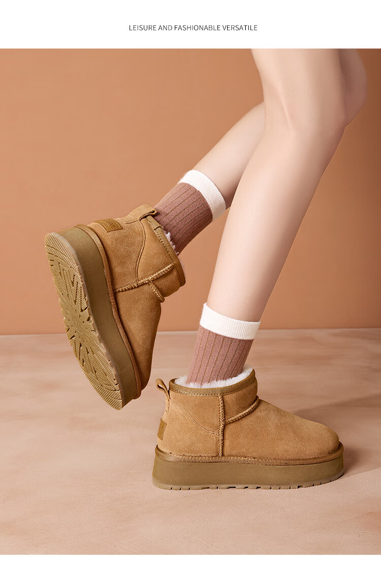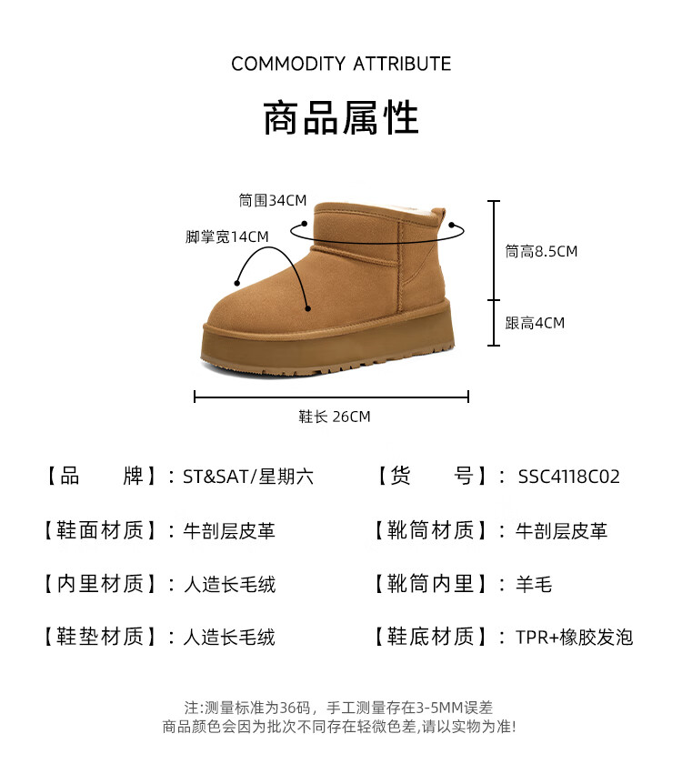 星期六加绒保暖厚底雪地靴2025冬季新款百搭轻便时尚棉鞋东北防寒毛毛鞋 驼色 【厚底加绒】跟高4cm 37