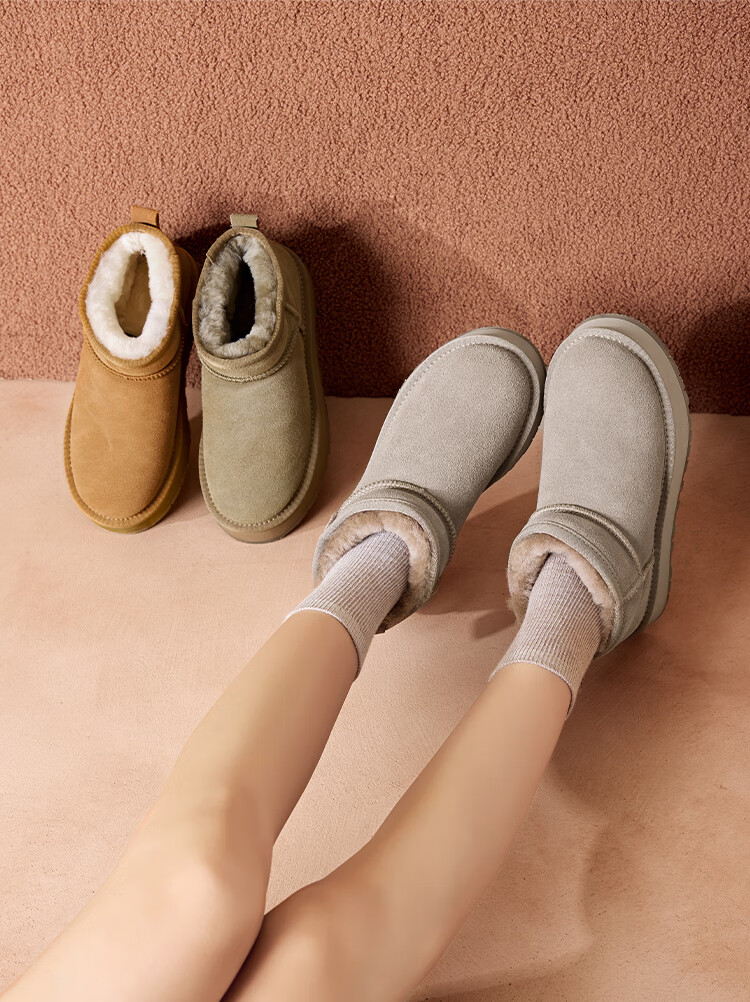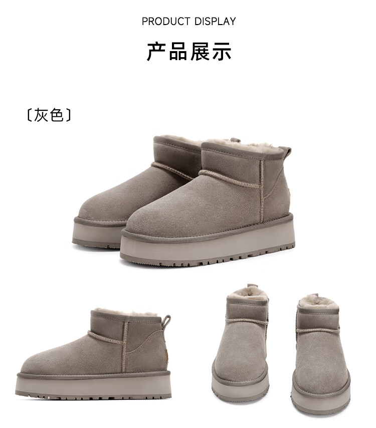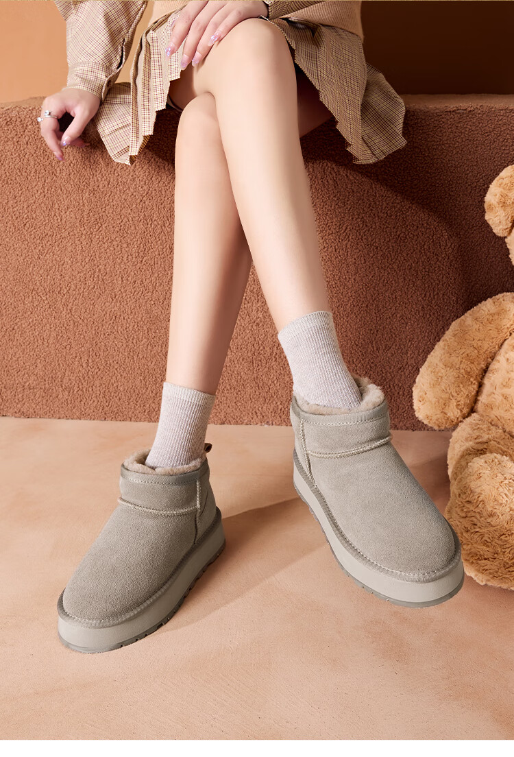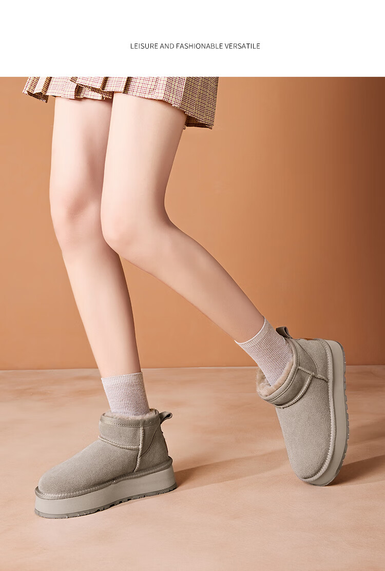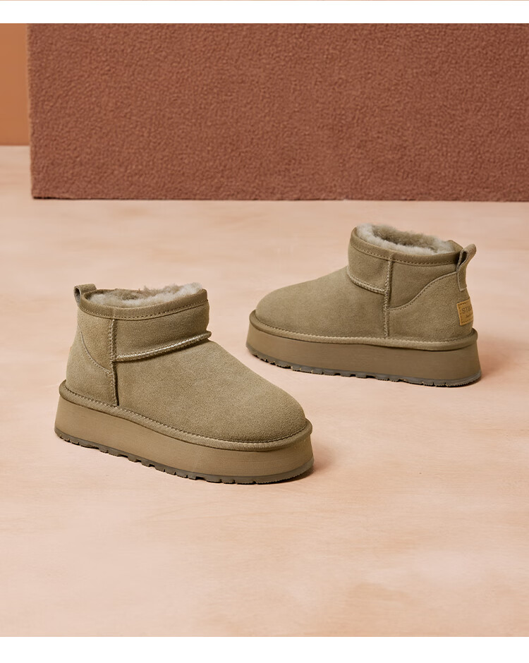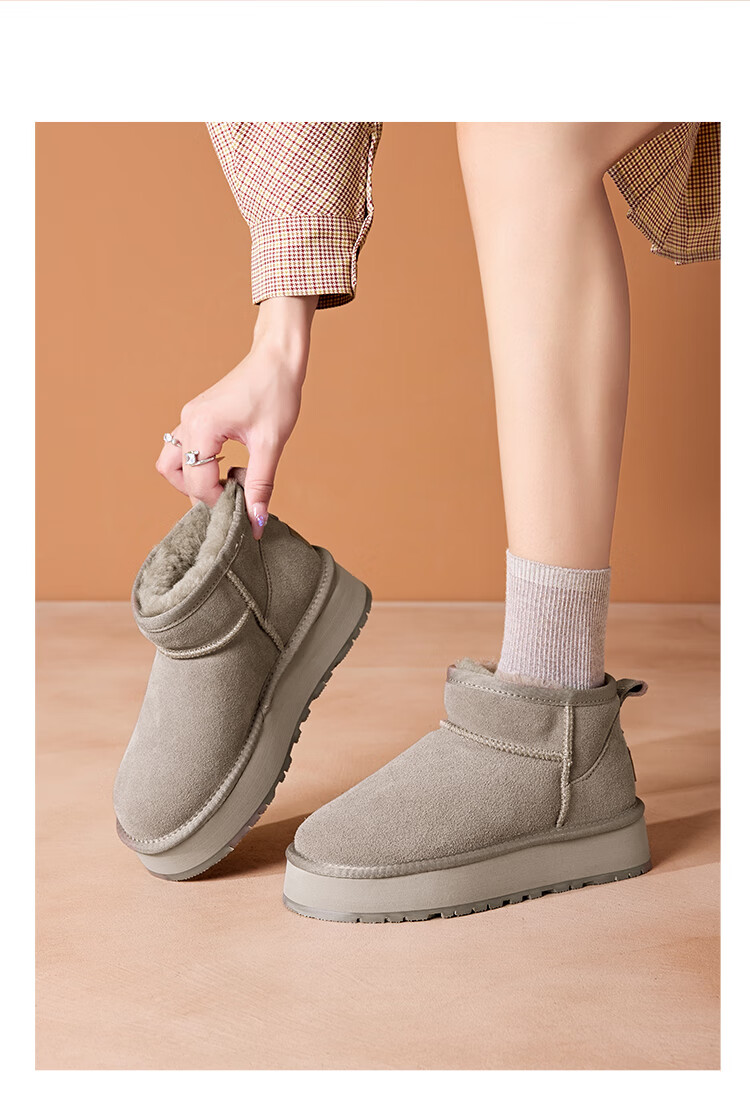 星期六加绒保暖厚底雪地靴2025冬季新款百搭轻便时尚棉鞋东北防寒毛毛鞋 驼色 【厚底加绒】跟高4cm 37