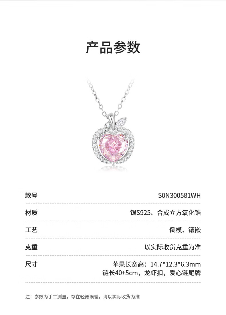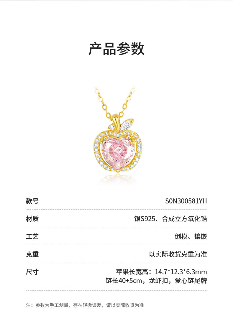 周大生【圣诞礼物】心愿苹果项链女款平安夜礼物女生纯银925轻奢高级
