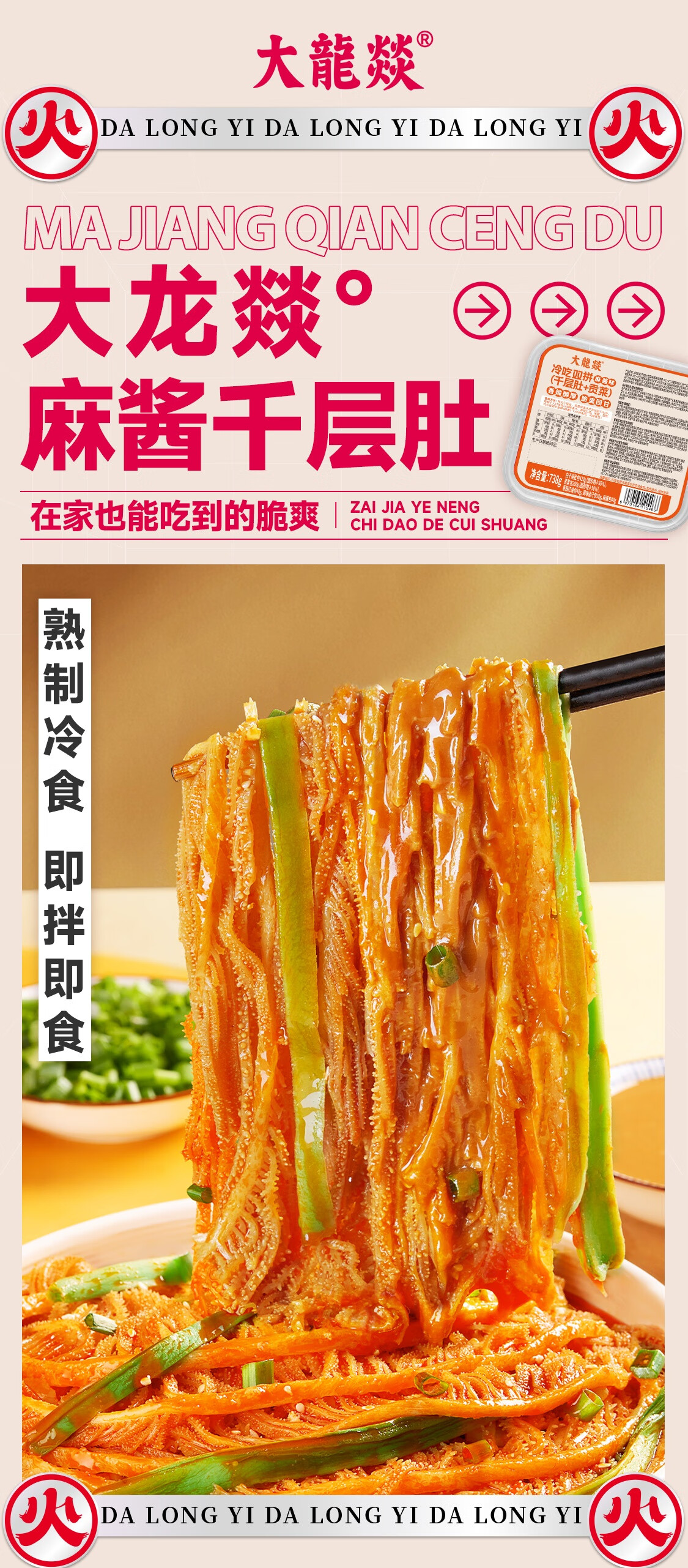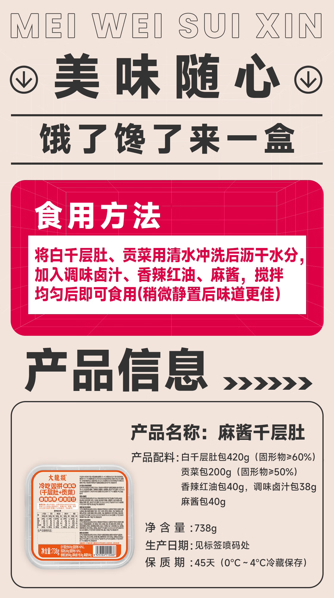 大龍燚大龙燚麻酱冷吃千层肚贡菜毛肚双拼凉拌即食零食毛肚净重738g