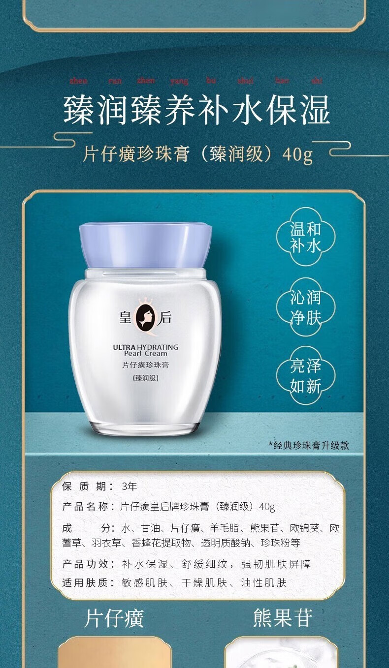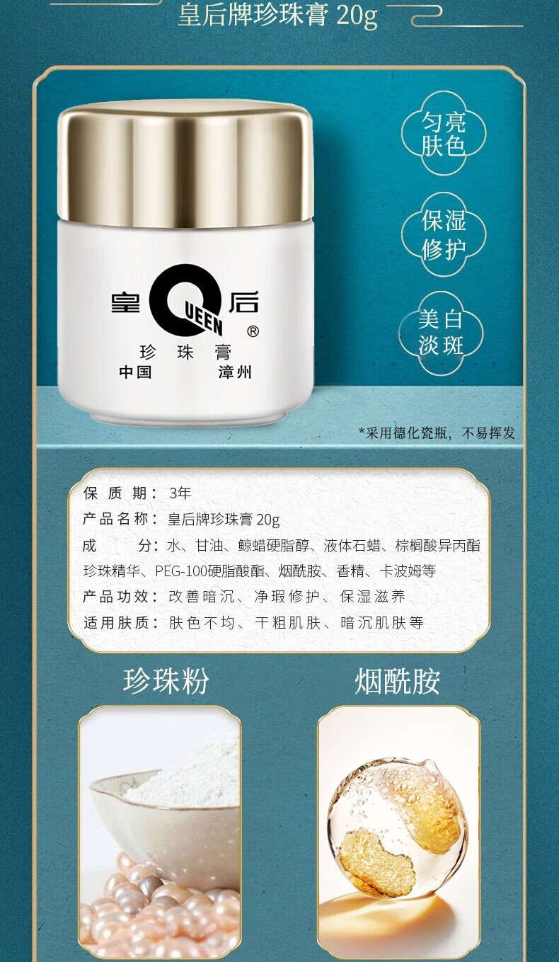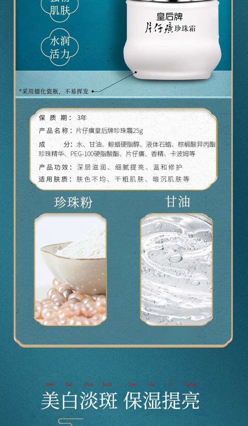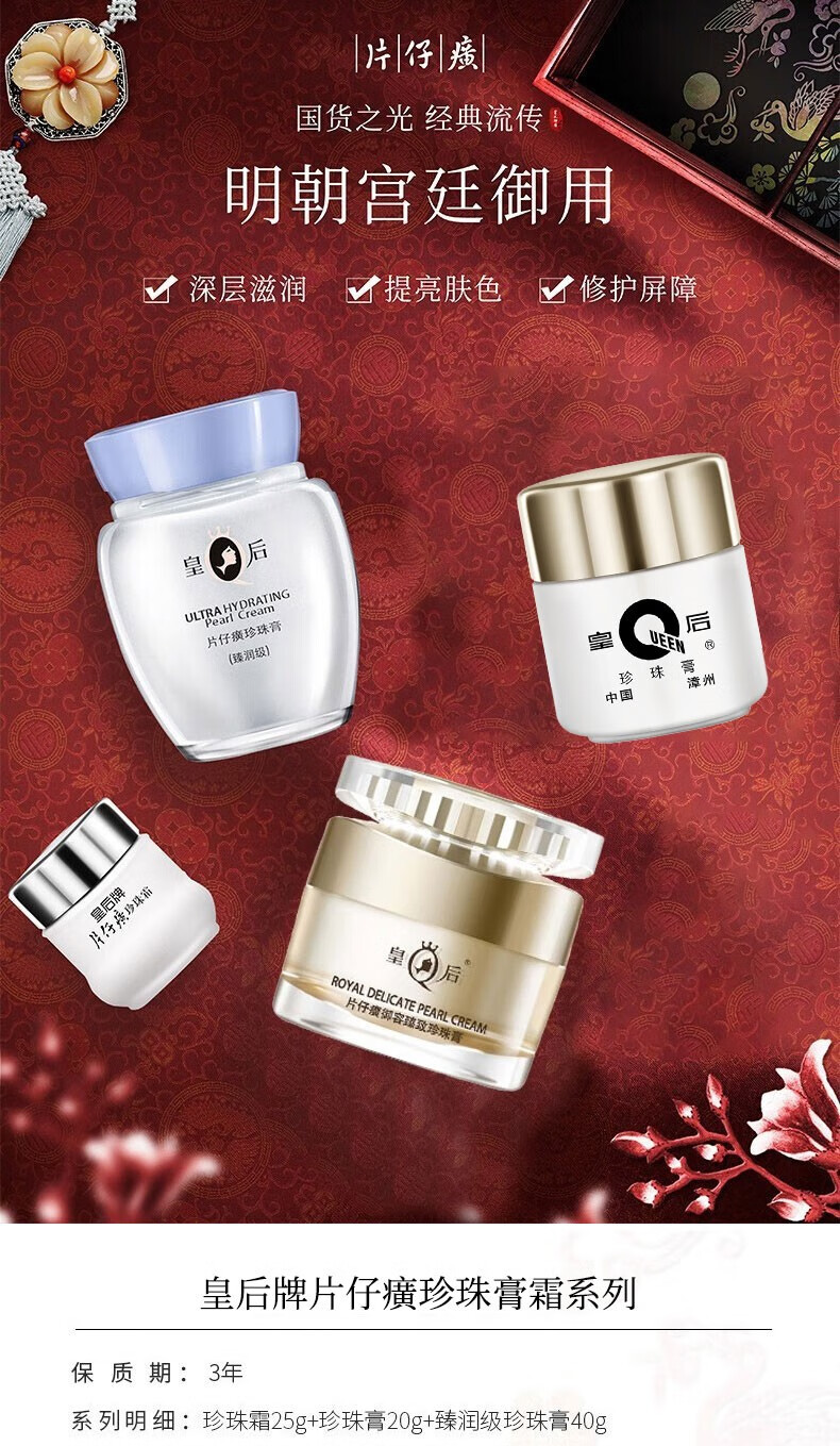片仔癀【官方直售】皇后牌珍珠霜膏美白祛斑面霜提亮肤色滋润补水男女士 【店长推荐】珍珠霜25g*3瓶