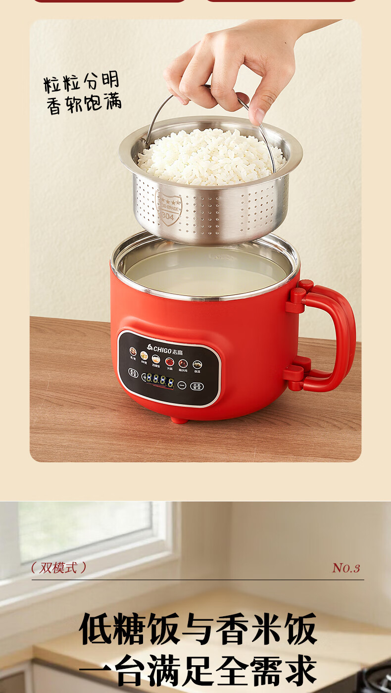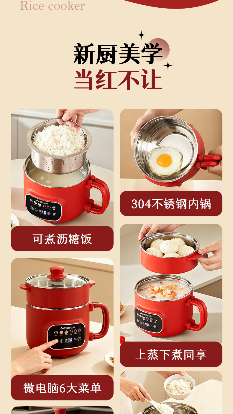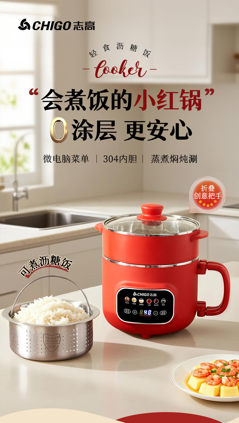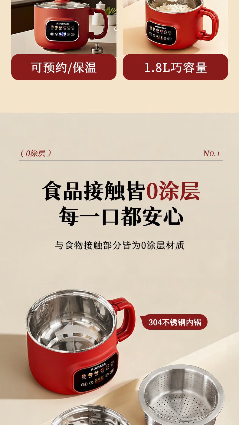 志高新款电煮锅多功能沥糖电饭煲煮粥煲汤学生家用多功能小电锅 1.8L 升级款【304钢胆0涂层】可煮沥糖饭