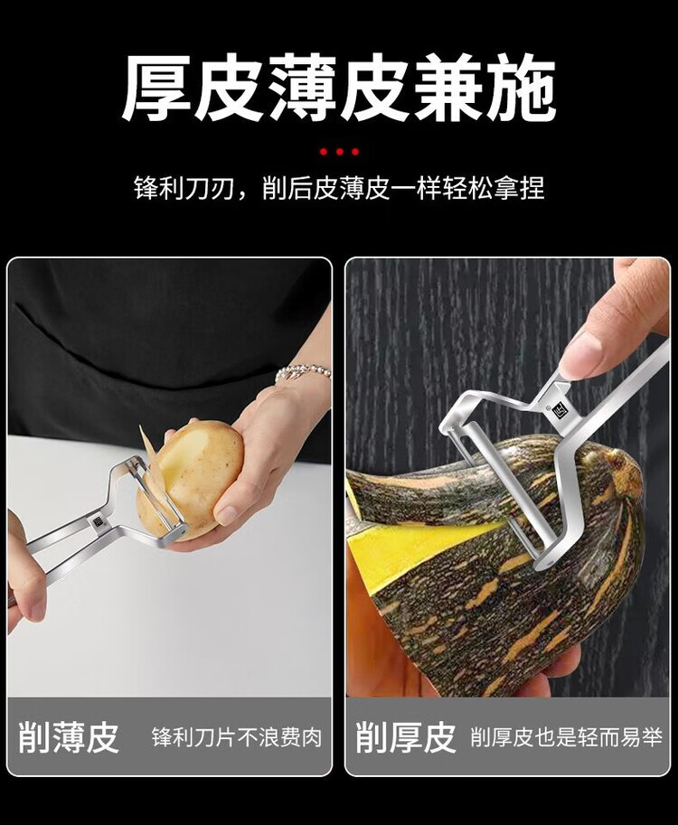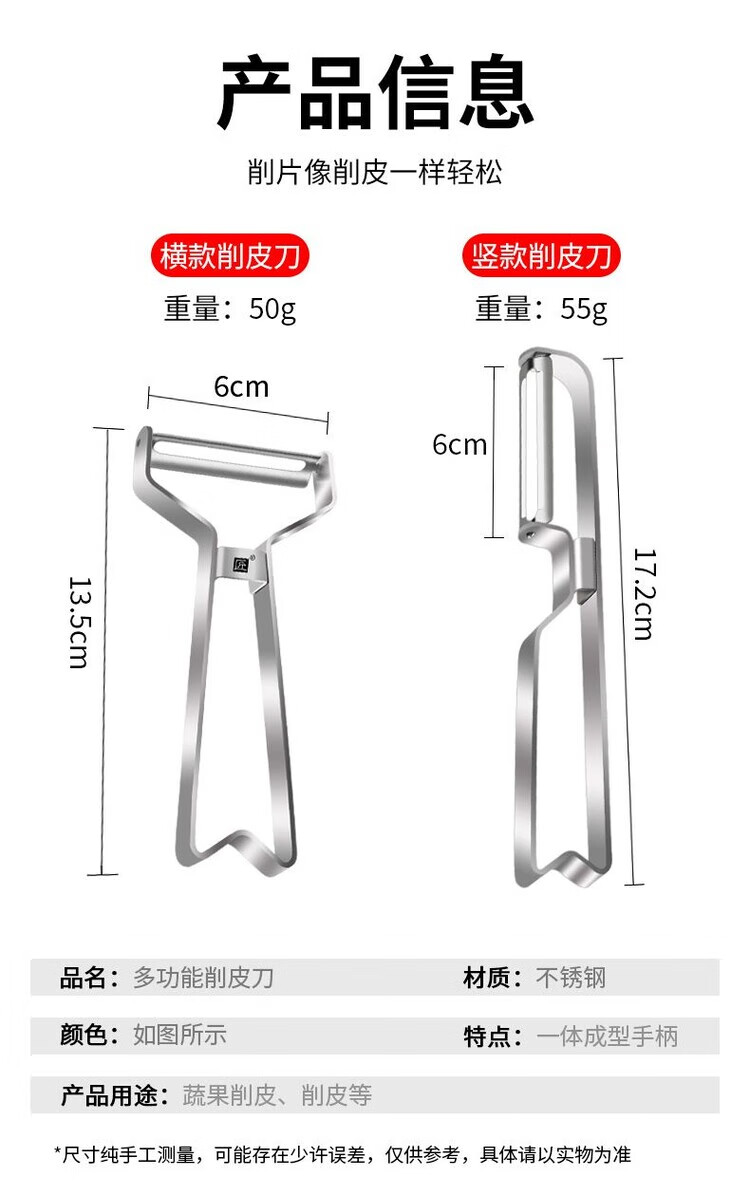 简漾不锈钢削皮刀土豆去皮神器厨房水果家用多功能刮皮刀苹果削皮刀 银灰瓜刨(塑料柄竖形)