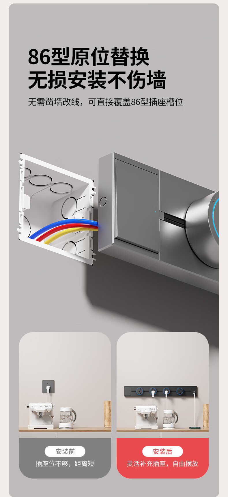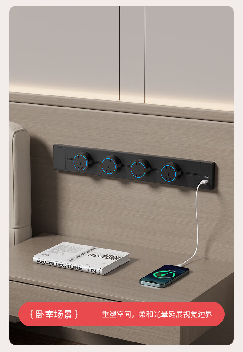 施耐德(Schneider)明装轨道插座 善弈臻意金属款 免开槽可移动电力插座壁挂式插座 臻意金属款 50cm+3个五孔【暮云灰】