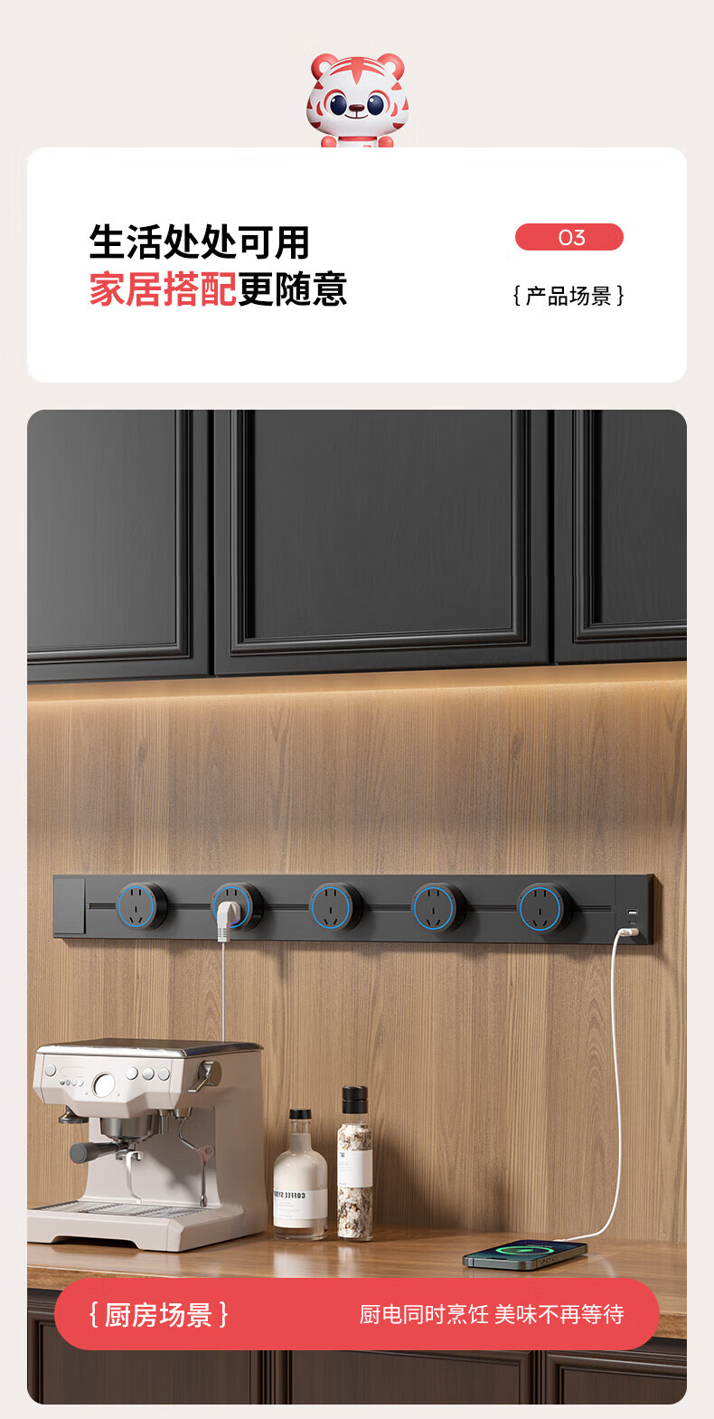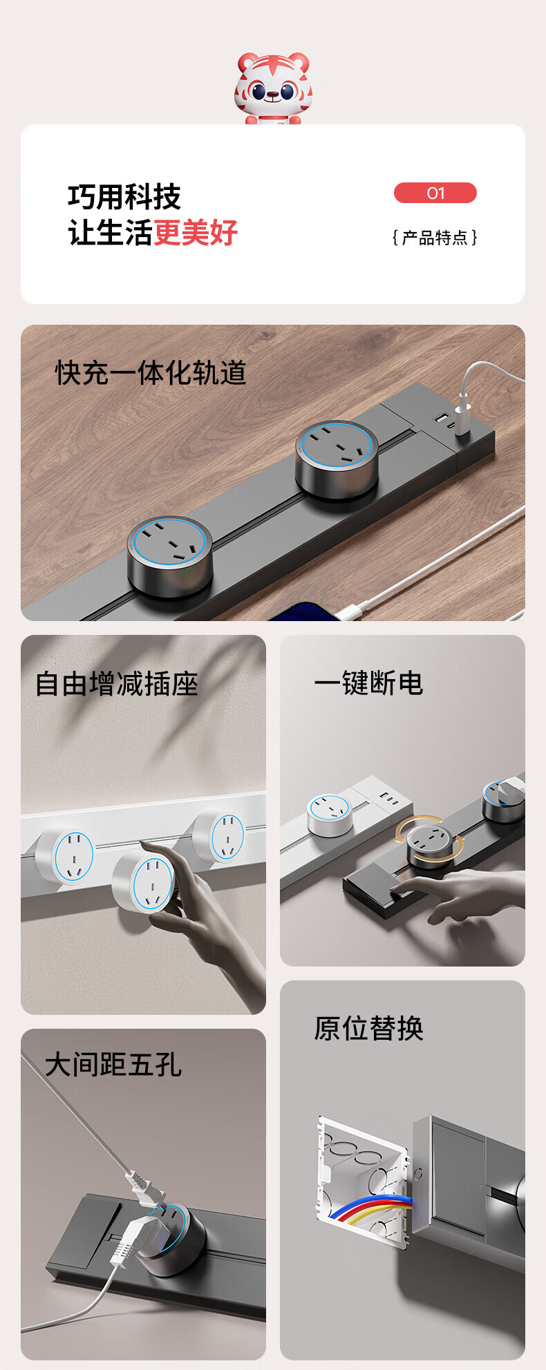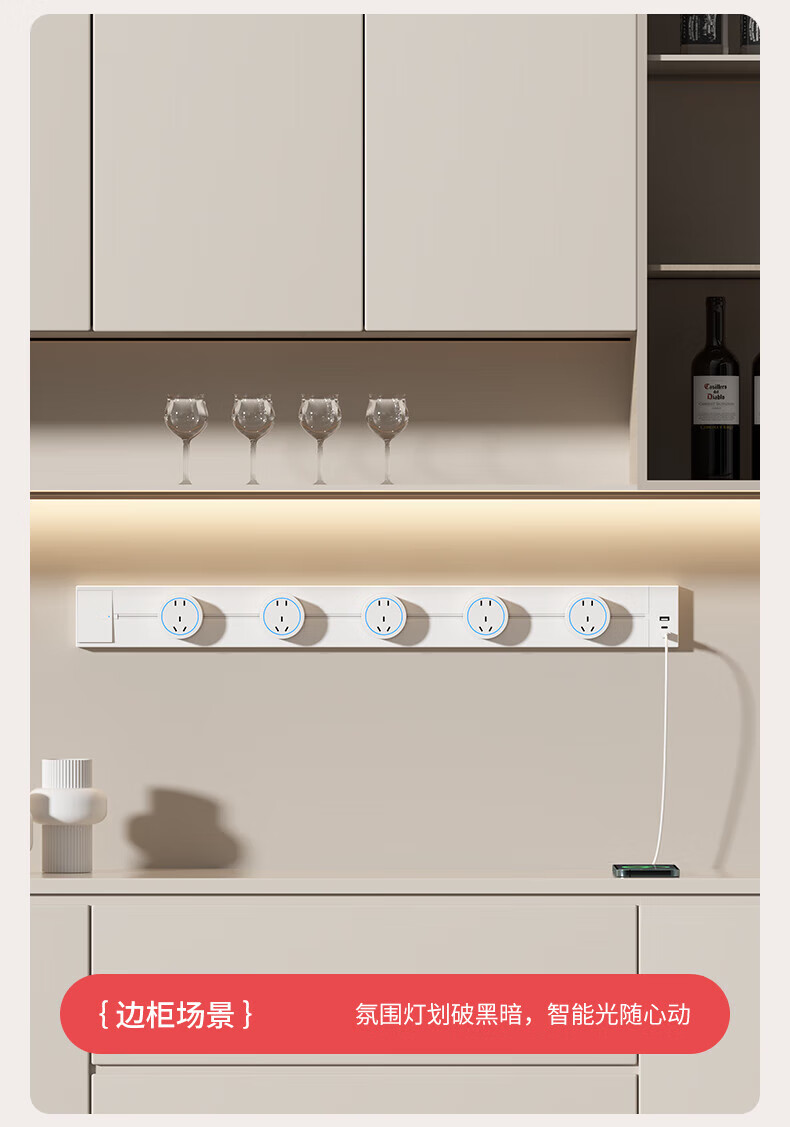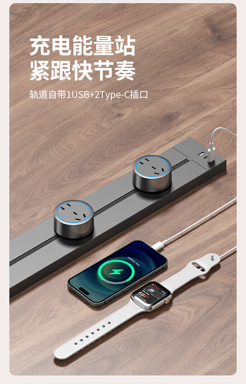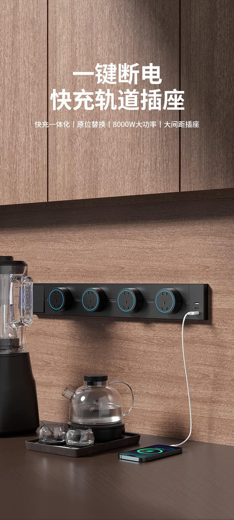 FDD国际电工免打孔轨道插座快充一体可移动插座带开关控制厨房电力滑轨插座 白色【带开关+USB+typec】 USB+Type-c适配器(不含轨道)
