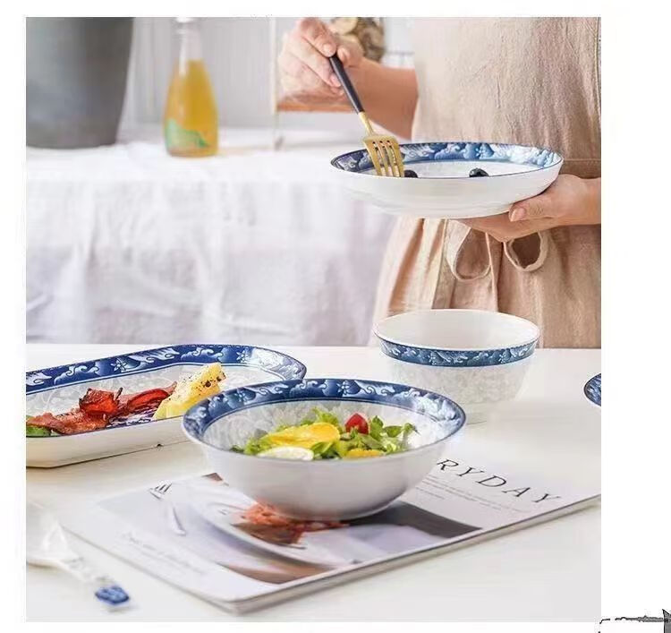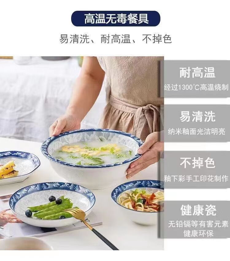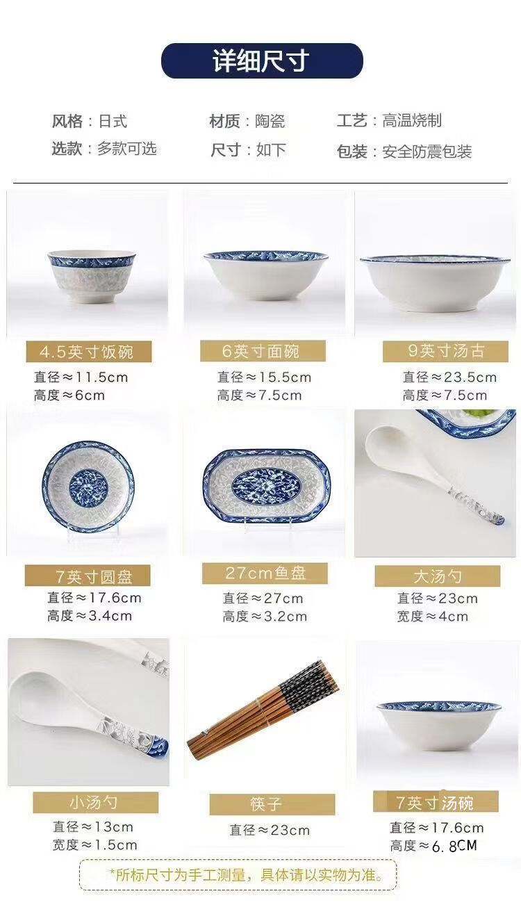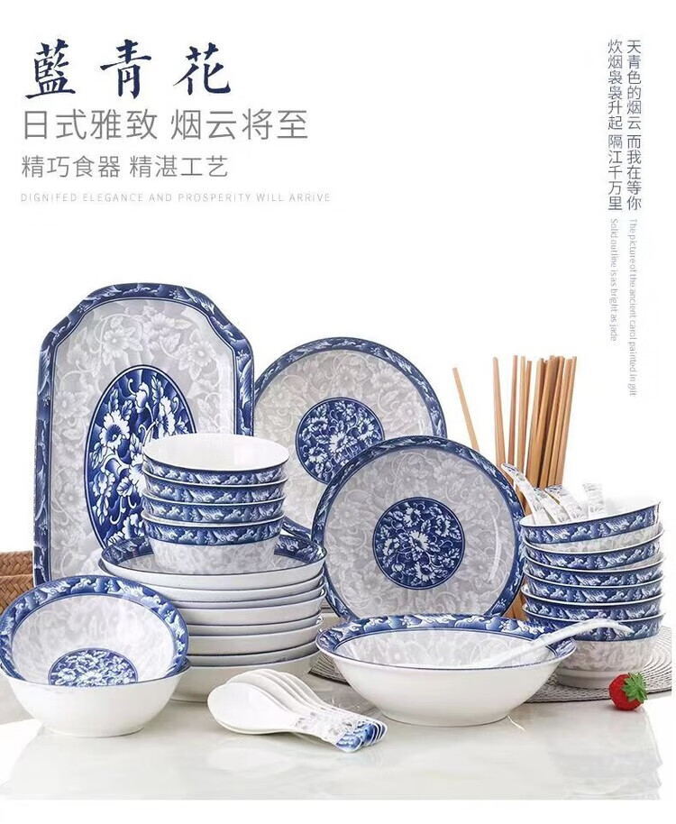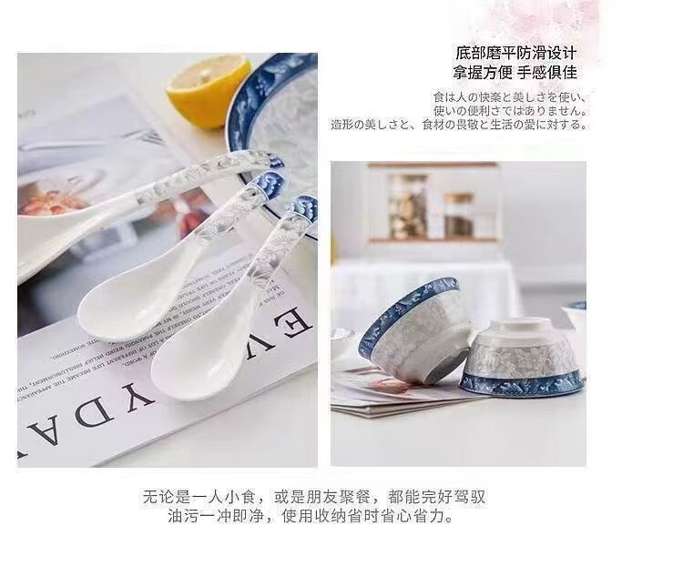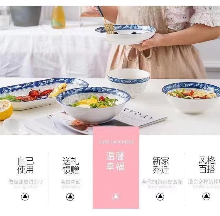 LZJV碗盘碟套装家用景德镇碗筷陶瓷器吃饭碗菜盘面汤碗鱼盘勺组合餐具 4碗4盘4勺4筷2面碗