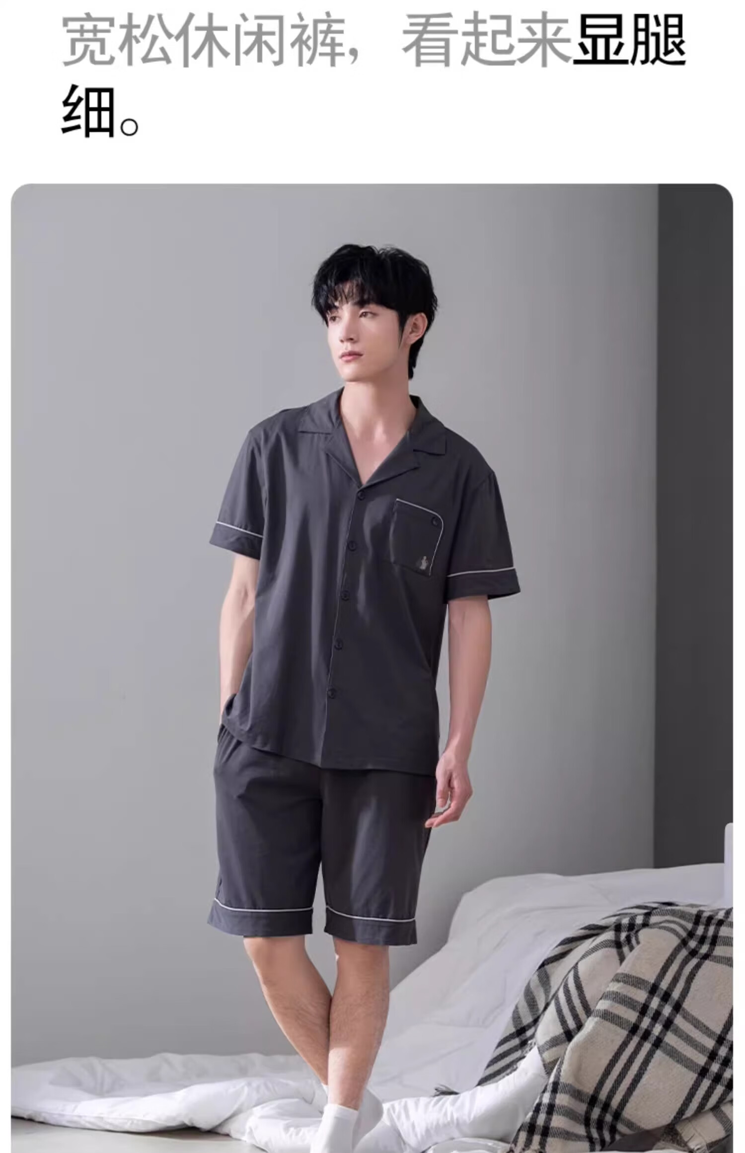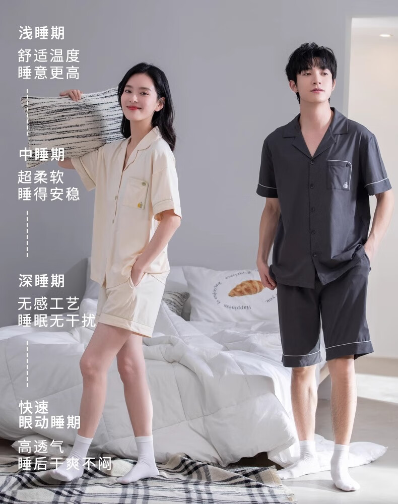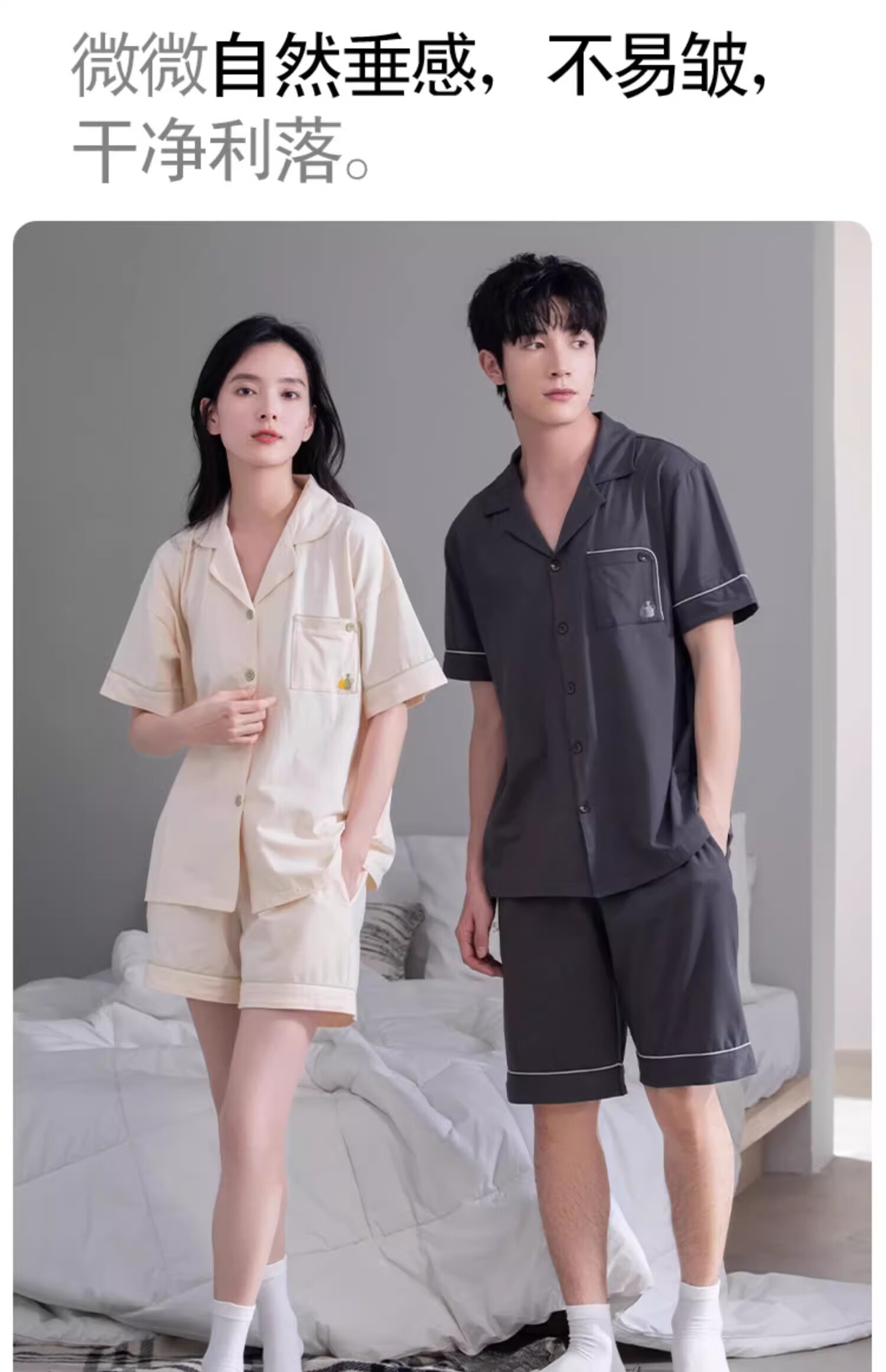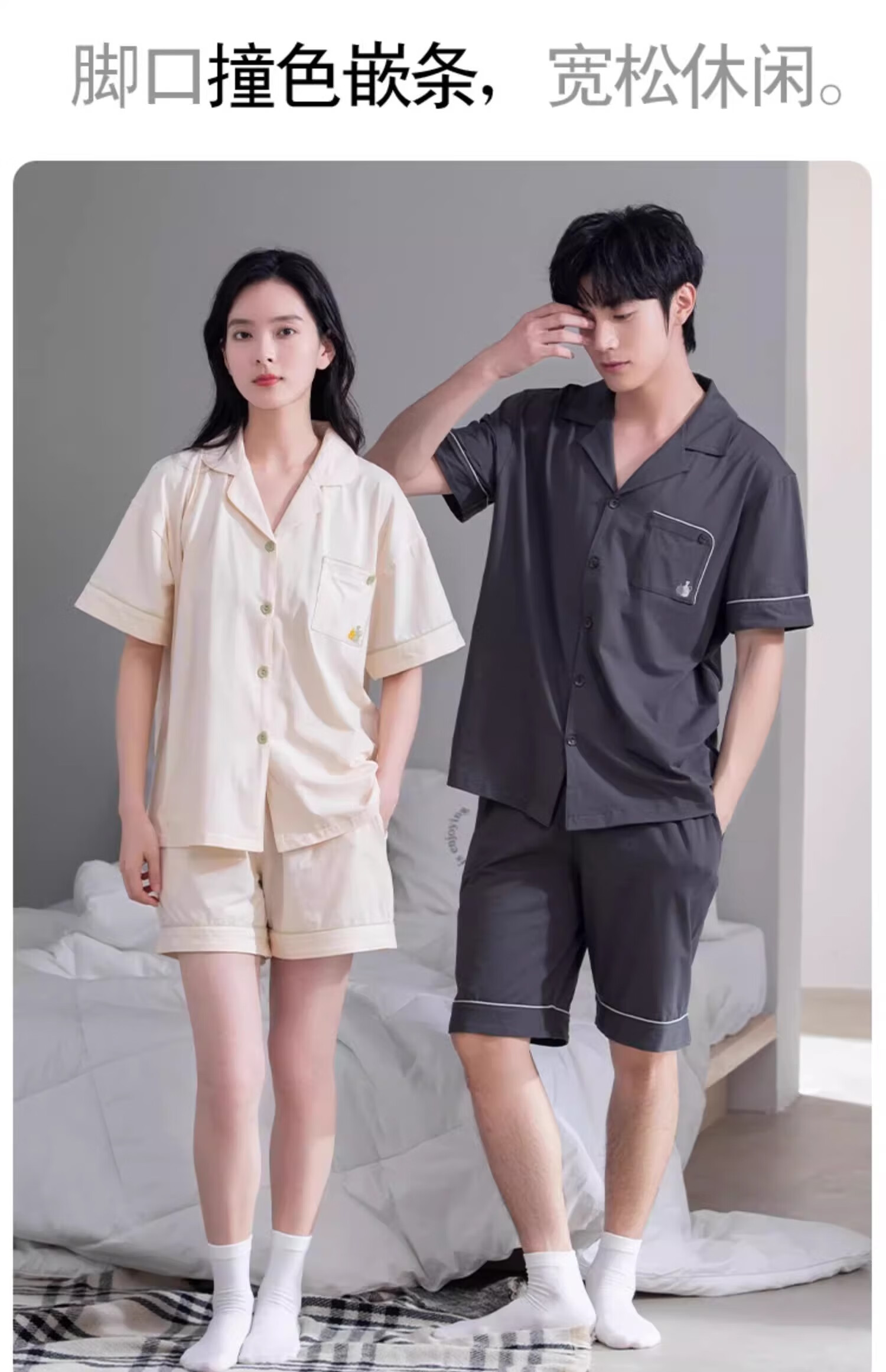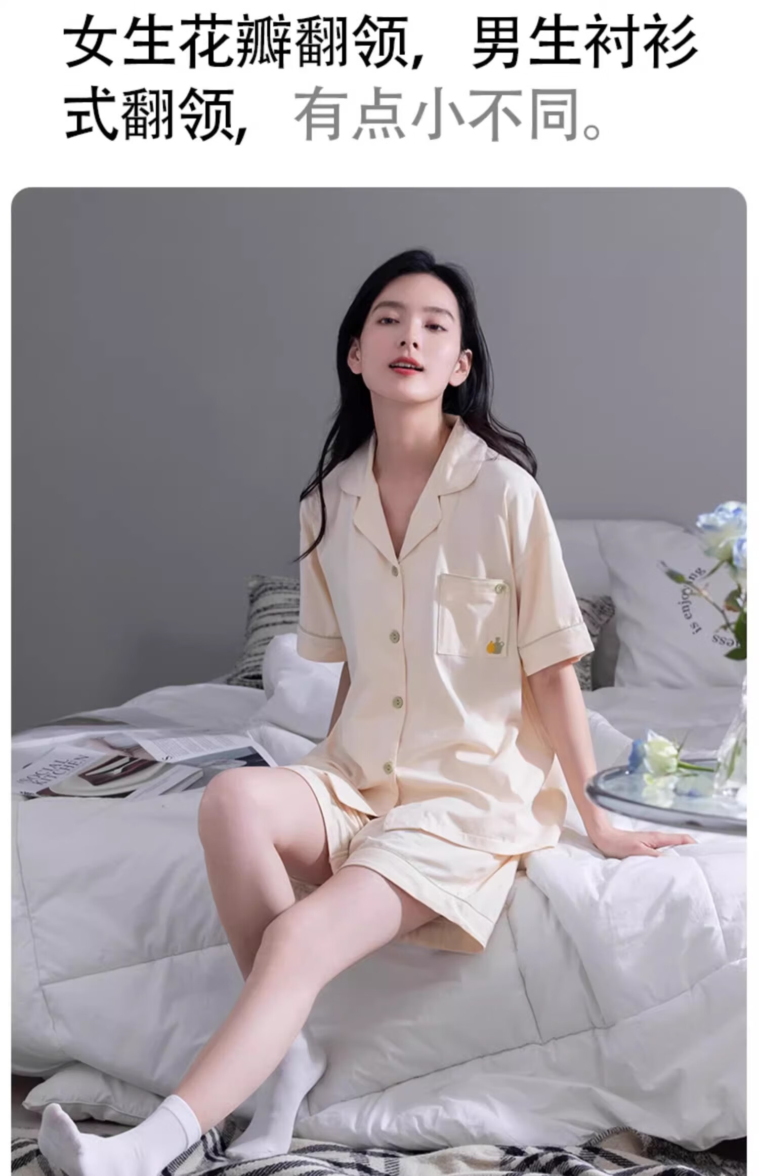 都市丽人睡衣女夏季薄款2025新款翻领纯棉情侣短袖男士家居服套装