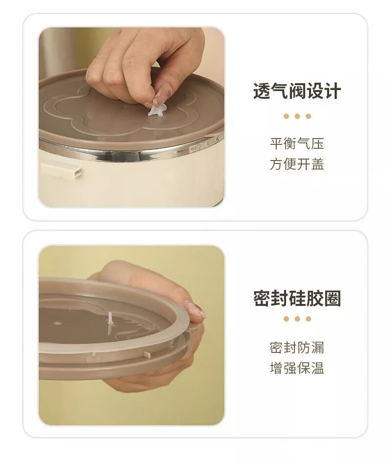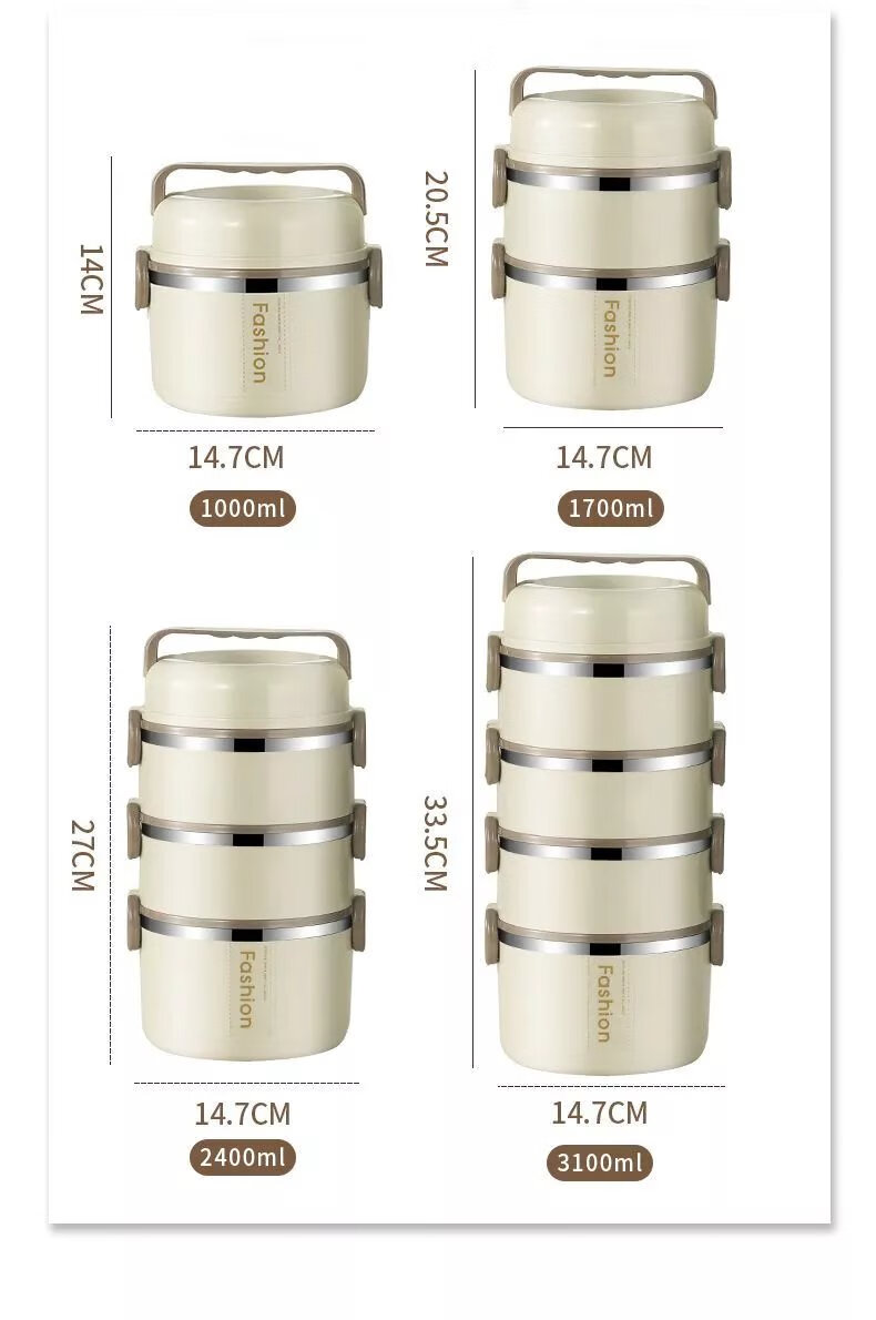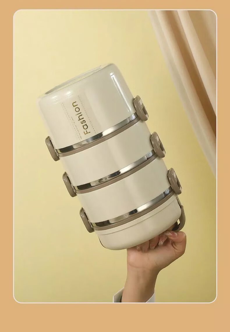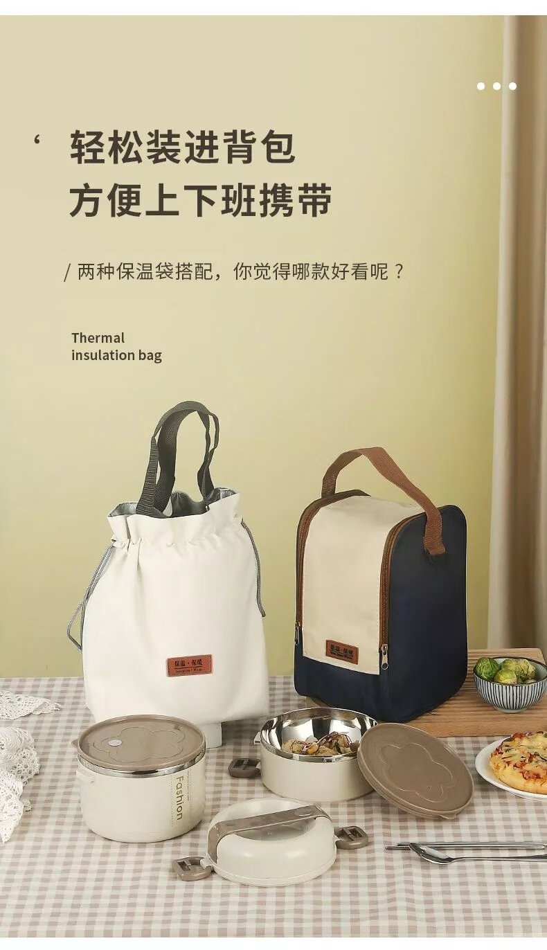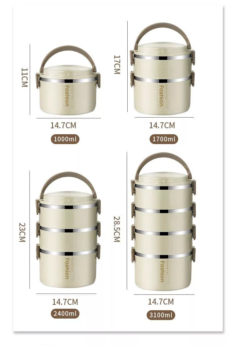【精选】层层密封保温饭盒桶上班族不锈钢带盖餐盒微波炉加热便当 一层+餐具 201不锈钢银杏白