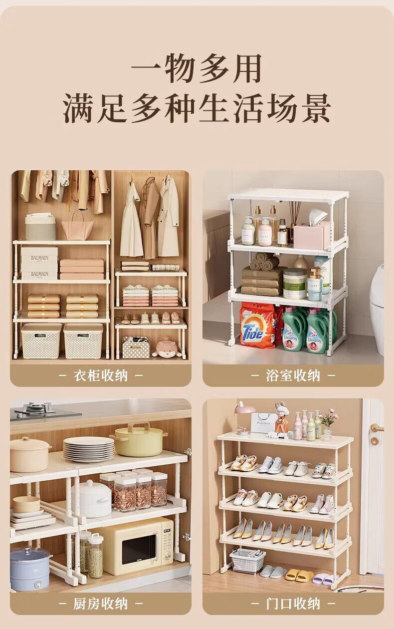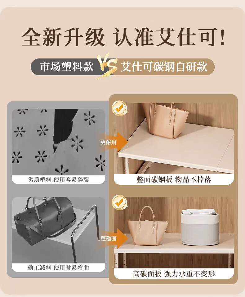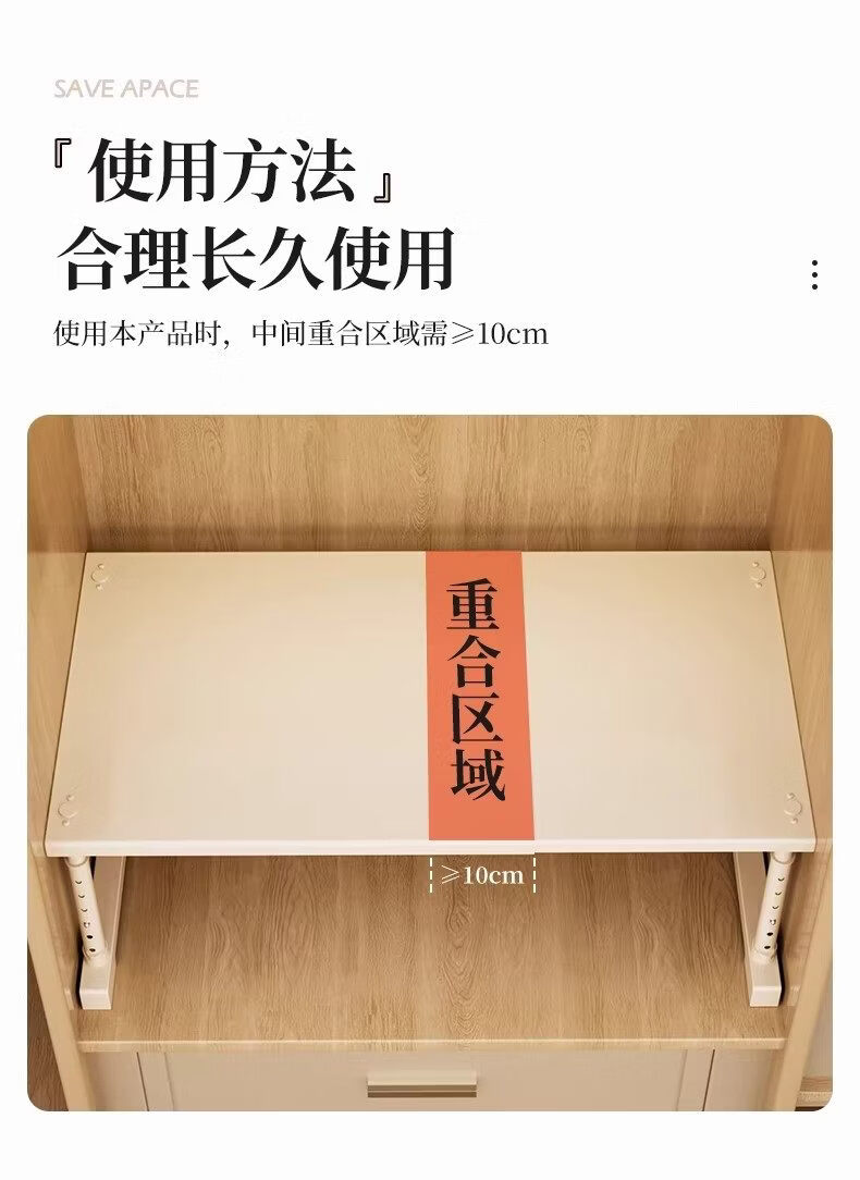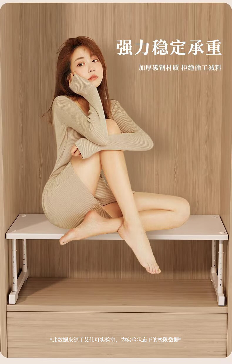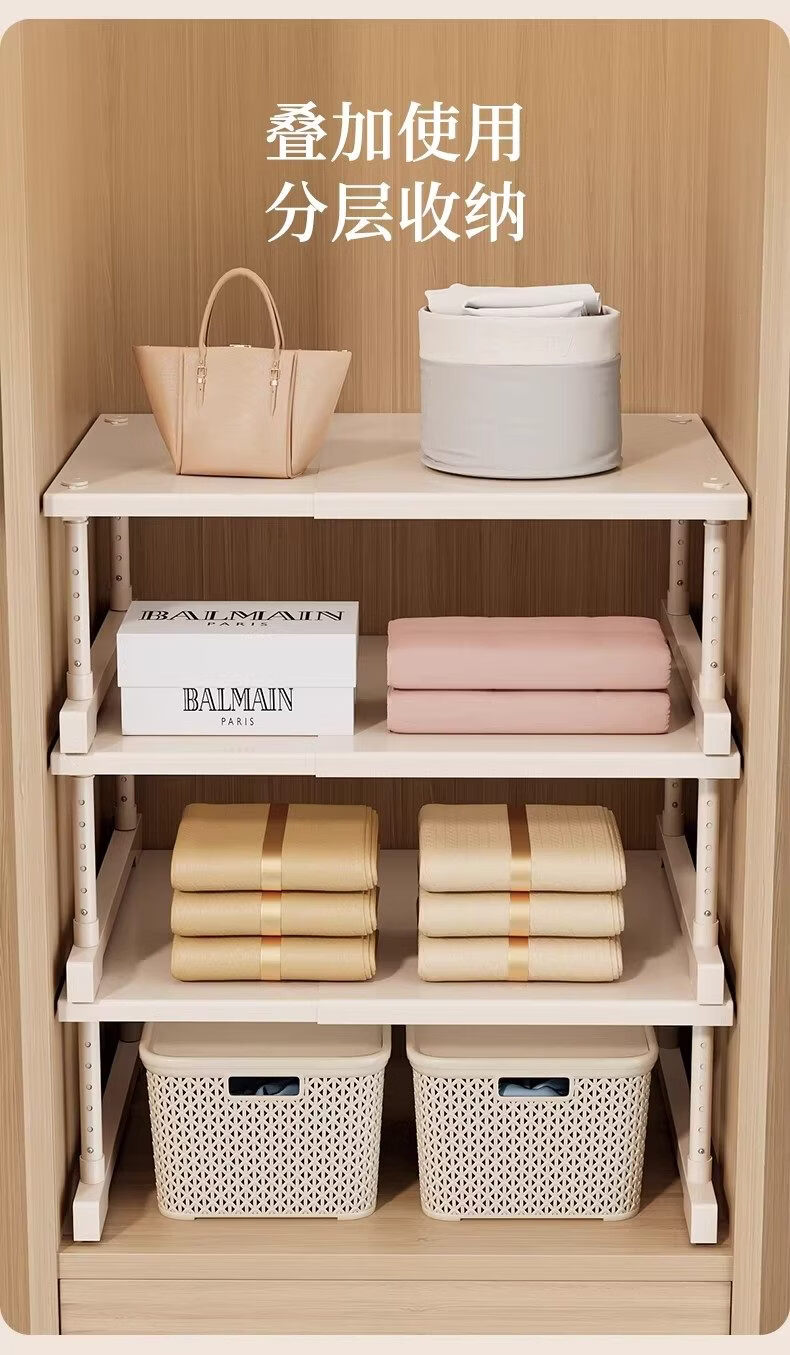 艾仕可(ASCOR)衣柜分层隔板收纳神器柜子橱柜伸缩置物架衣橱碳钢隔断整理架子 奶油白-加高款【长50-85】宽42cm【高35-50】