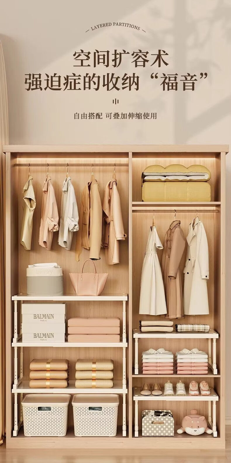 艾仕可(ASCOR)衣柜分层隔板柜子分层架隔板橱柜内可伸缩置物架伸缩整理收纳神器 宽24【长30-40cm伸缩隔板】全碳钢