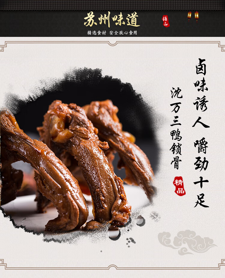 沈万三卤味鸭锁骨苏州昆山特产休闲零食鸭货鸭架子网红熟食卤味下酒菜 鸭脖鸭胗鸭锁骨卤味零食组合290g