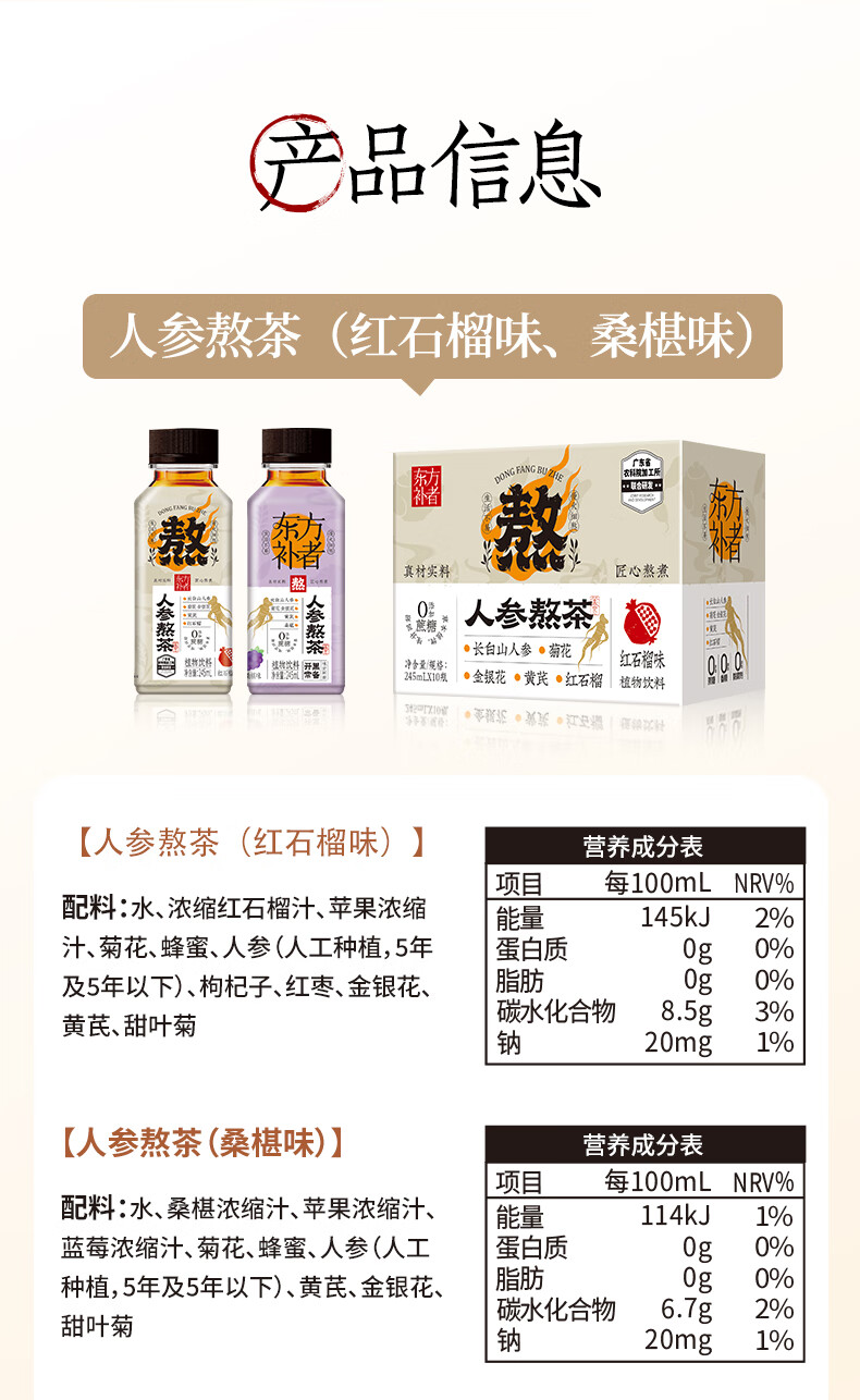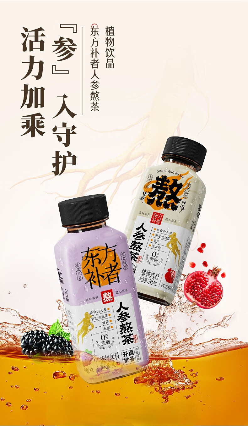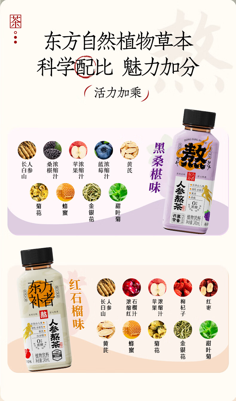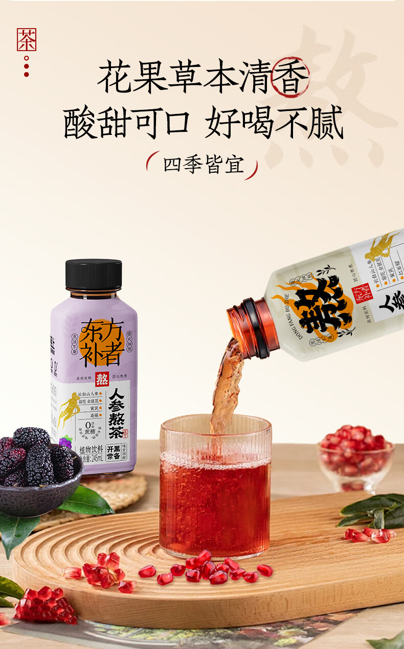 椰泰人参熬茶植物饮料熬夜网红 益生元西梅饮60ml*10瓶
