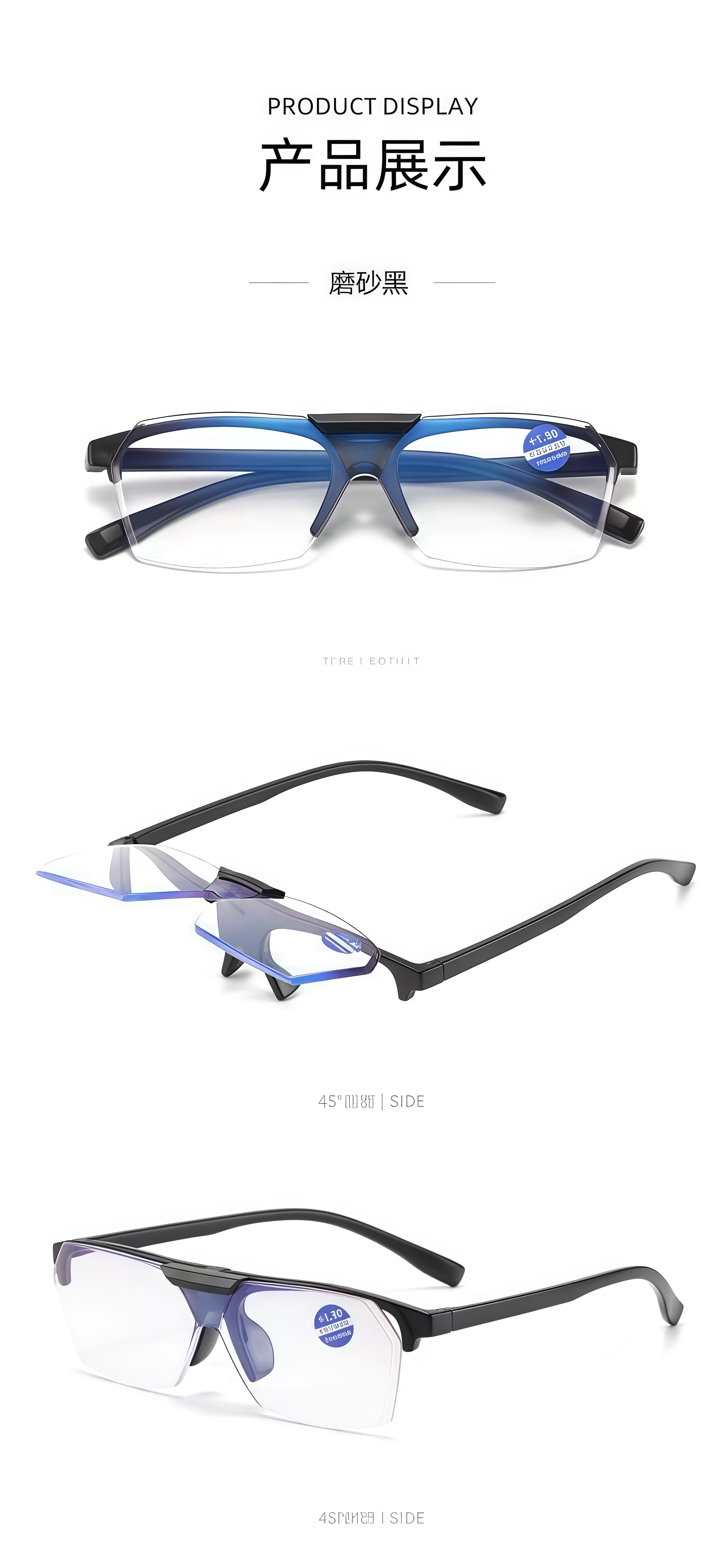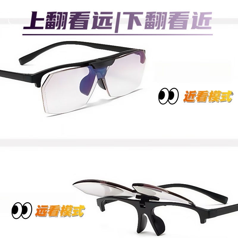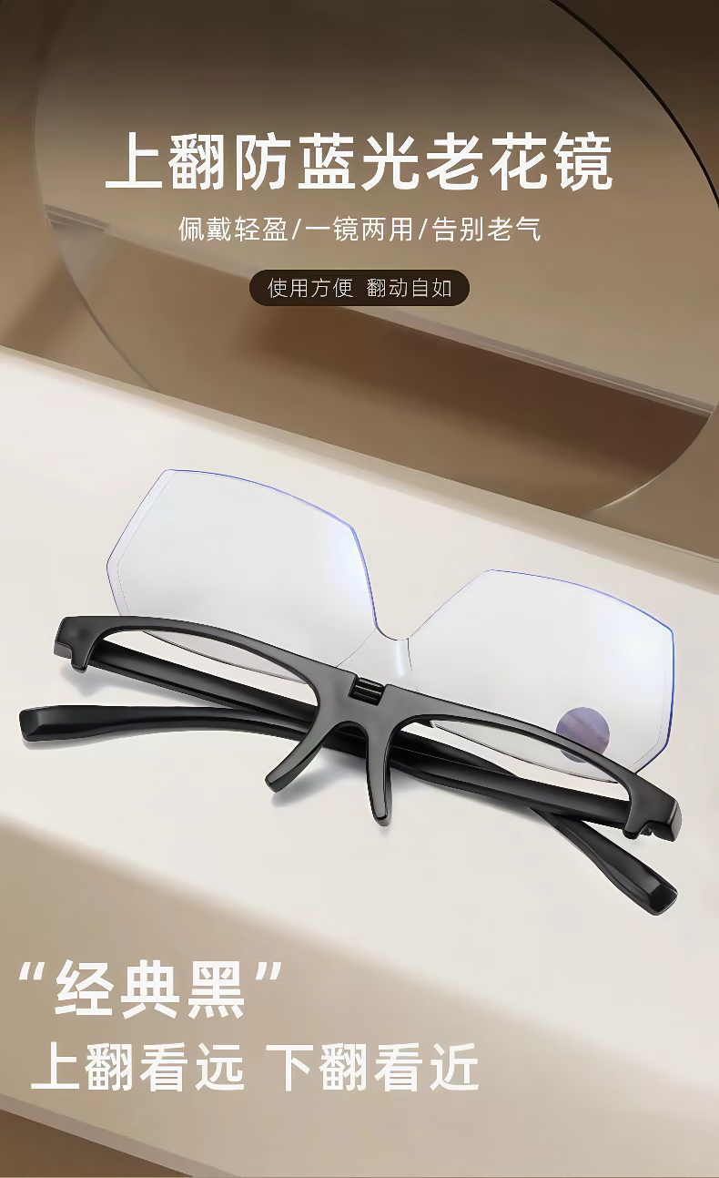 亿米诺 EMINO可上翻老花镜看远看近开车走路可戴时尚个性翻盖老花眼镜男防蓝光 翻盖老花镜 【高清防蓝光】+100度(建议50岁以下)