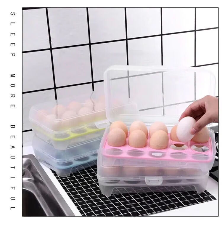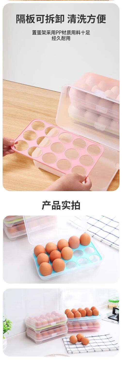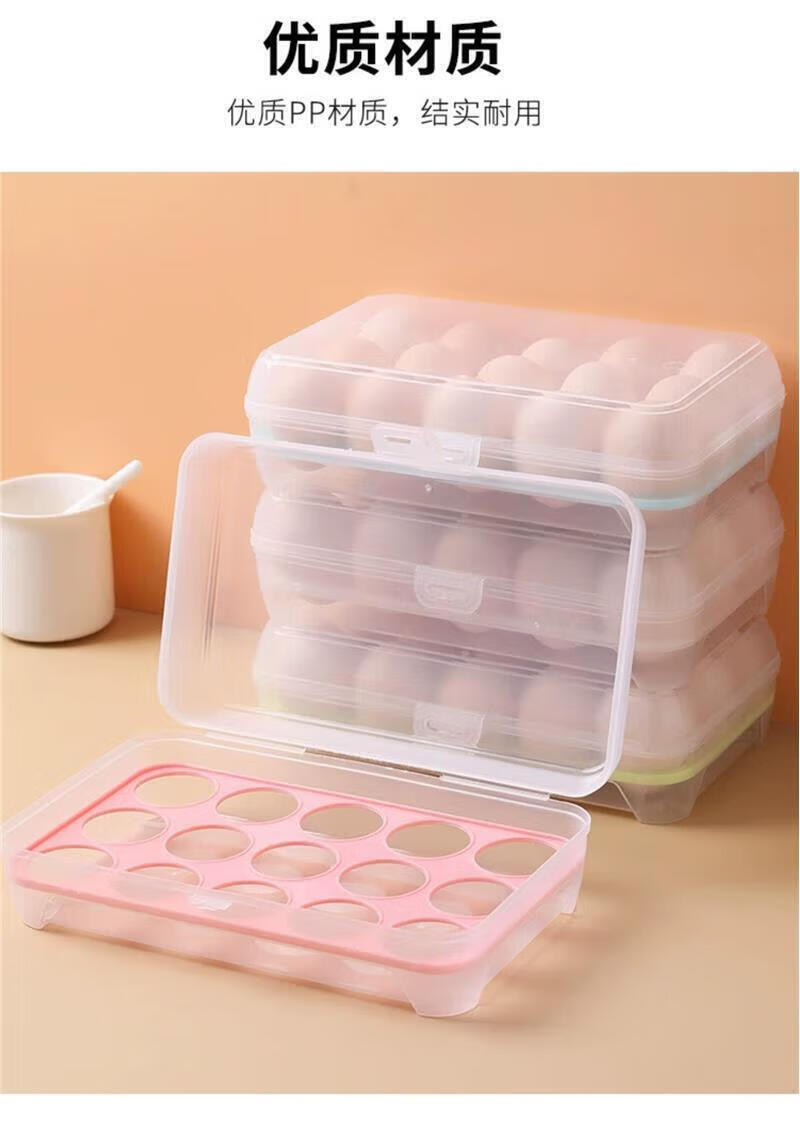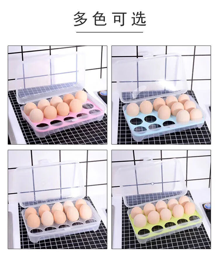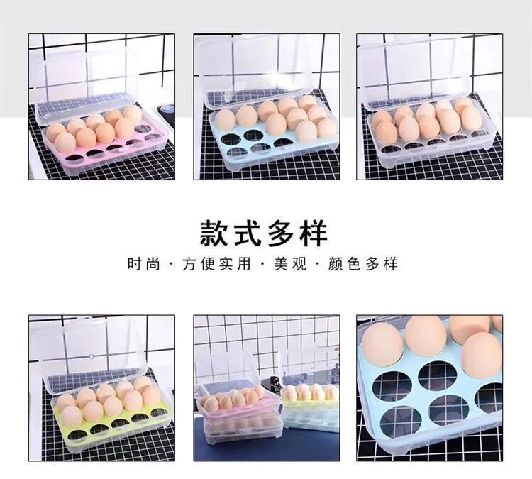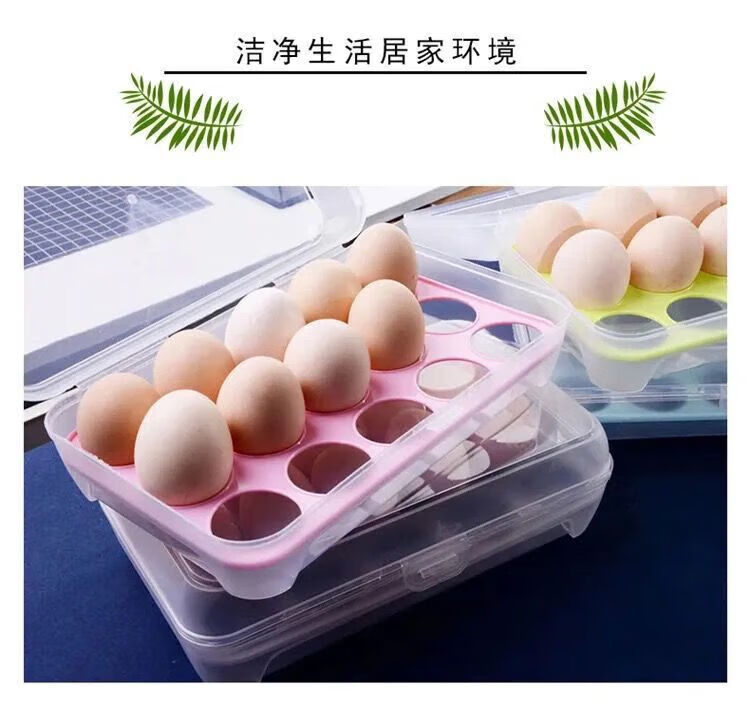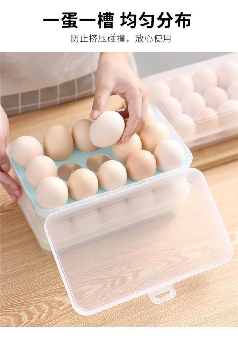 【现发】厨房15格放鸡蛋的收纳盒冰箱用鸡蛋保鲜盒多层鸡蛋盒塑料 蓝色 【*3盒】