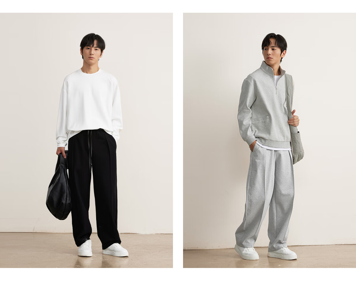 MARKLESS休闲裤男锥形阔腿通勤百搭长裤抽绳系带裤子男款5826 灰色 M
