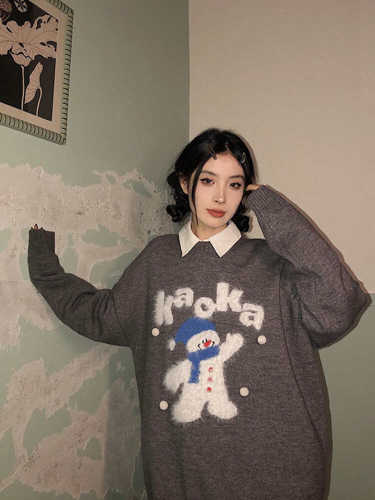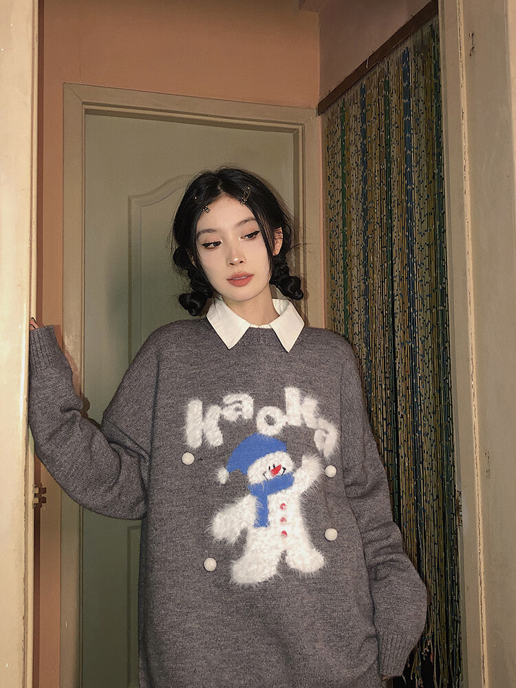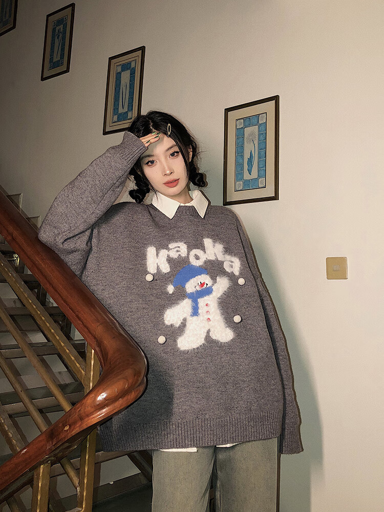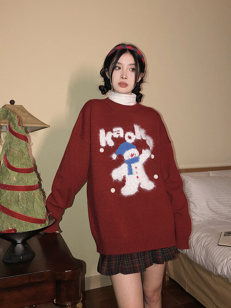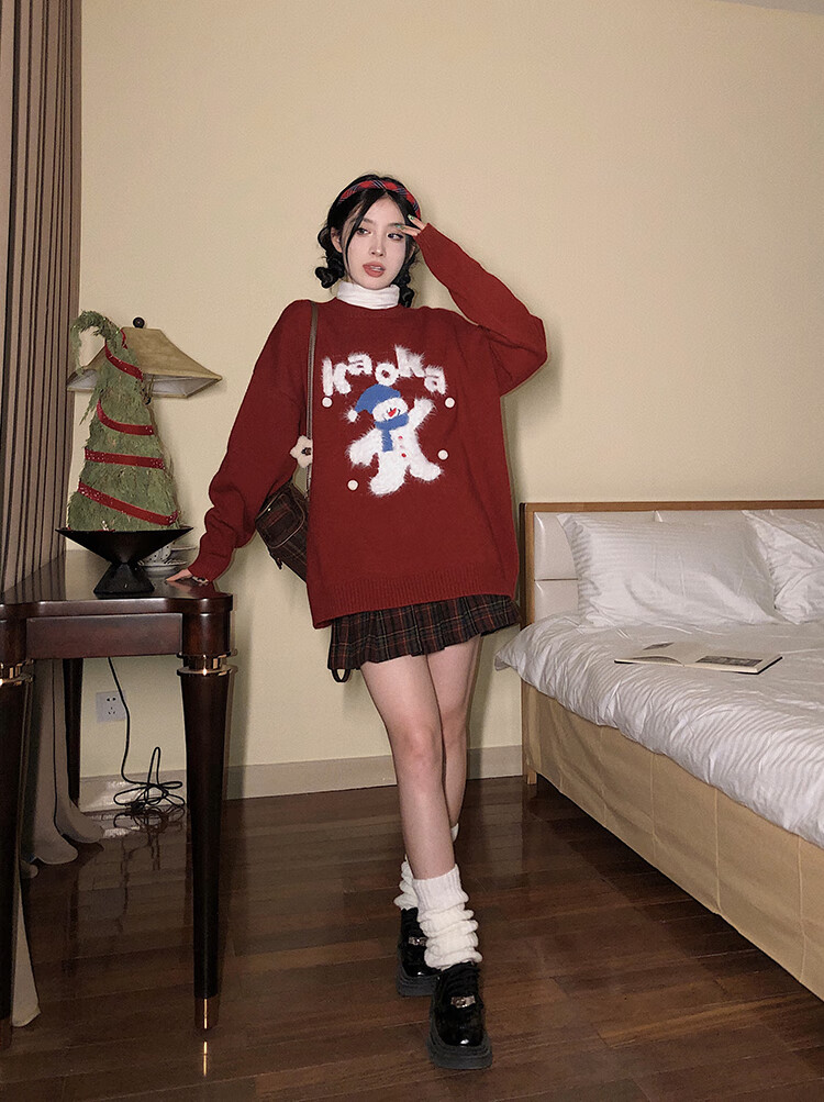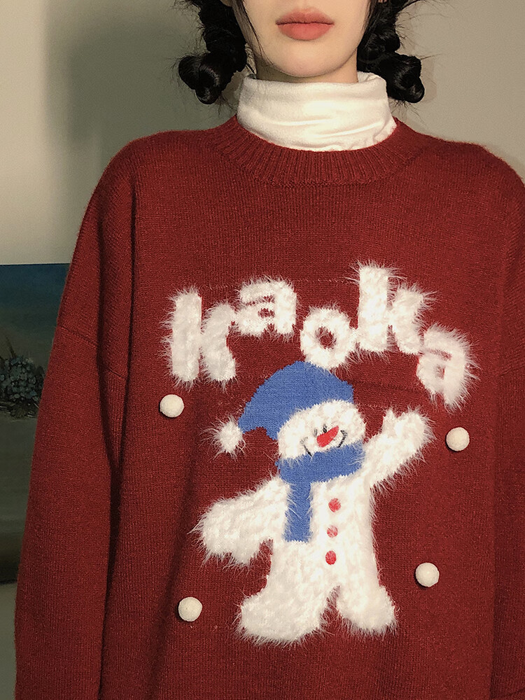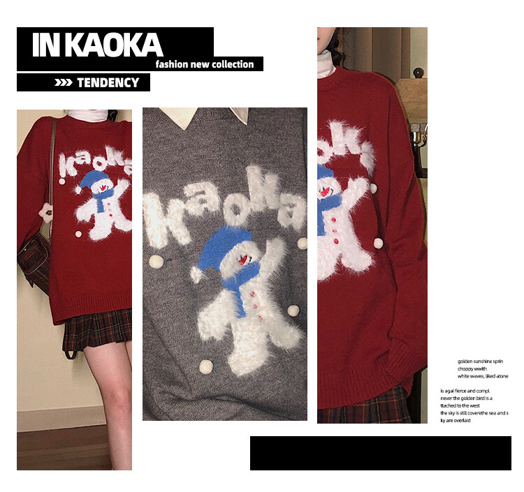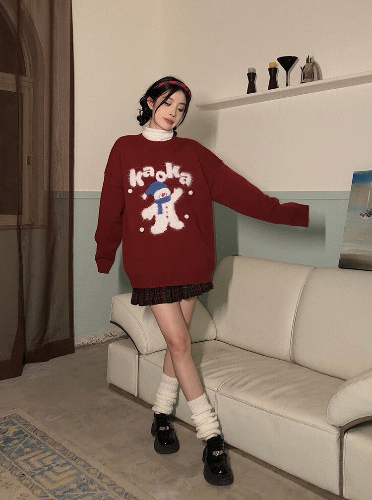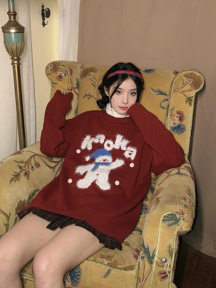 相伊恋人毛衣女25秋冬新款加绒加厚针织衫美式圣诞慵懒风上衣宽松内搭外套 红色【软糯升级亲肤】 均码 【建议80-140斤】