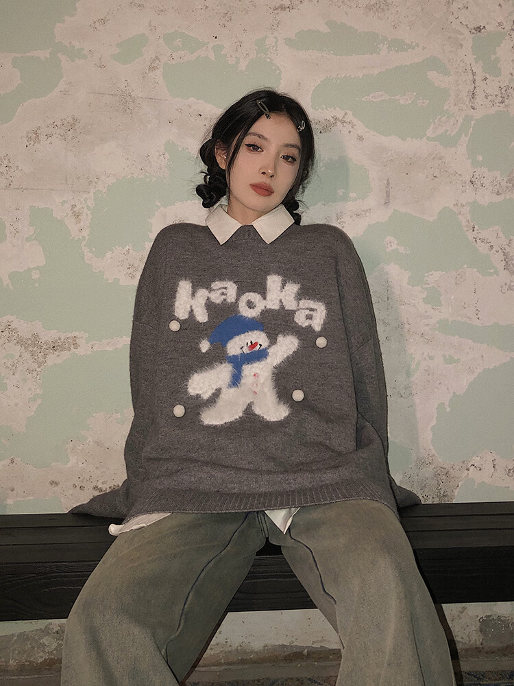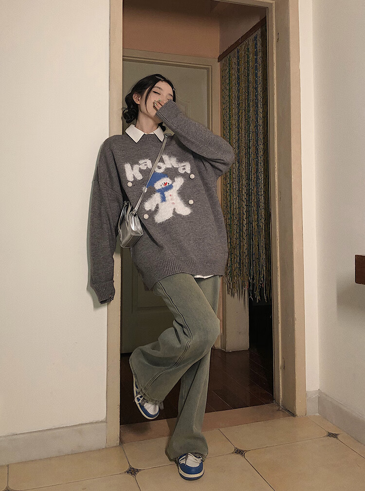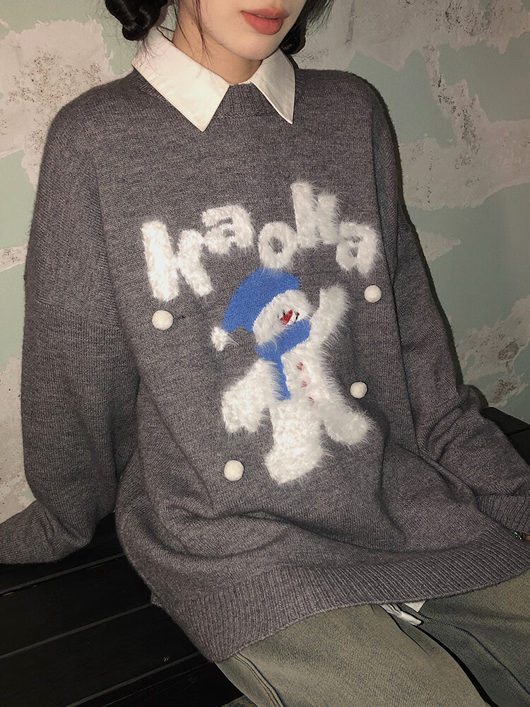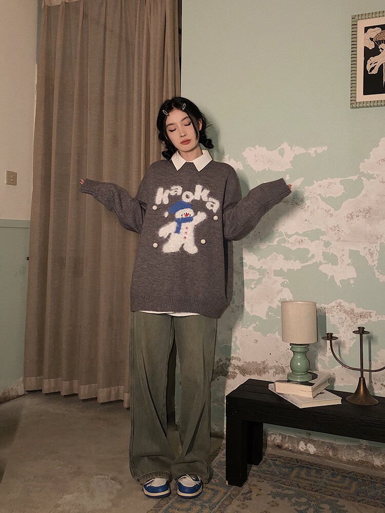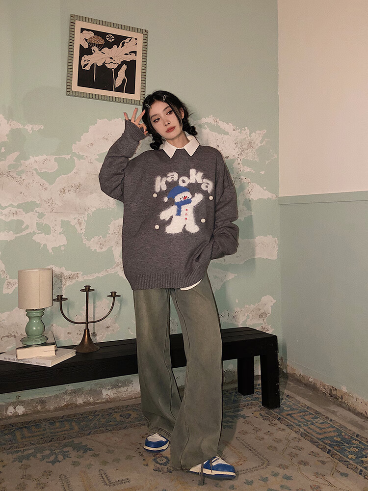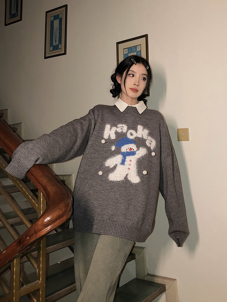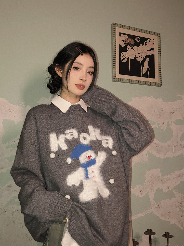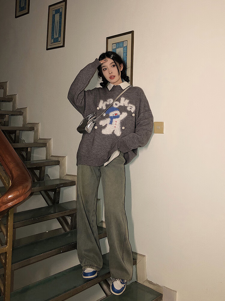 相伊恋人毛衣女25秋冬新款加绒加厚针织衫美式圣诞慵懒风上衣宽松内搭外套 红色【软糯升级亲肤】 均码 【建议80-140斤】
