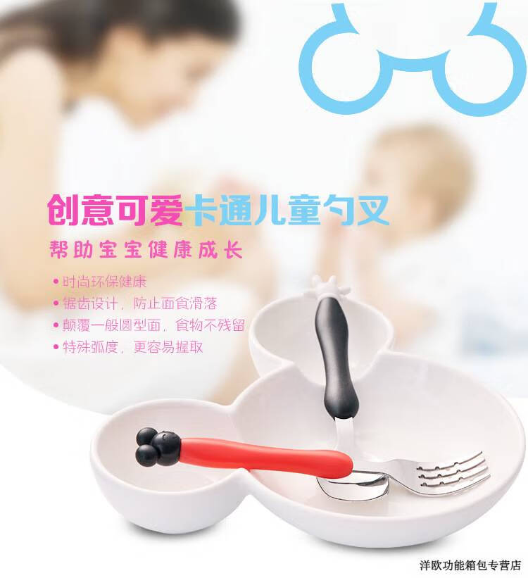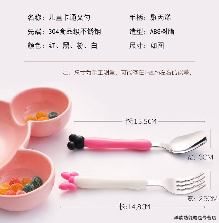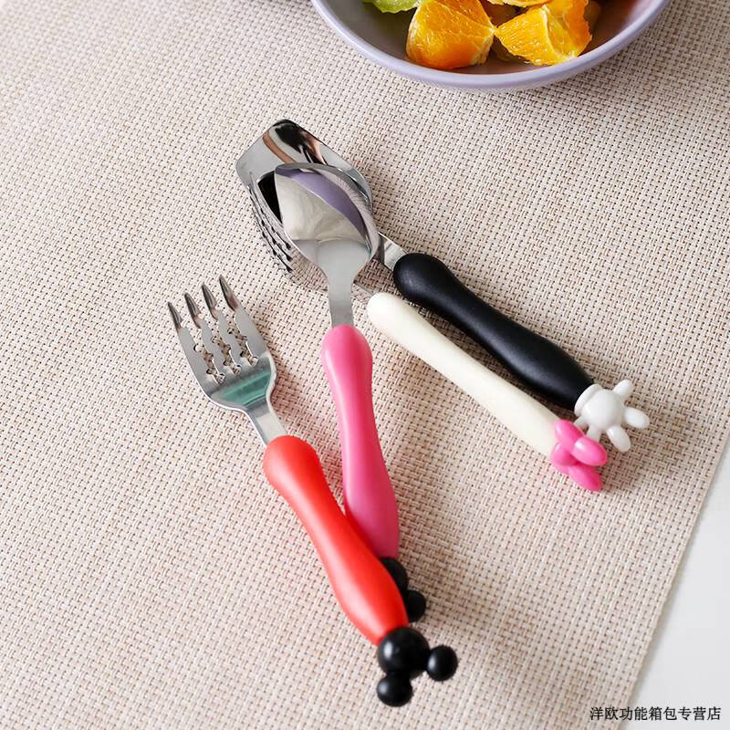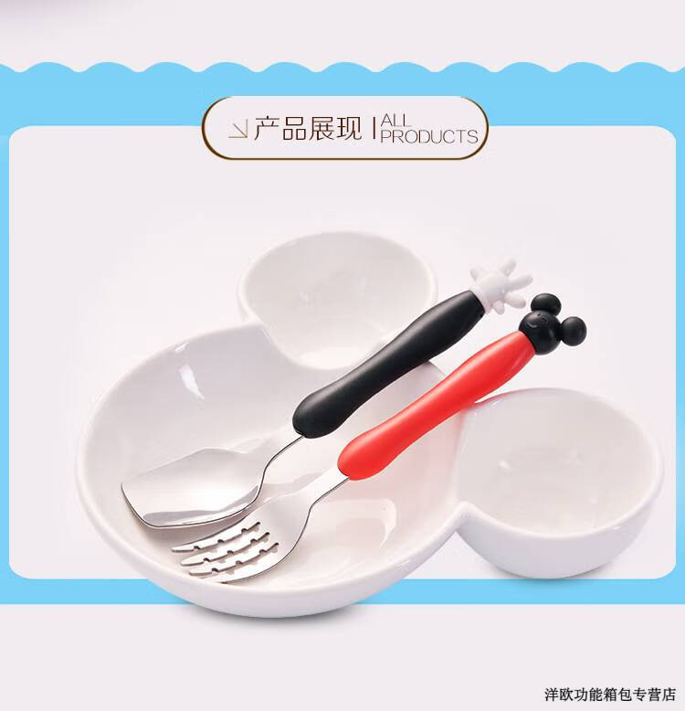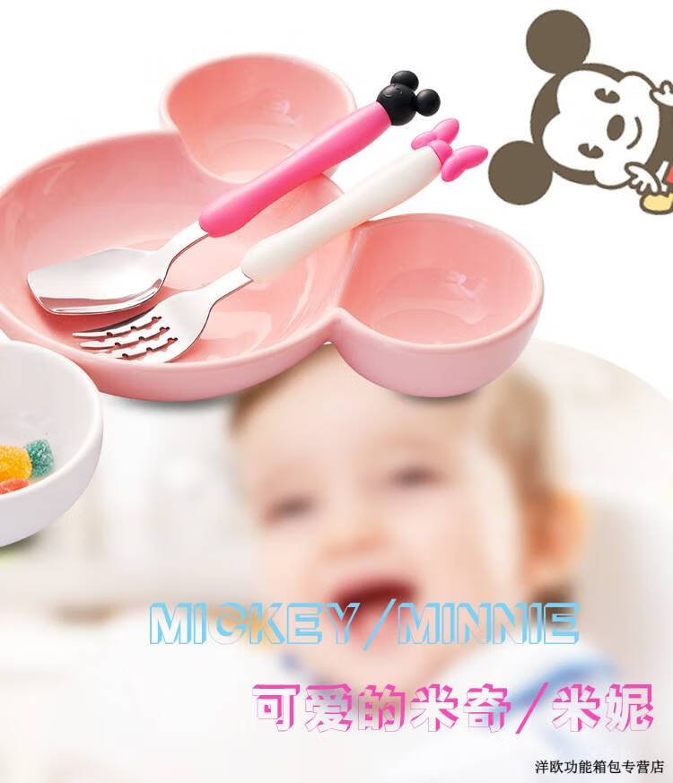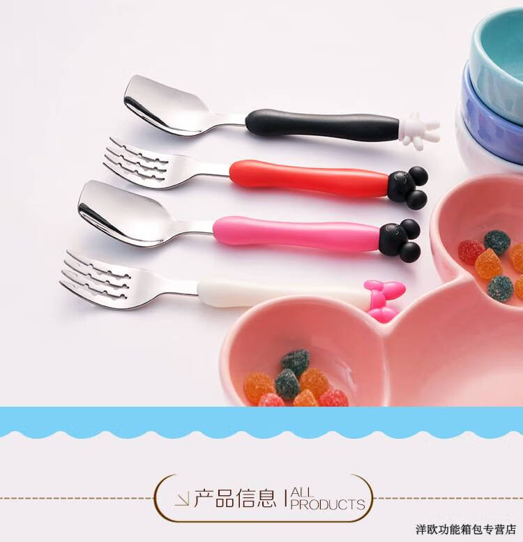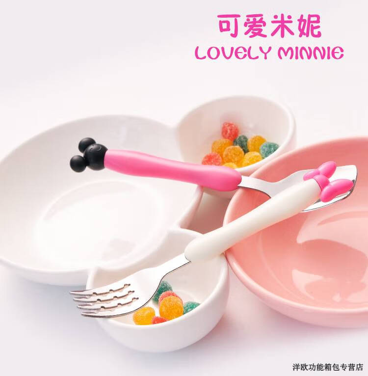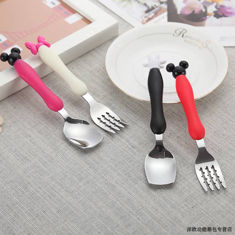 迪士尼(Disney)不锈钢米奇米妮叉勺 儿童餐具婴儿创意卡携宝宝吃饭叉勺套装 2个米奇勺子 304食品级不锈钢