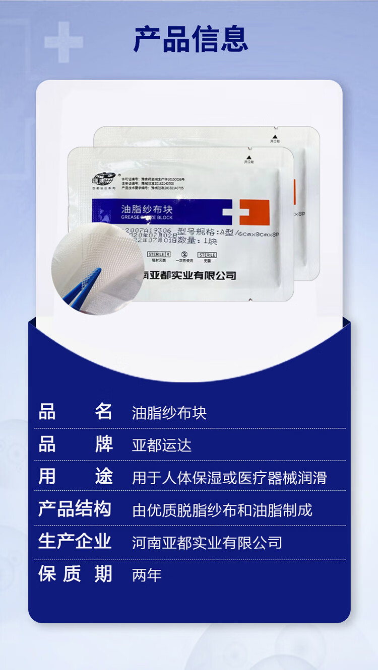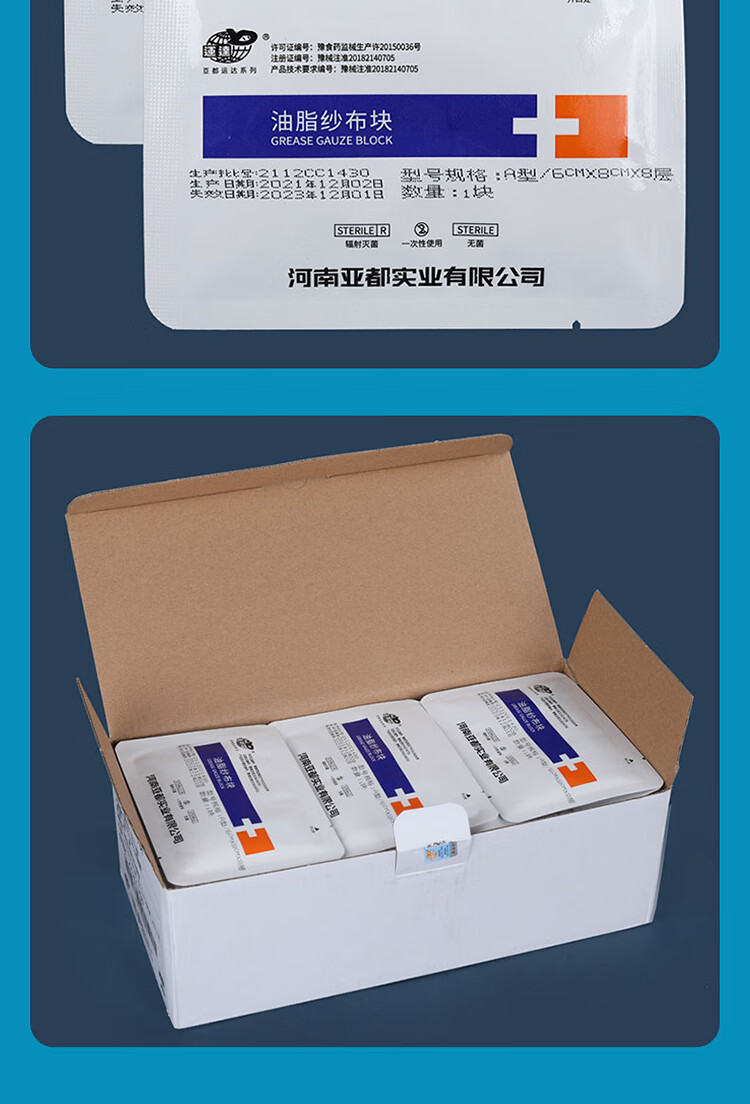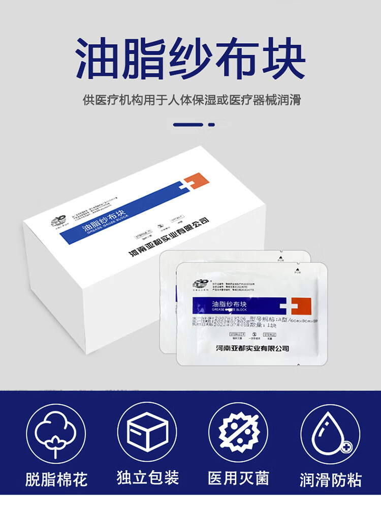 一次性医用油脂纱布块烧烫伤口包扎敷料无菌润滑防粘 【1盒】8cm*10cm*8层(60片独立装)