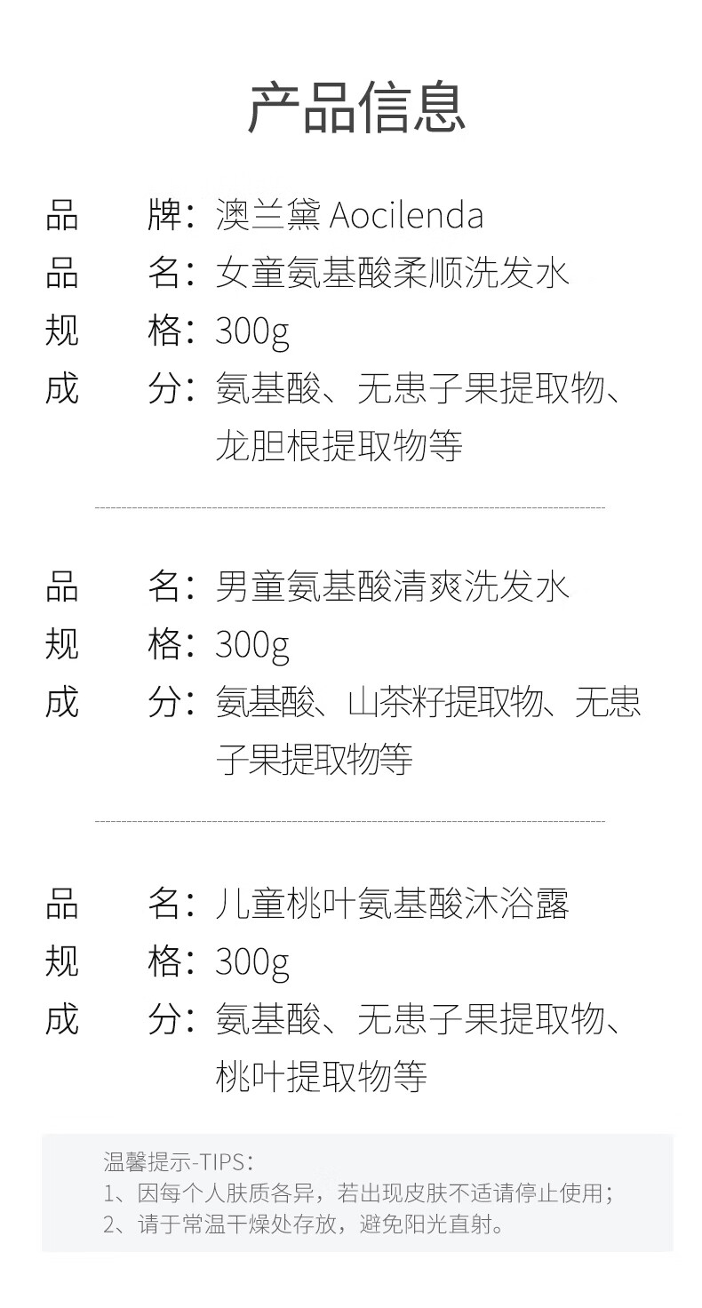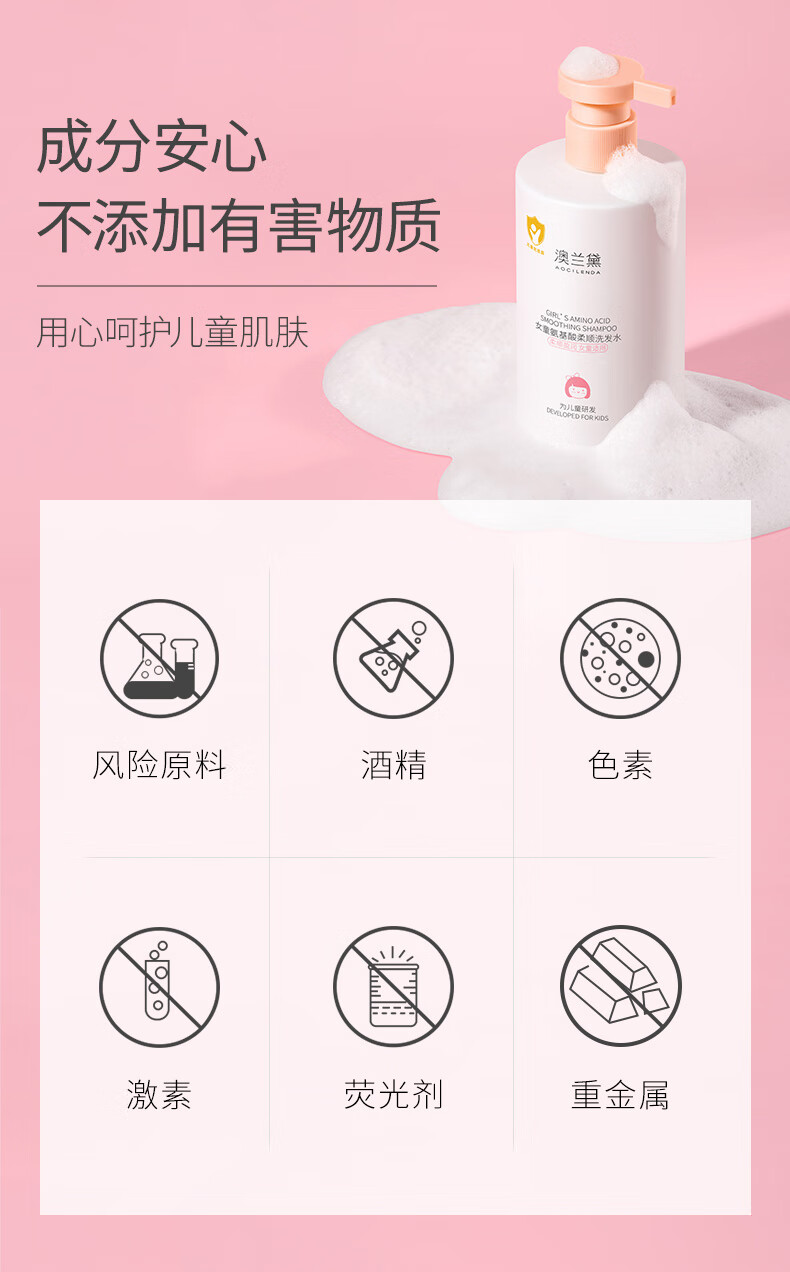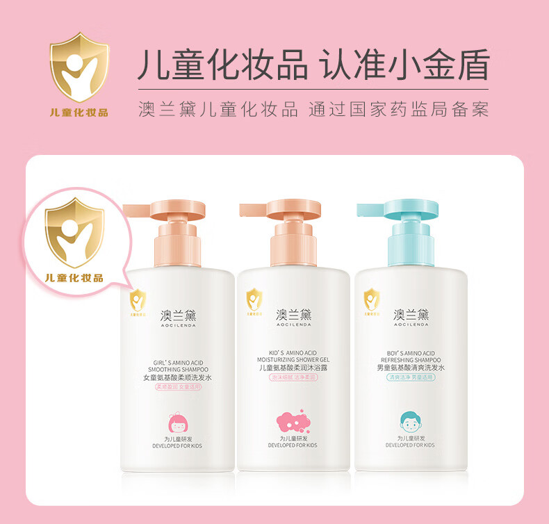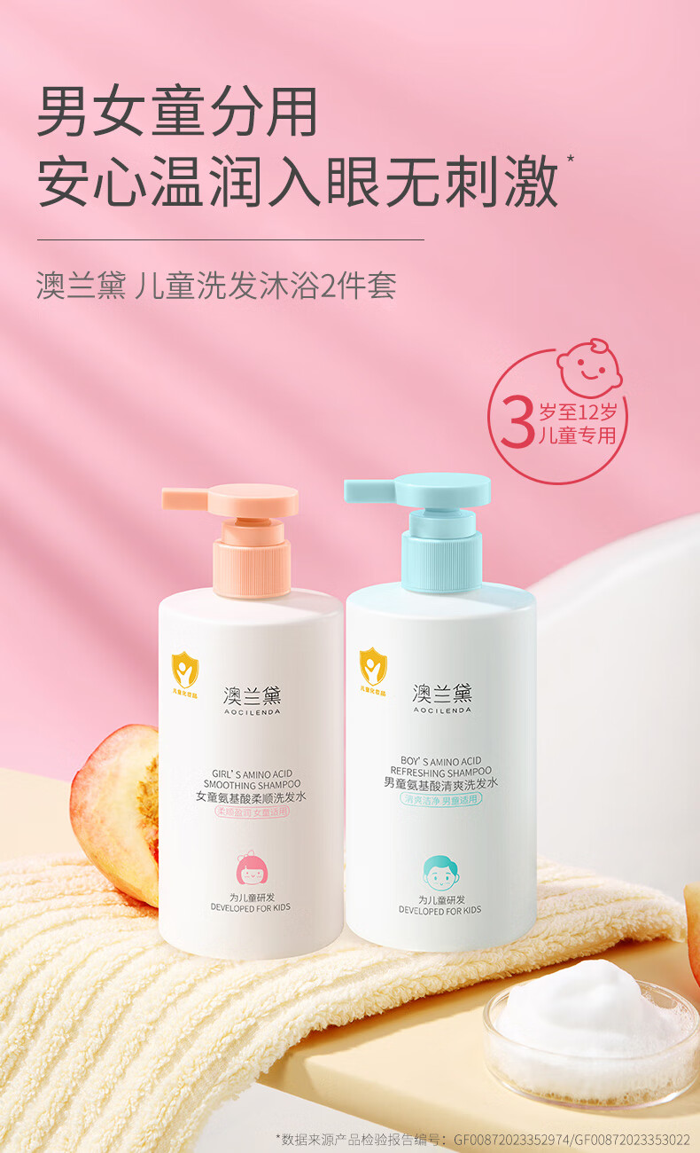 澳兰黛(AOCILENDA)儿童洗发水沐浴露宝宝洗发沐浴洗护套装3-12岁小学生男童女童秋冬 女童洗发水300g+儿童沐浴露300g