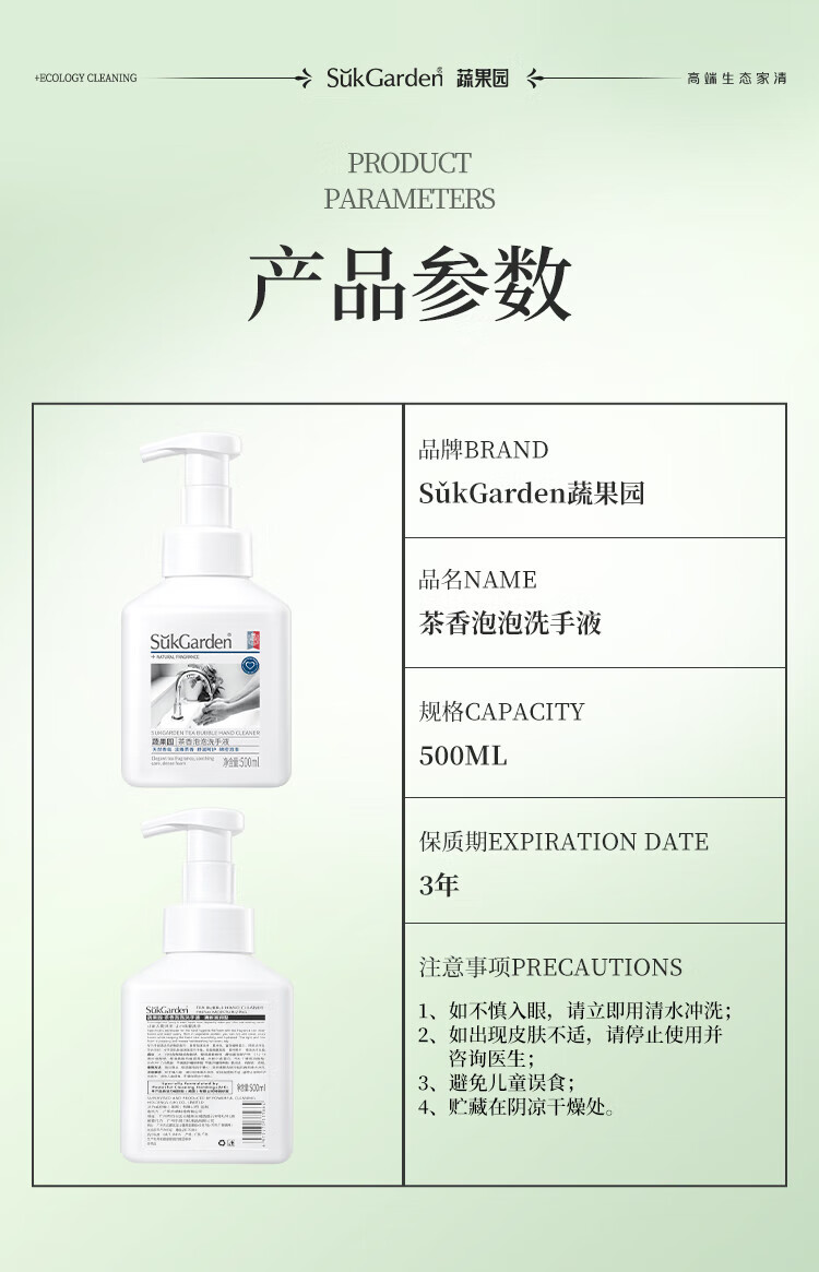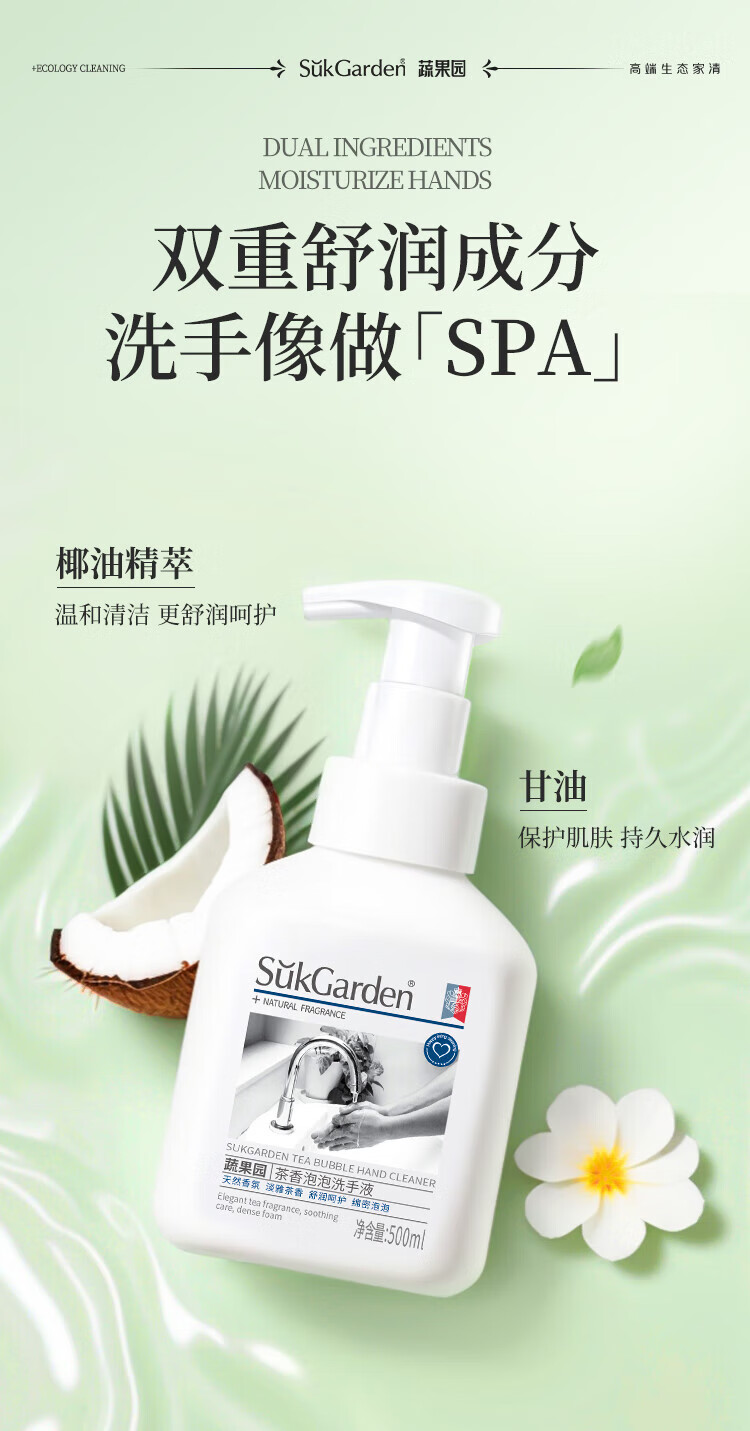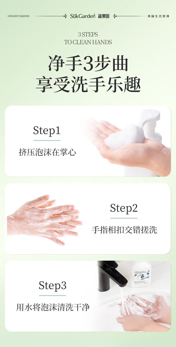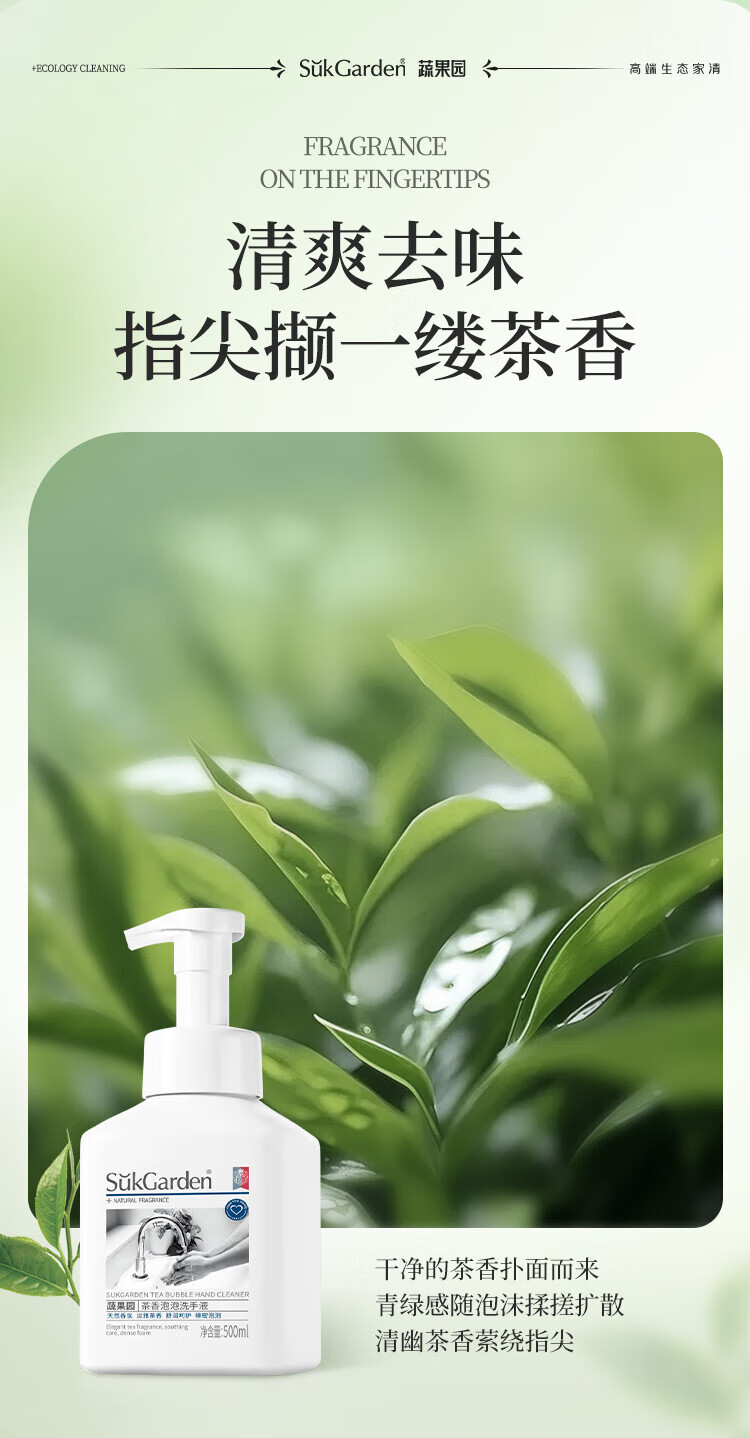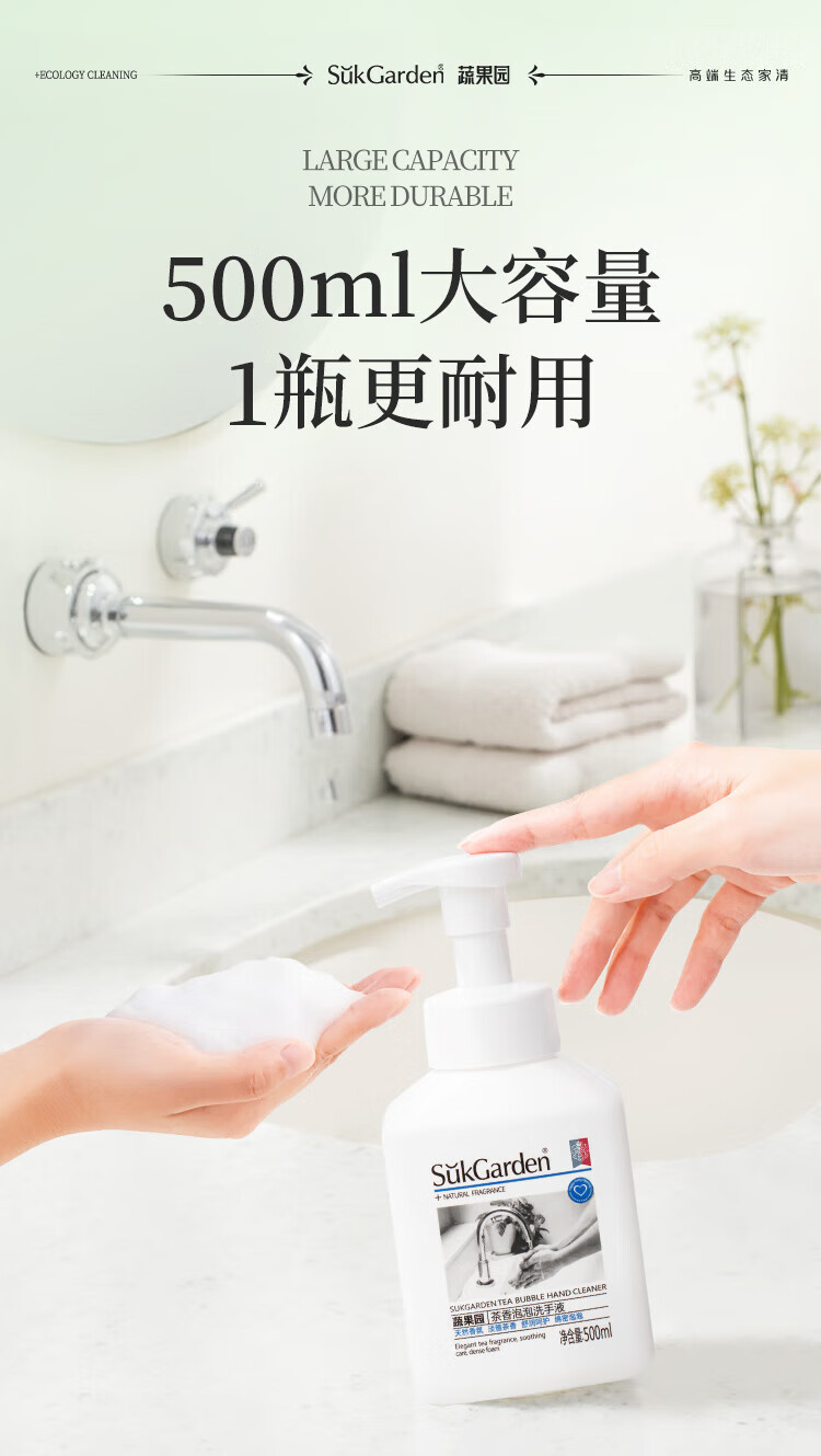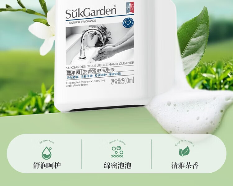 蔬果园泡沫洗手液 泡泡洗手液清洁护手保湿儿童成人通用家庭装洗手液 【茶香祛味】茶香泡泡500ml*3