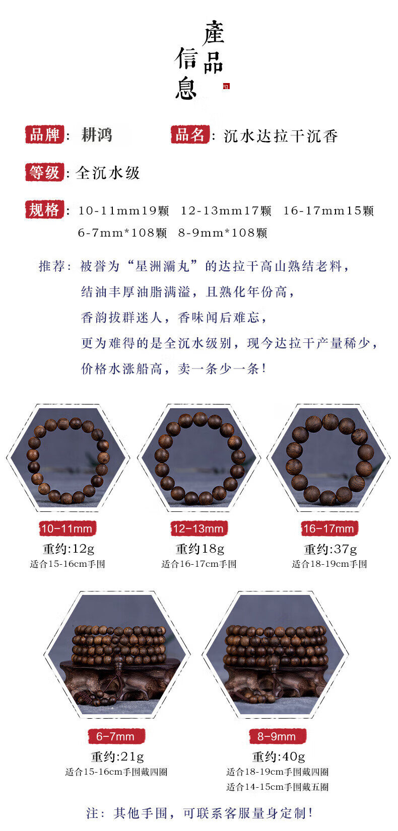 耕鸿达拉干沉香108颗珍贵沉水级奇楠高油脂熟结手串老料佛珠女士手链 达拉干沉水级别;8-9mm 沉香