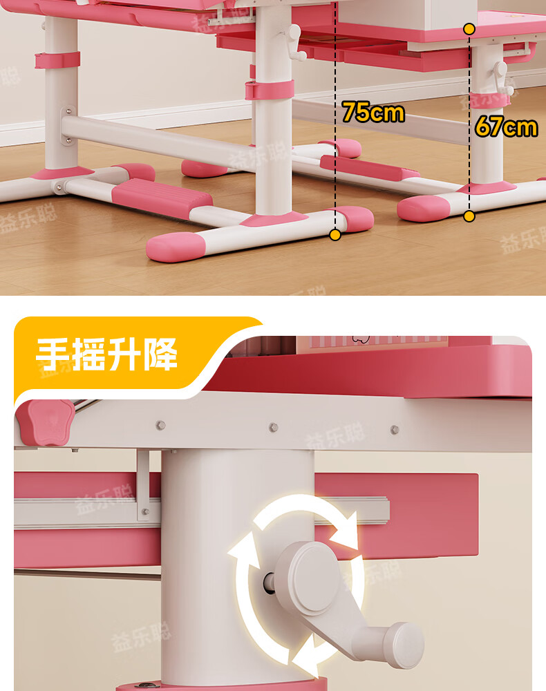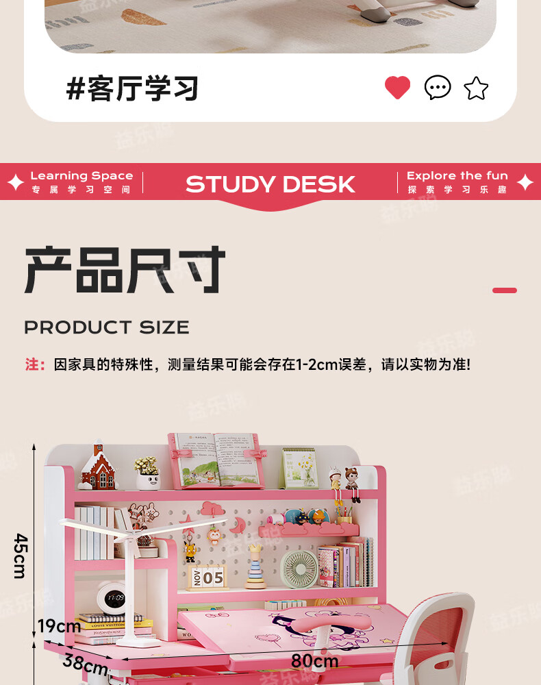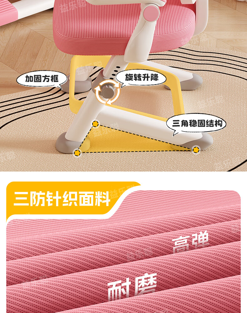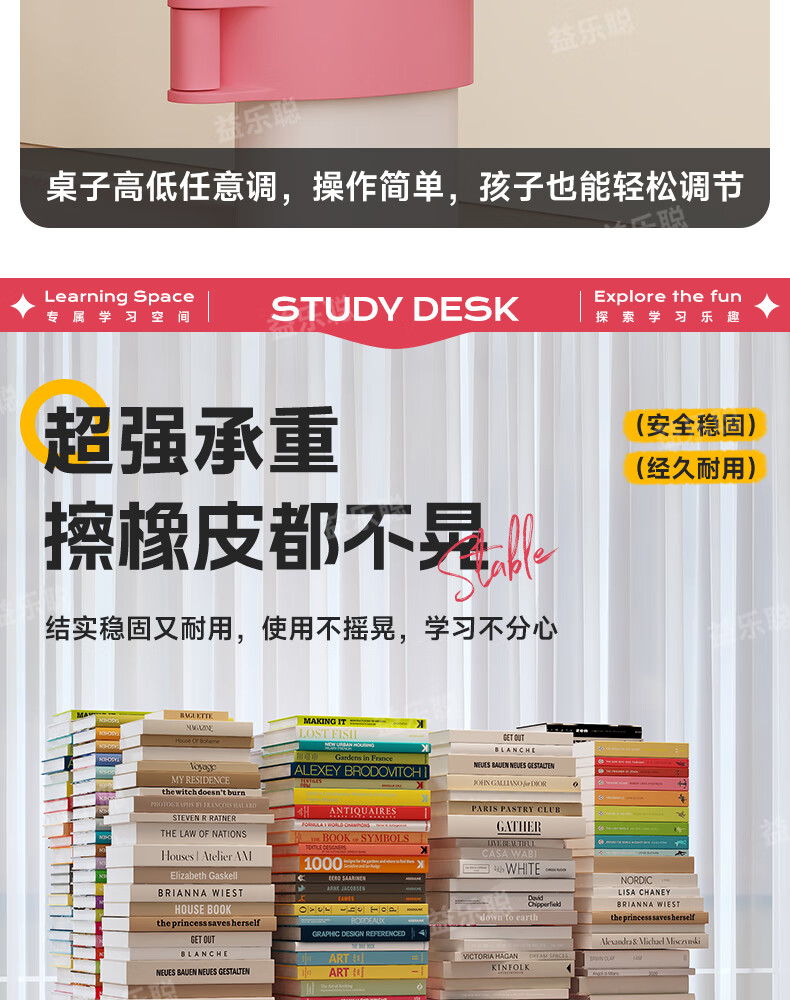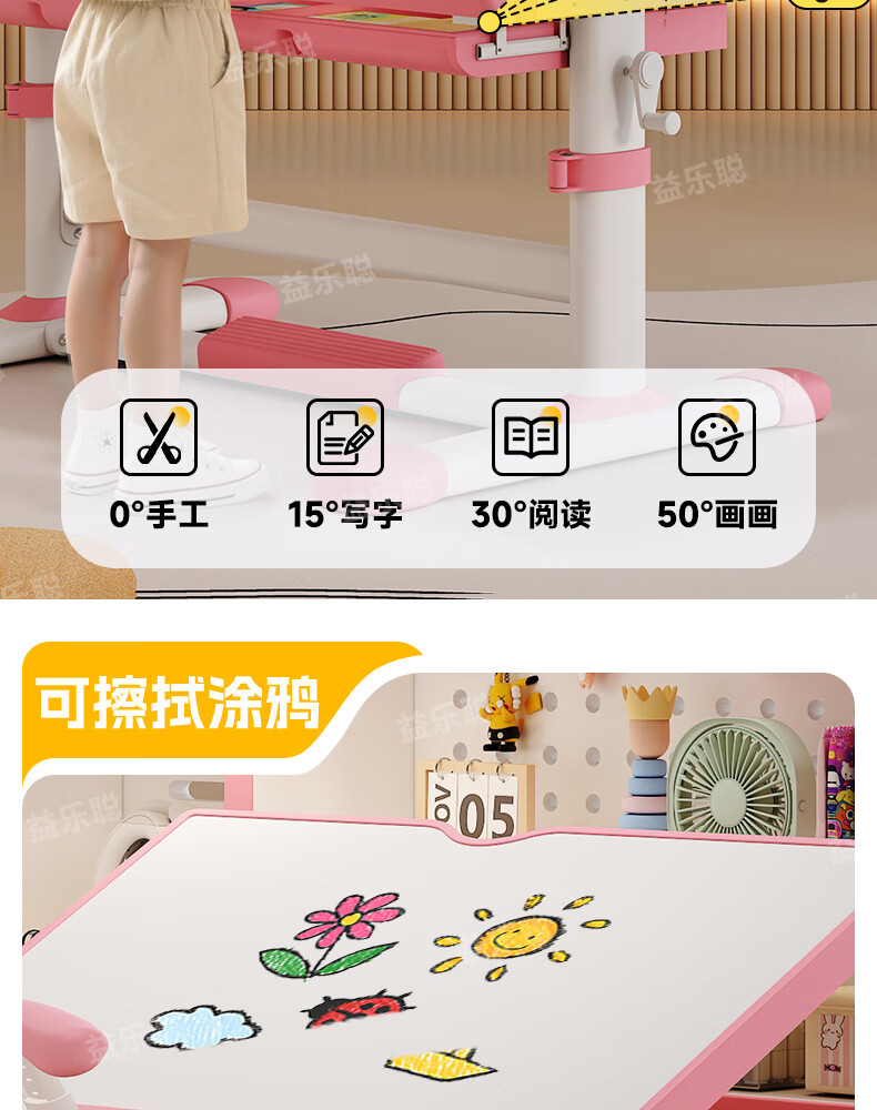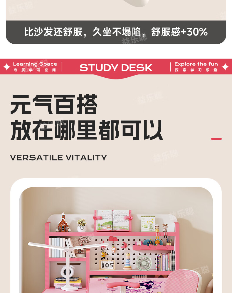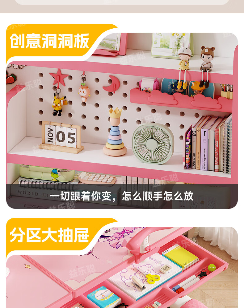 森优匠儿童学习桌书桌椅套装6-18岁专用可升降带书架一体小学生写字课桌 匠心粉兔兔多区收纳书架+分区调节桌板+三角永定椅