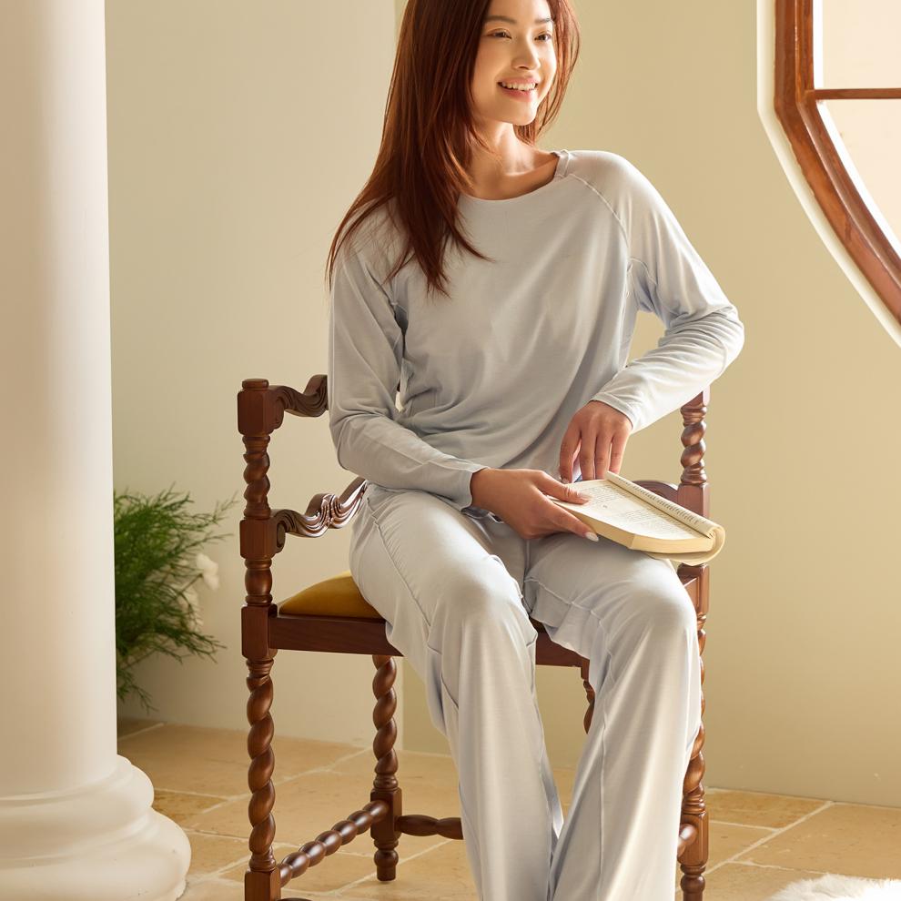 亚朵星球云栖深睡睡衣春夏季女长袖长裤带胸垫家居服睡衣睡裤套装莫代尔空调服 轻羽粉 L -高160-175cm重135-155斤内