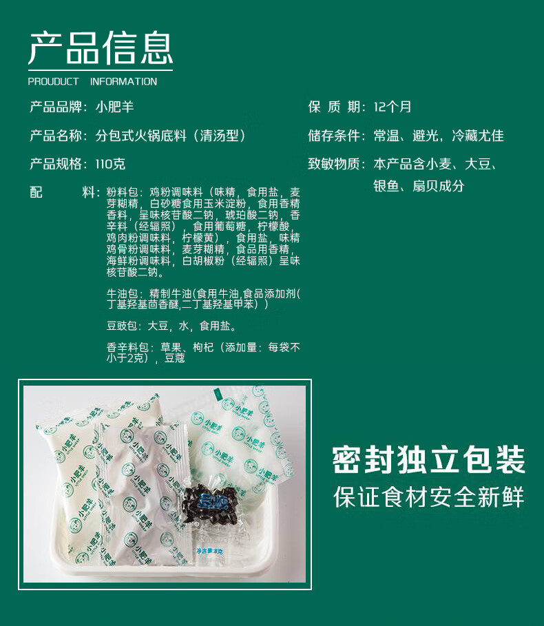 小肥羊招牌清汤粉末状火锅底料110g分包式不辣内蒙特产调味料老包装家庭 招牌清汤110g火锅底料3袋