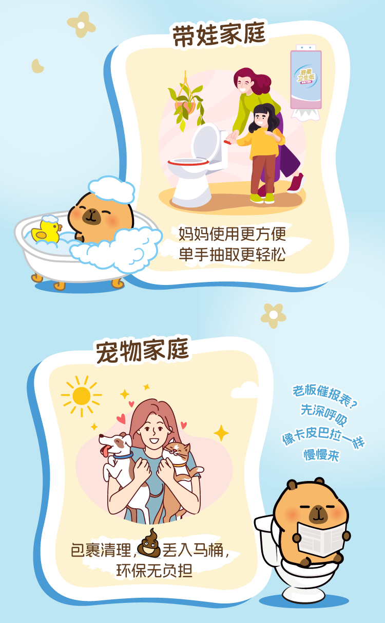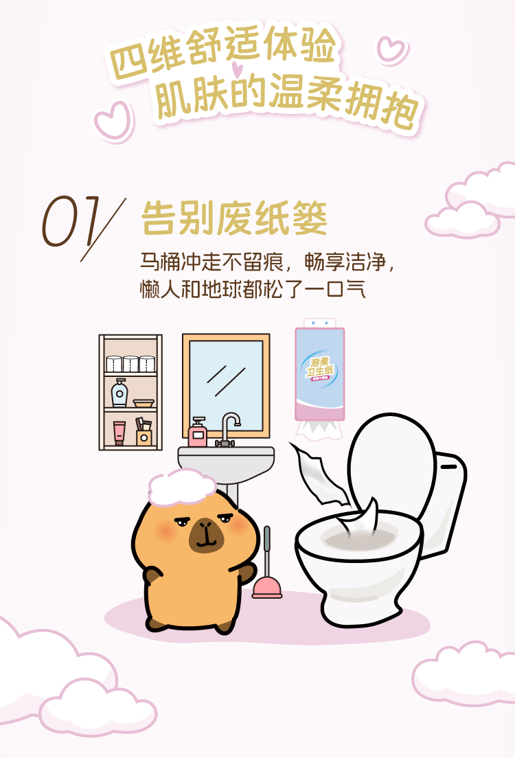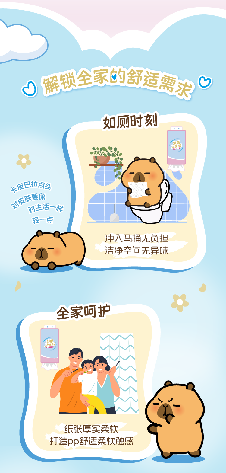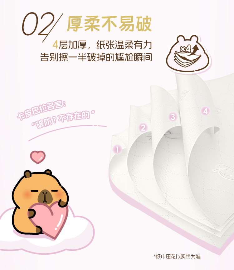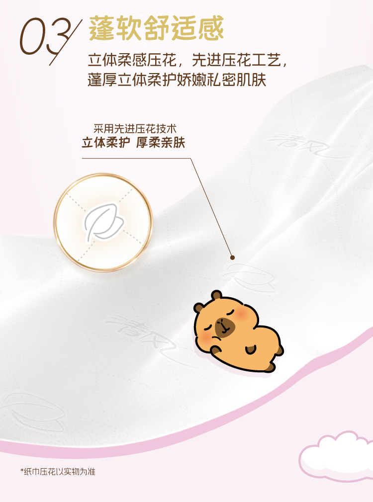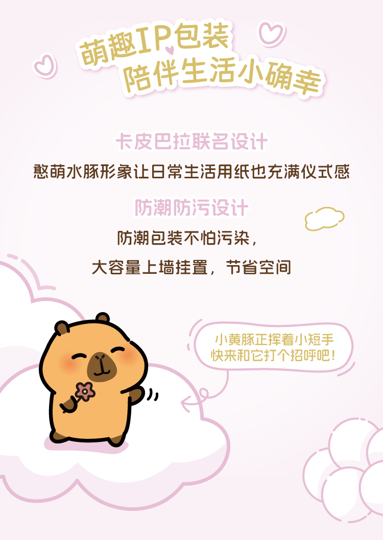 清风卡皮巴拉溶柔系列 悬挂式卫生纸 4层200抽*6包整箱家用厚实抽纸