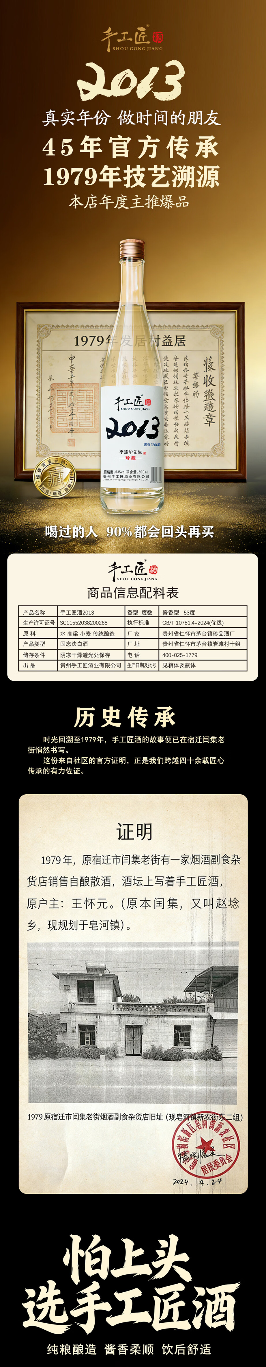 手工匠2013酱酒 白酒 53度500mL 酒 老酱酒 酱香经典 白酒酱香型 茅台镇 53度 50mL 1瓶 手工匠酒2013品鉴
