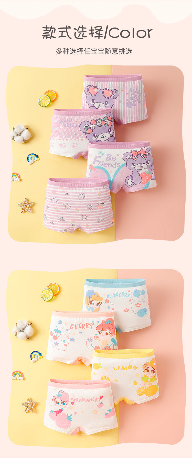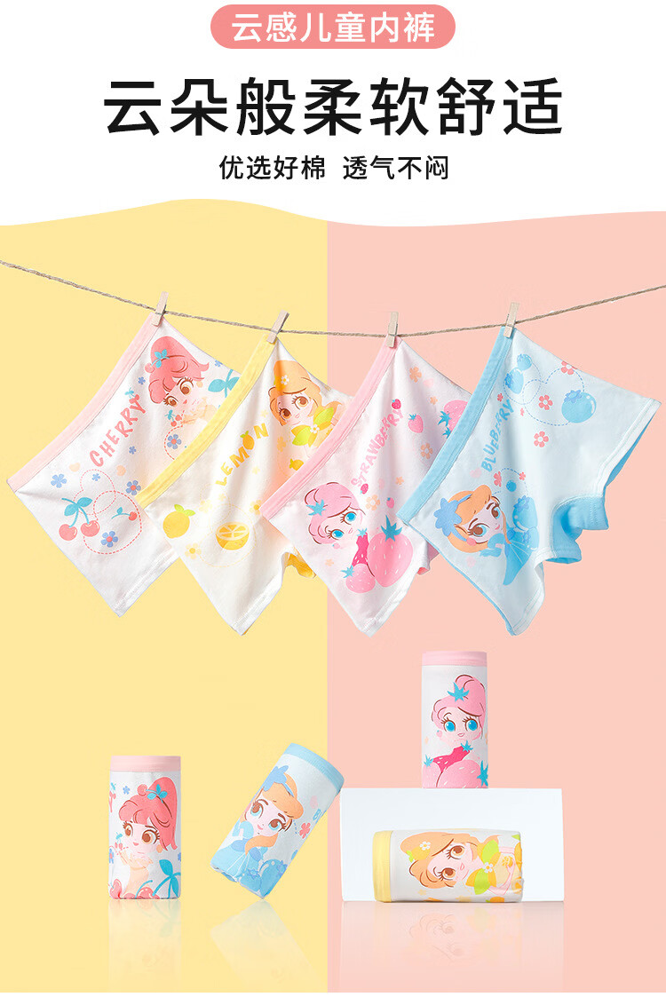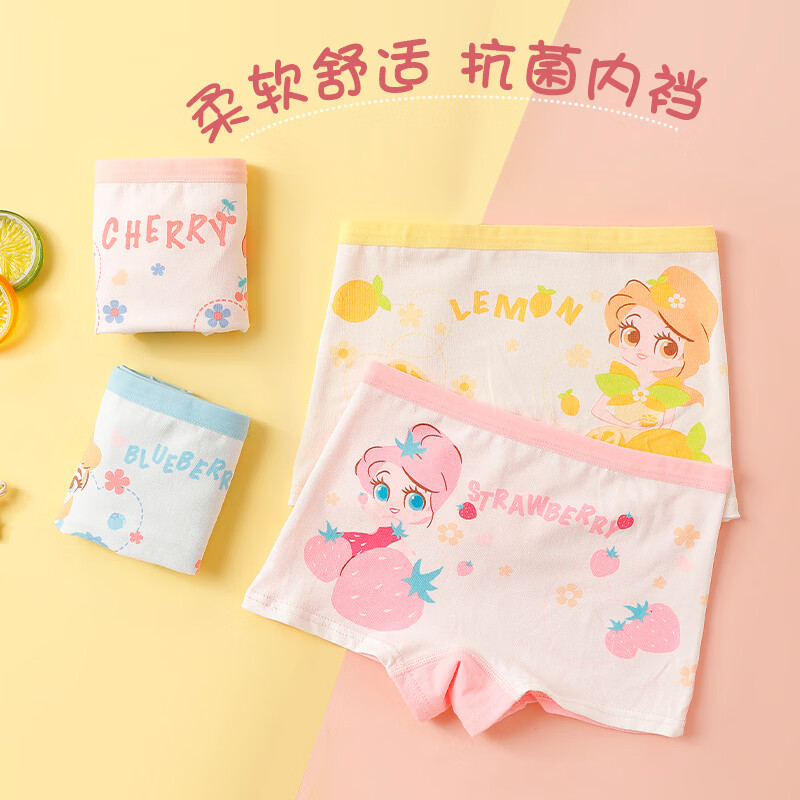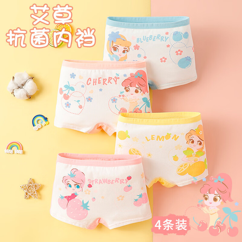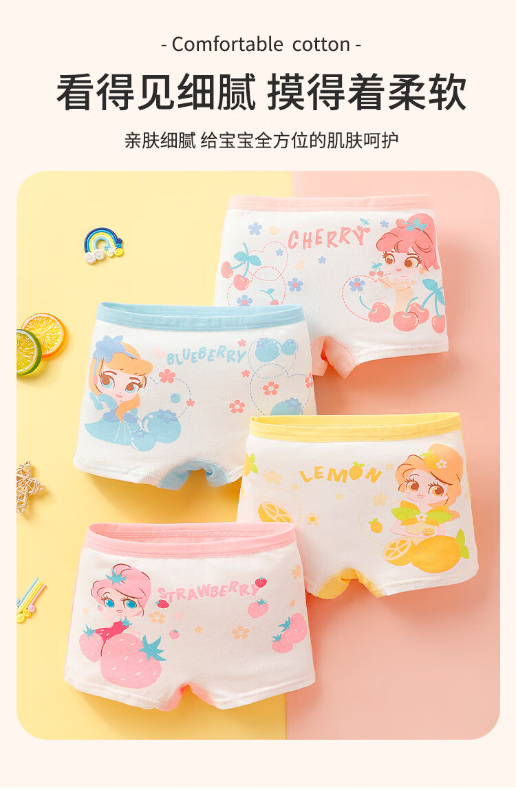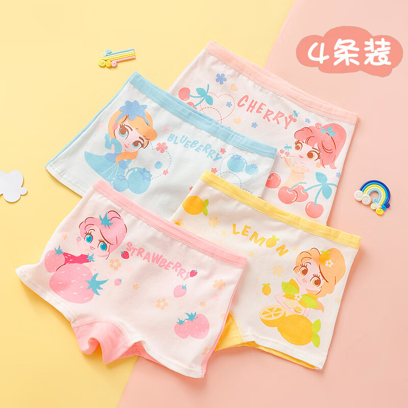 MQDMINI女童内裤纯棉a类平角儿童四角短裤全棉宝宝小女孩中大童不夹屁屁 水果公主【纯棉4条装】 均码 2XL码10-13岁55-68斤