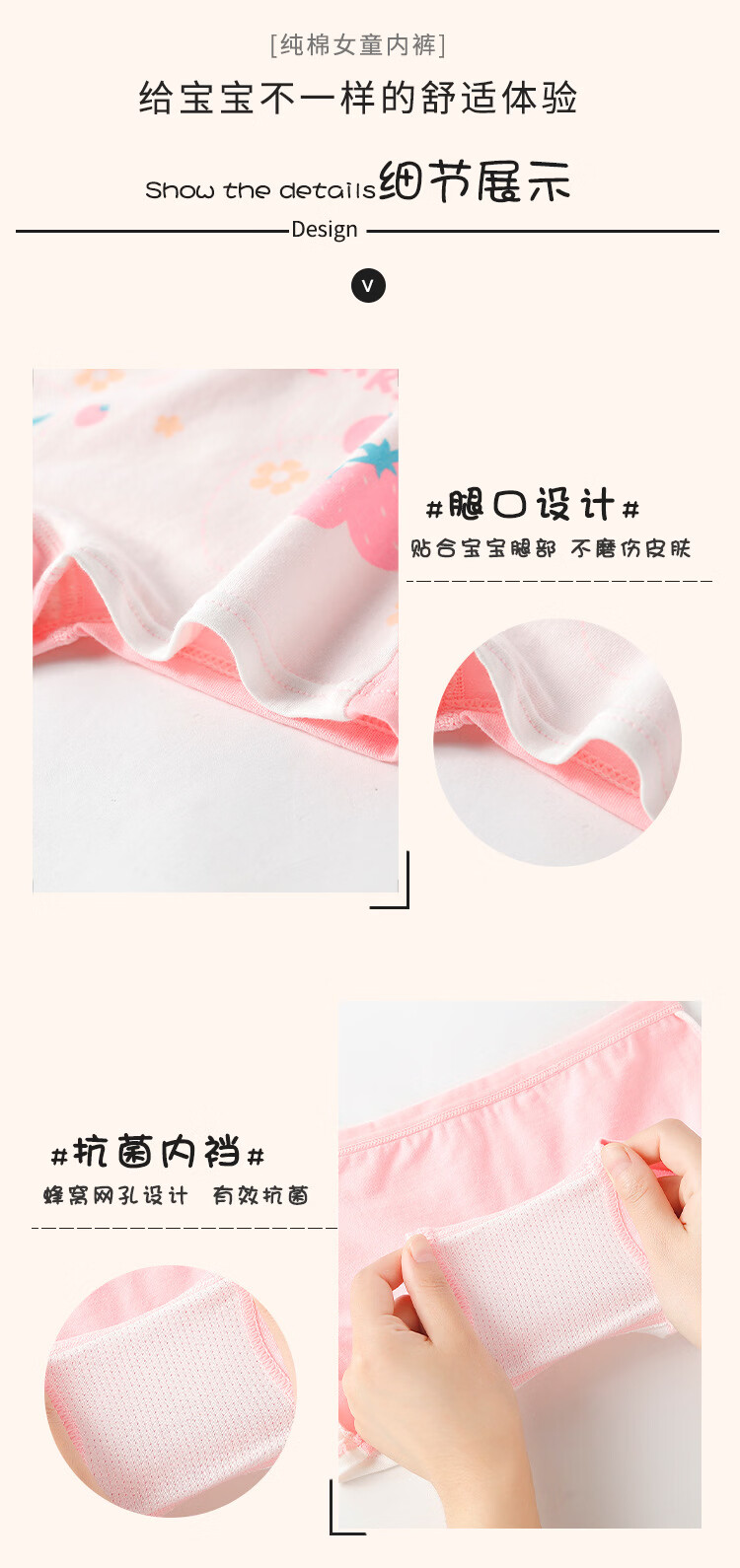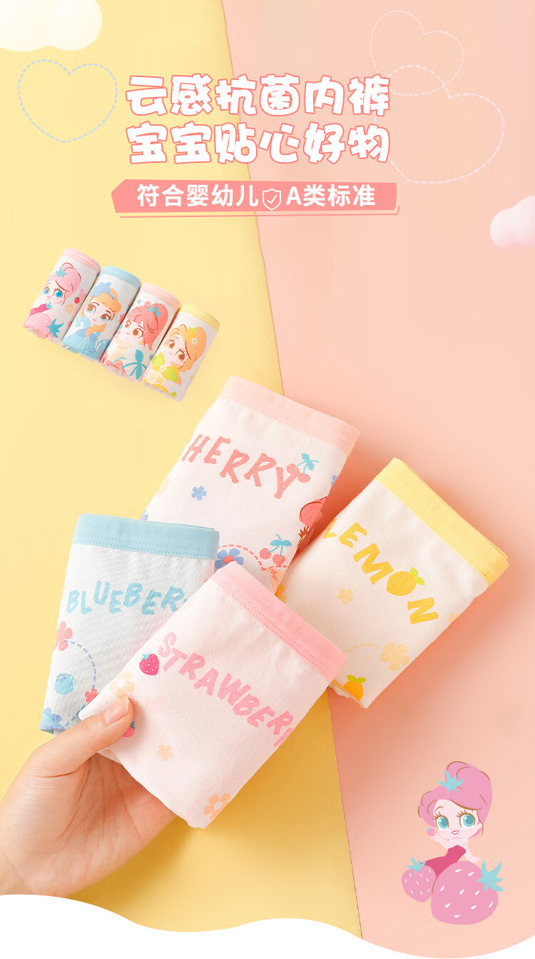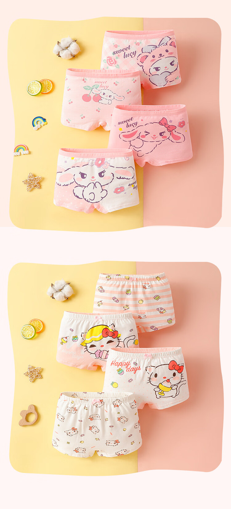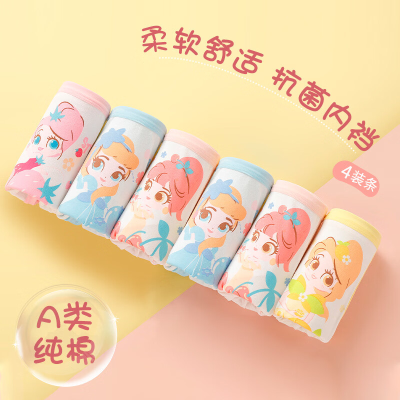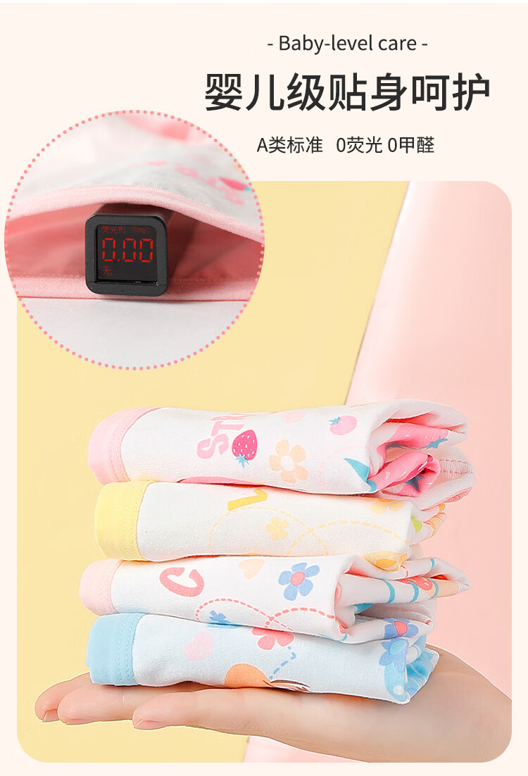 MQDMINI女童内裤纯棉a类平角儿童四角短裤全棉宝宝小女孩中大童不夹屁屁 水果公主【纯棉4条装】 均码 2XL码10-13岁55-68斤