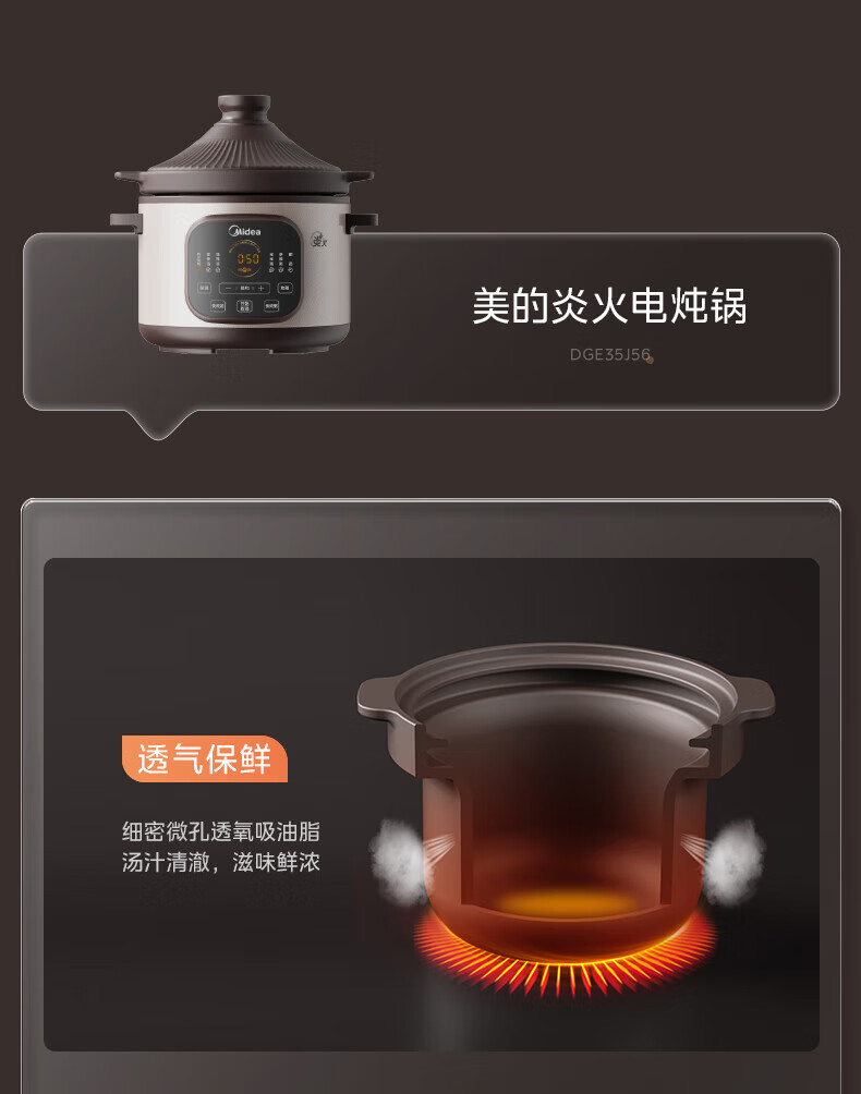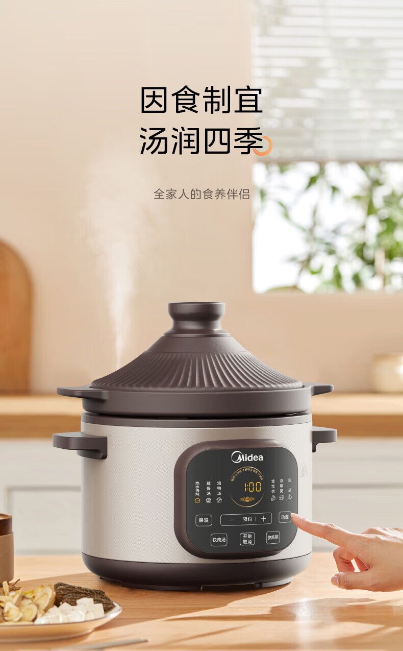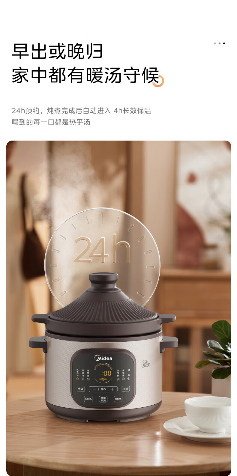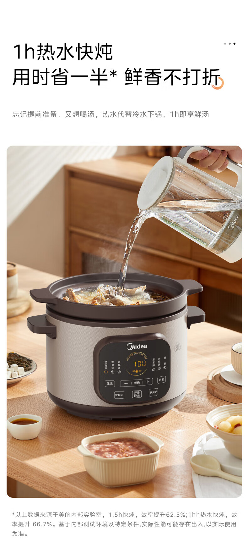 美的(Midea)电炖锅 电炖盅 电煮锅煲汤锅炖汤锅 电砂锅 煮粥锅 紫砂紫陶内胆煲养生锅家用智能预约保温煮锅 DGE35J56【紫砂快炖】 3.5L
