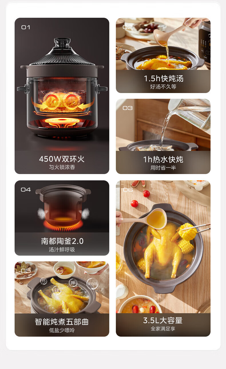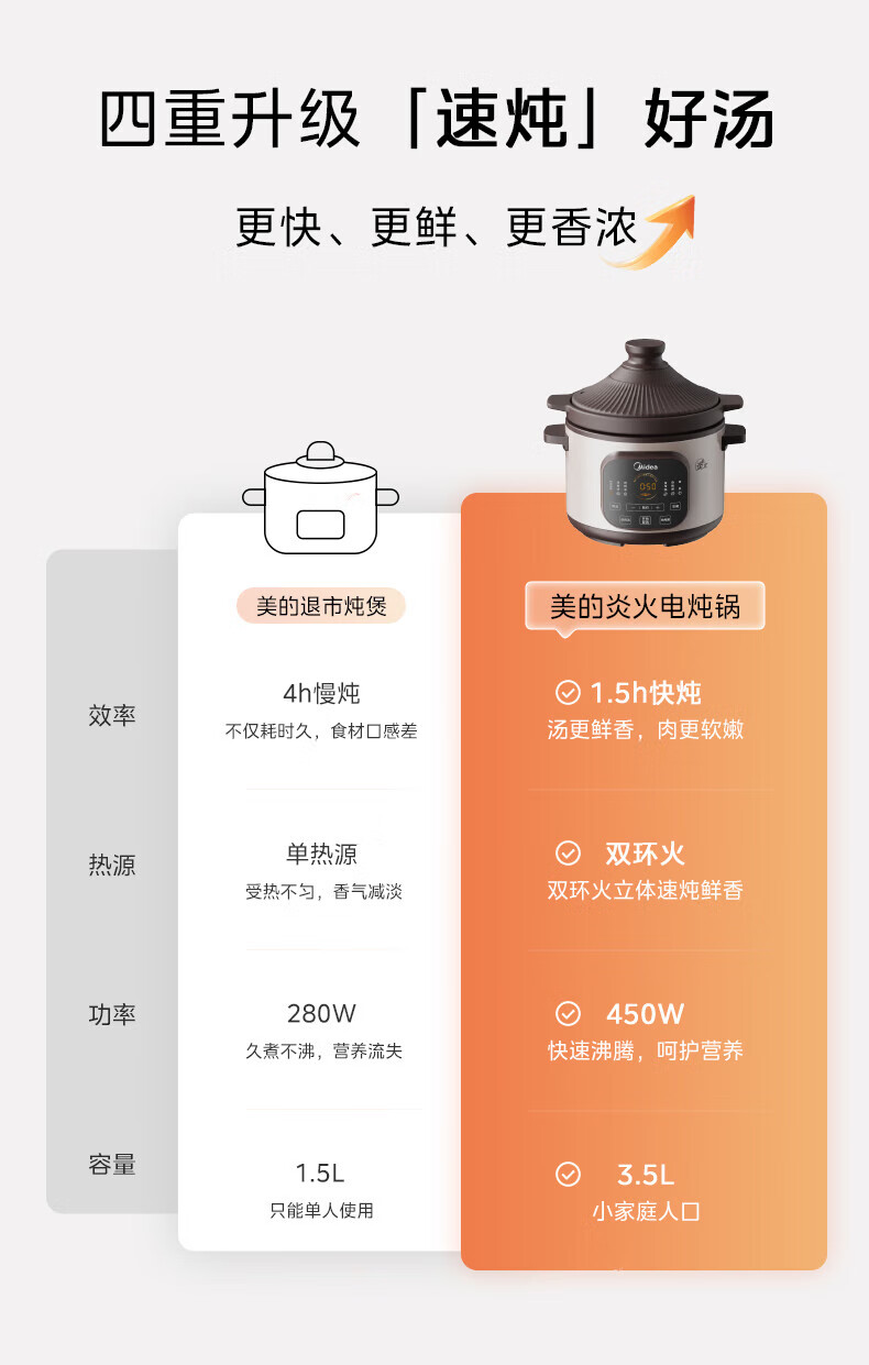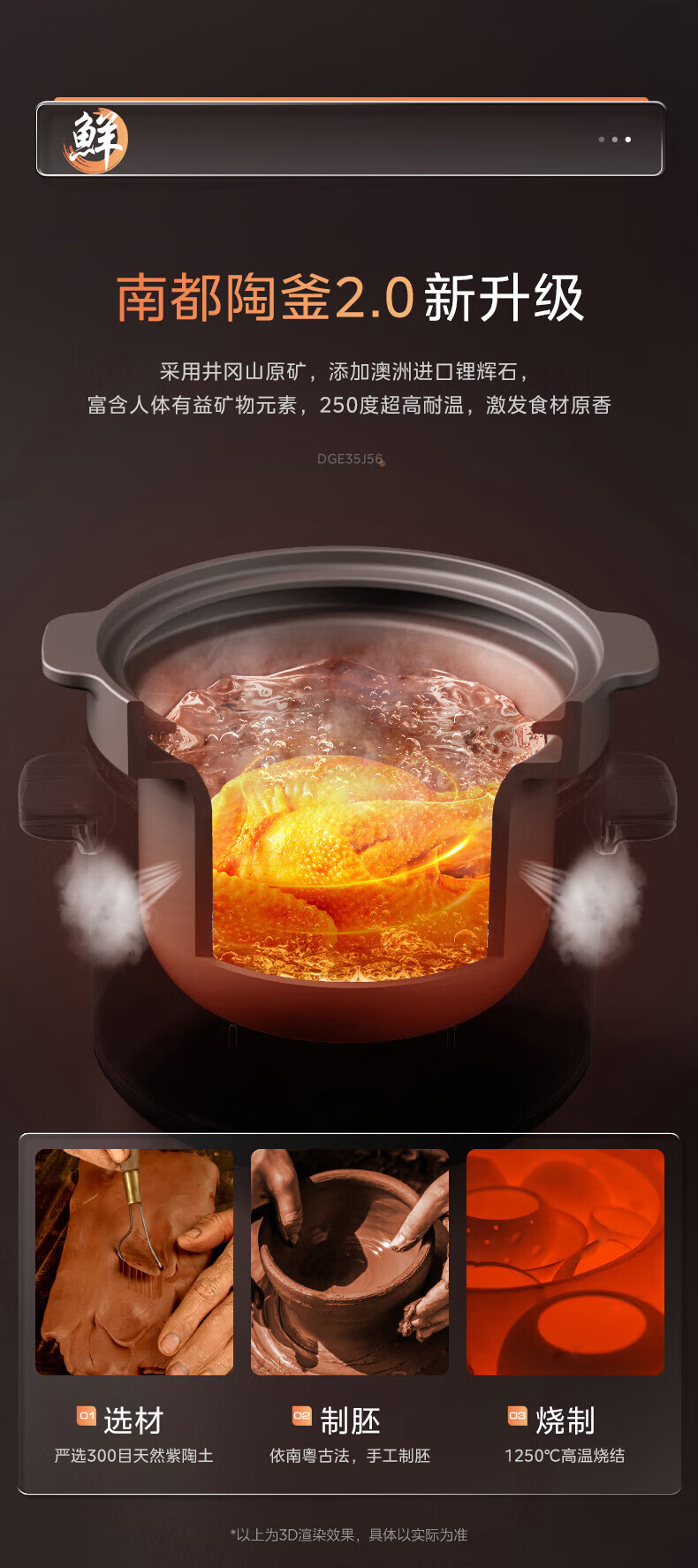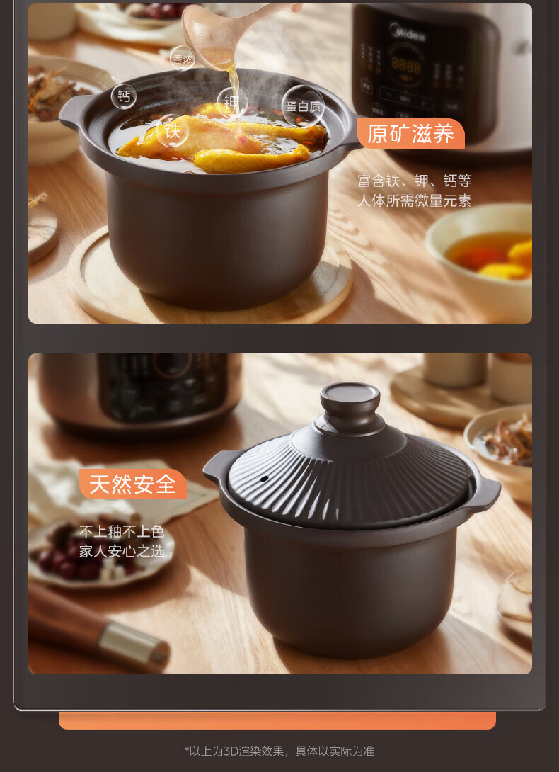 美的(Midea)电炖锅 电炖盅 电煮锅煲汤锅炖汤锅 电砂锅 煮粥锅 紫砂紫陶内胆煲养生锅家用智能预约保温煮锅 DGE35J56【紫砂快炖】 3.5L