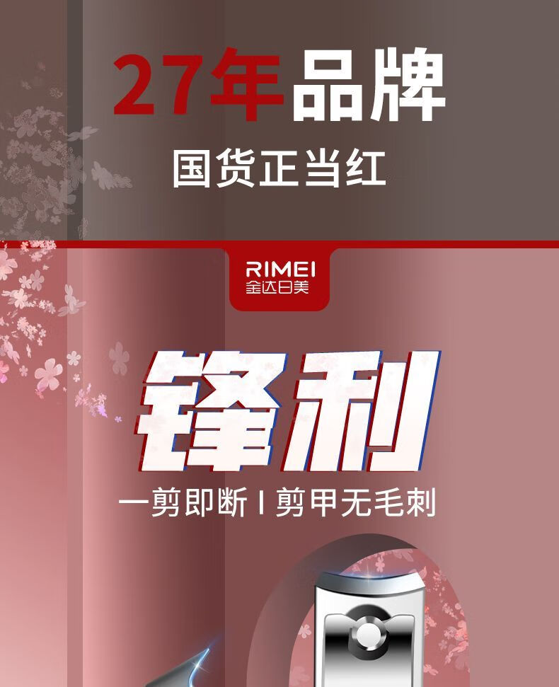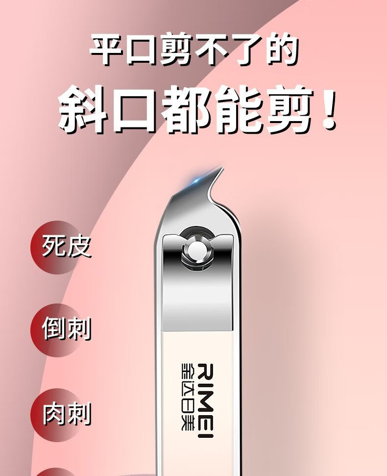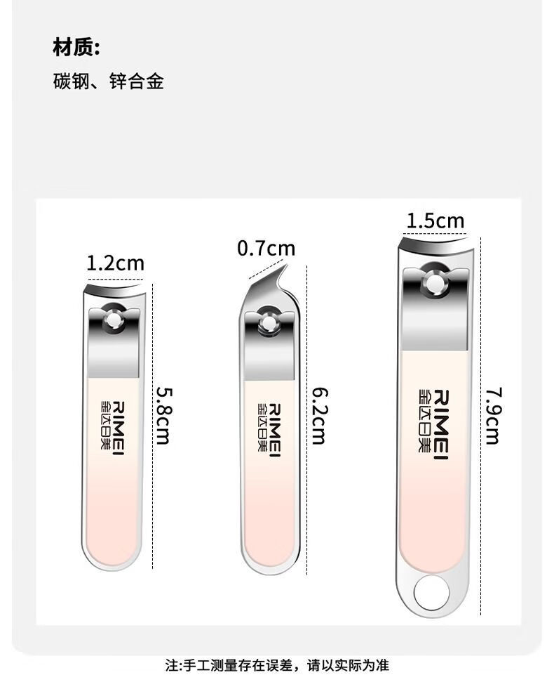 金达日美指甲刀套装家用单个指甲剪正口斜口指甲刀正品原装指甲钳修脚工具 RIMEI-渐变粉指甲刀2件套+玻璃挫 1件
