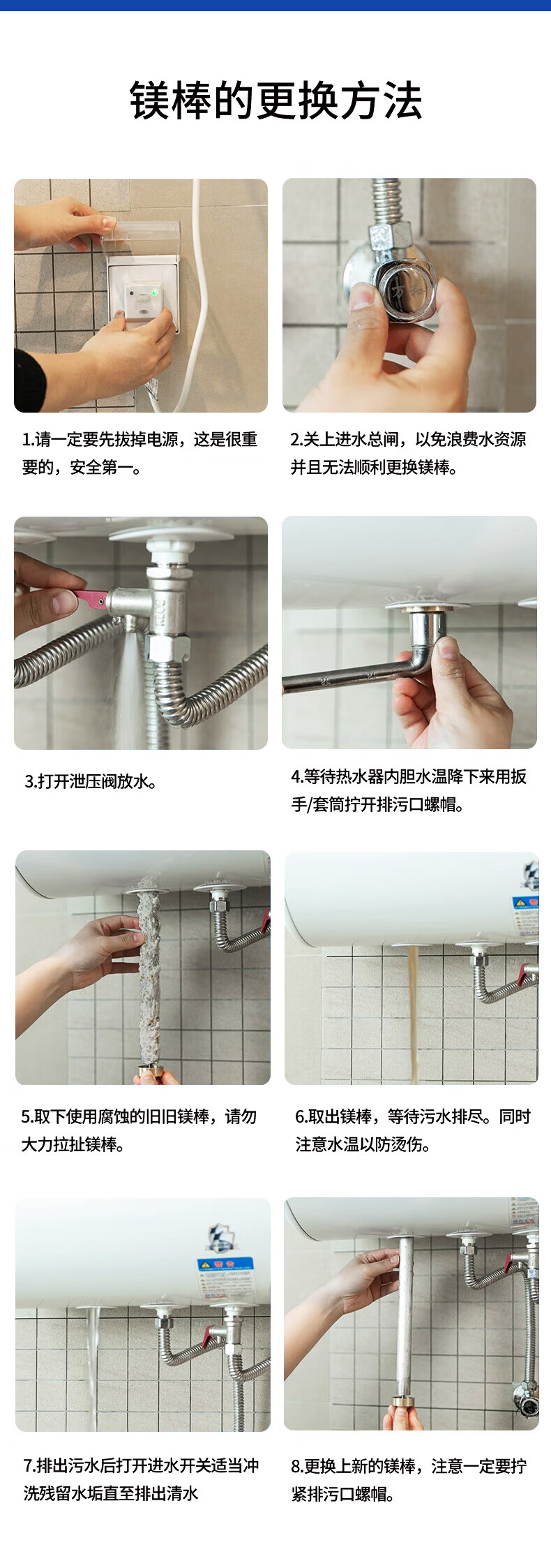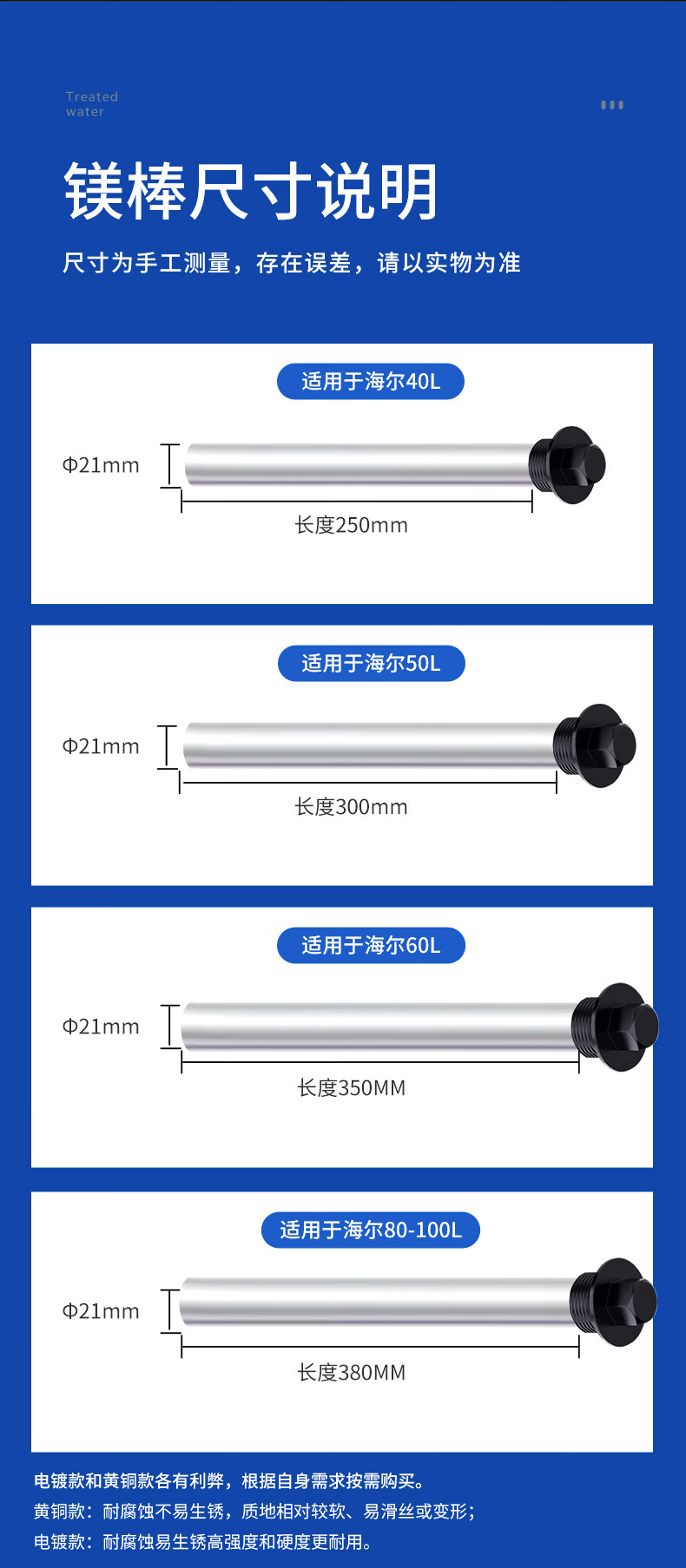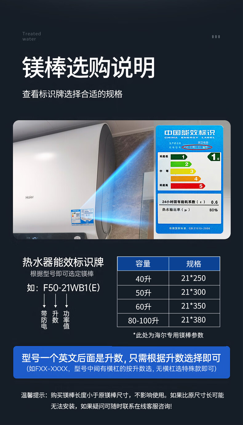 超人(chaoren)适用海尔电热水器镁棒家用热水器排污水垢阳极棒配件带除垢剂扳手螺帽40L/50L/60L/80L/100L通用 【海尔60L热水器镁棒】长度350mm 1寸黑色螺母(送套筒扳手+除垢剂)