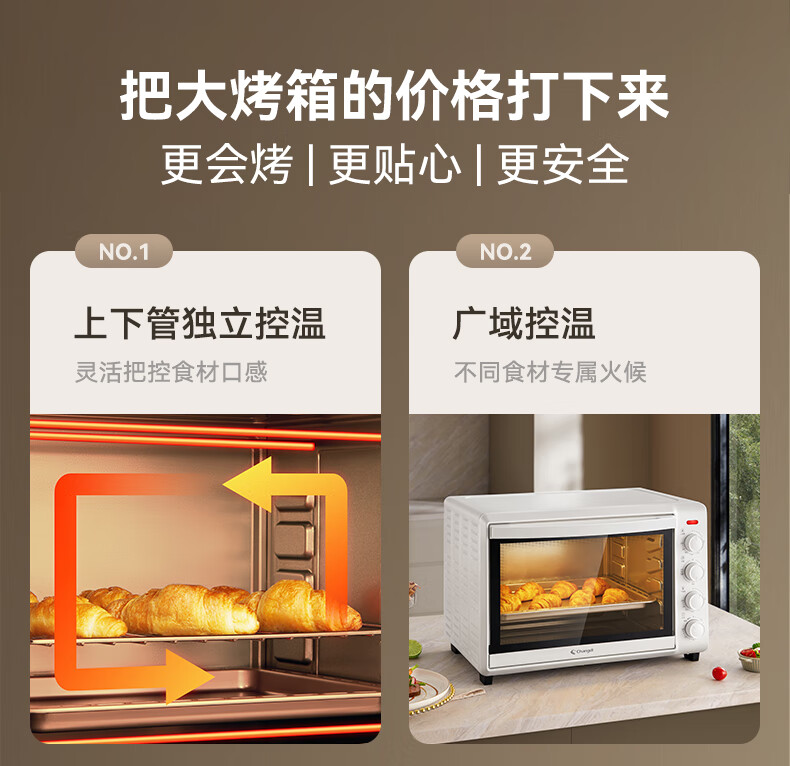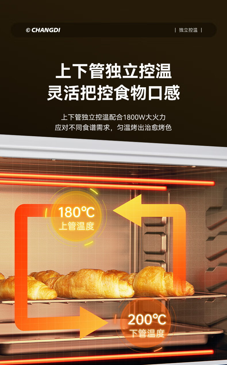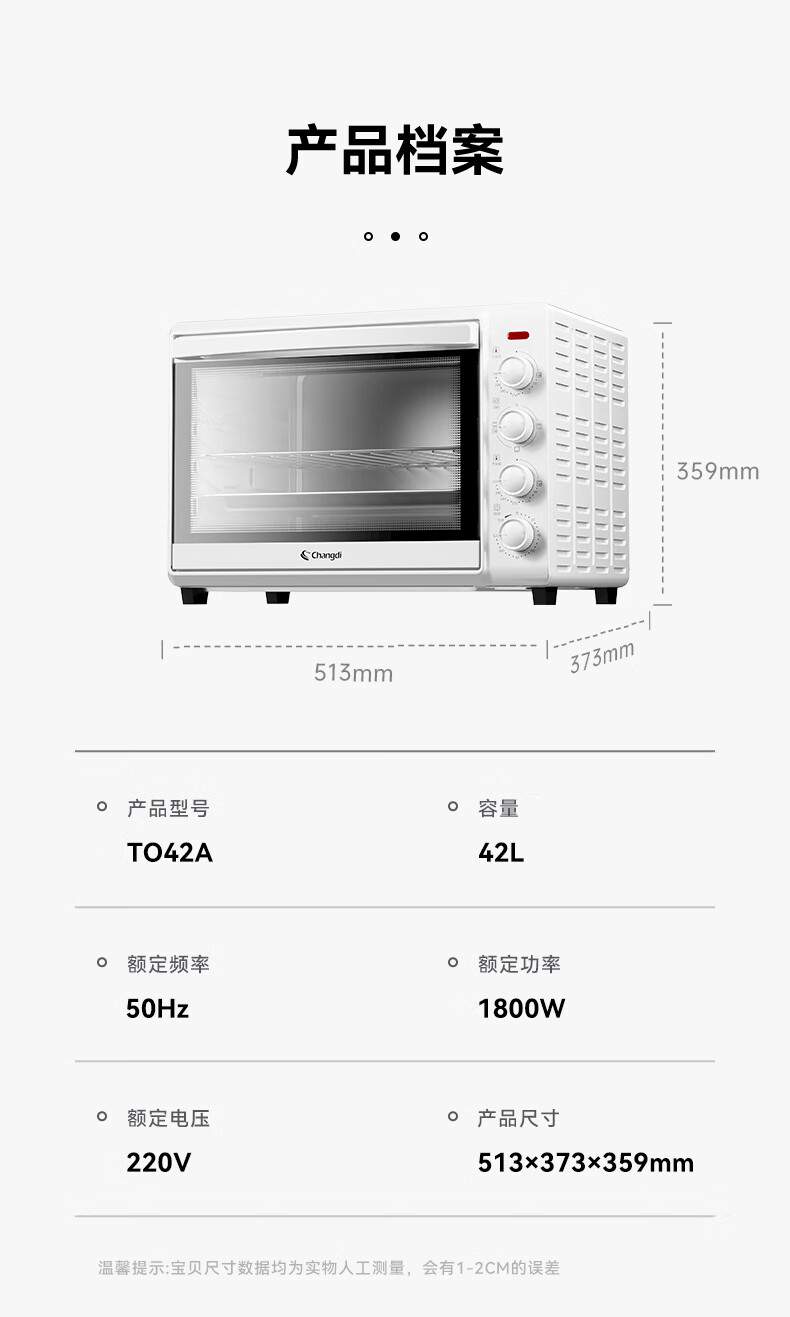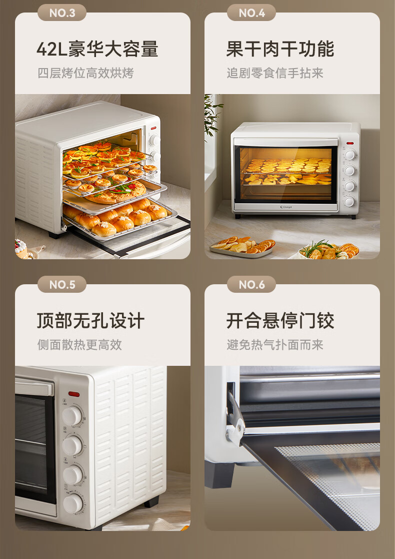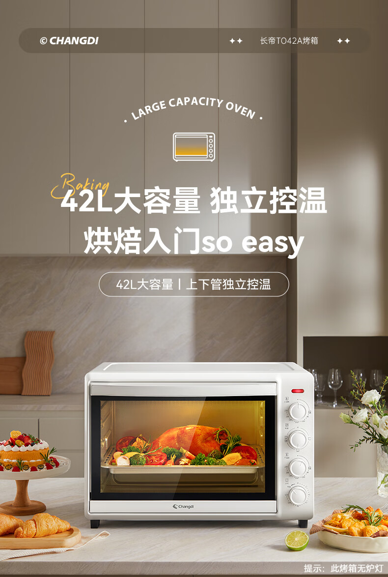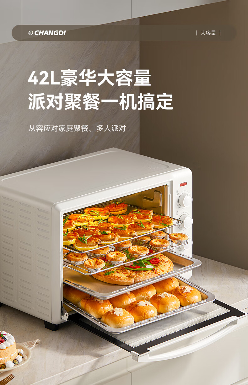 长帝(changdi)家用42L大容量多功能电烤箱独立控温易操控多层烤位多功能烘焙 独立控温四层烤位 42L