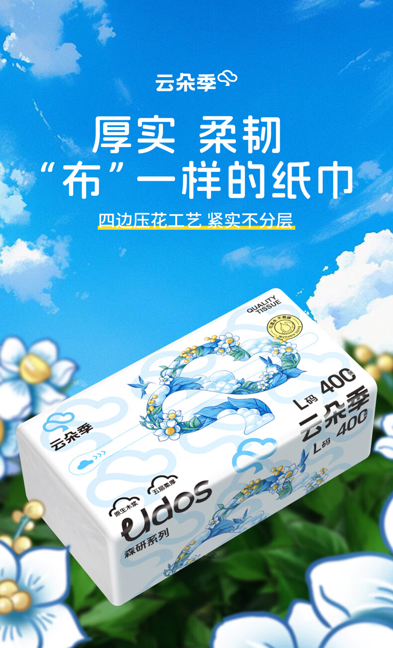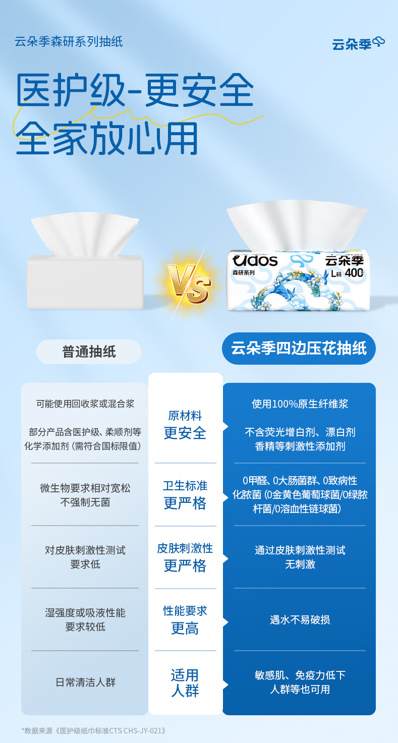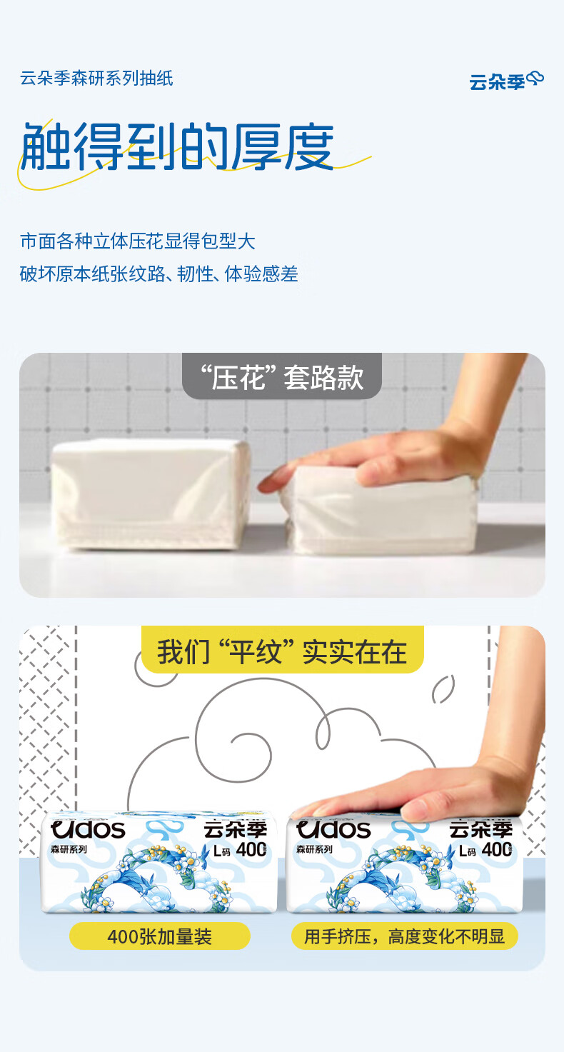 云朵季大号抽纸L码医护级加厚纸巾家用大尺寸餐巾纸卫生纸面巾纸 【L码大号】 5层 400张*20包