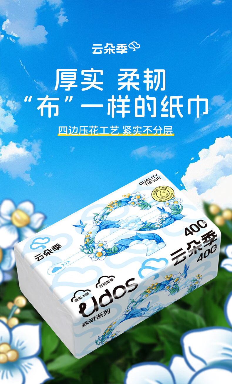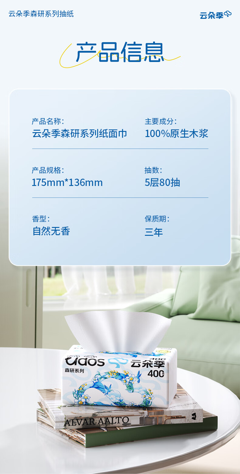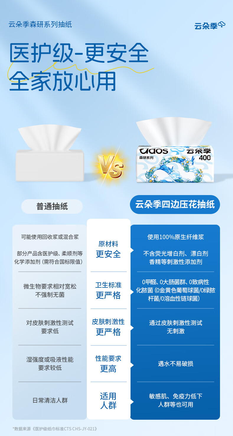 云朵季大号抽纸L码医护级加厚纸巾家用大尺寸餐巾纸卫生纸面巾纸 【L码大号】 5层 400张*20包