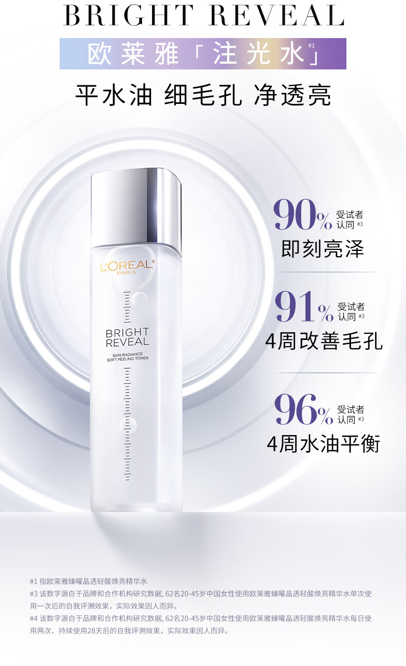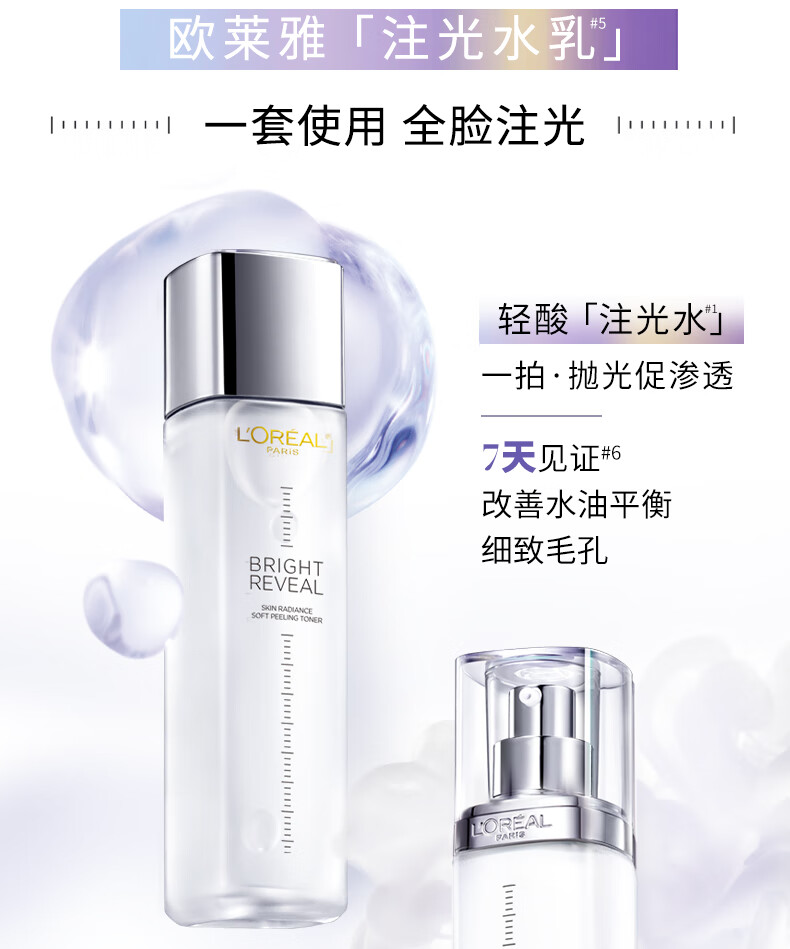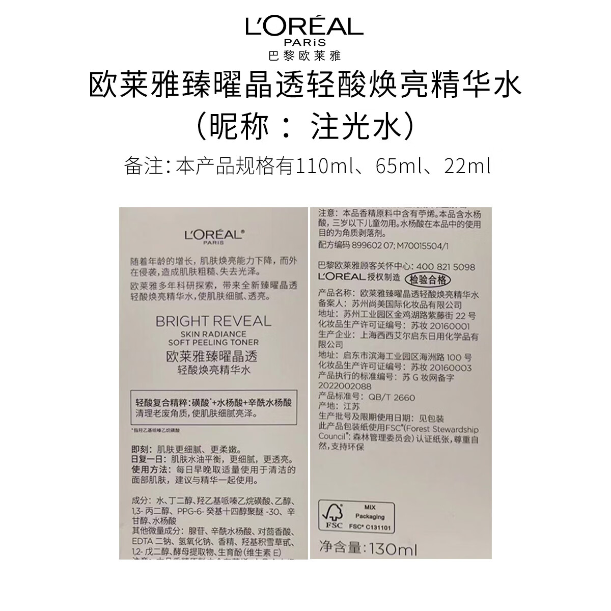 欧莱雅注光水130ml补水保湿控油提亮细致毛孔爽肤水护肤品圣诞礼物