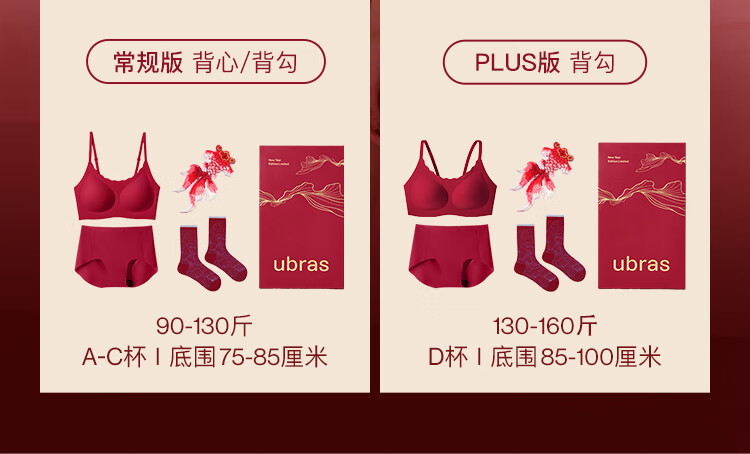 ubras刘雯同款26迎新大红盒无尺码本命年红内衣文胸骐骥红礼盒PLUS版