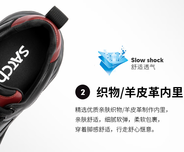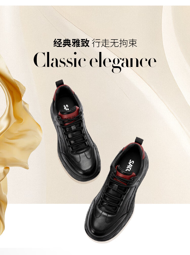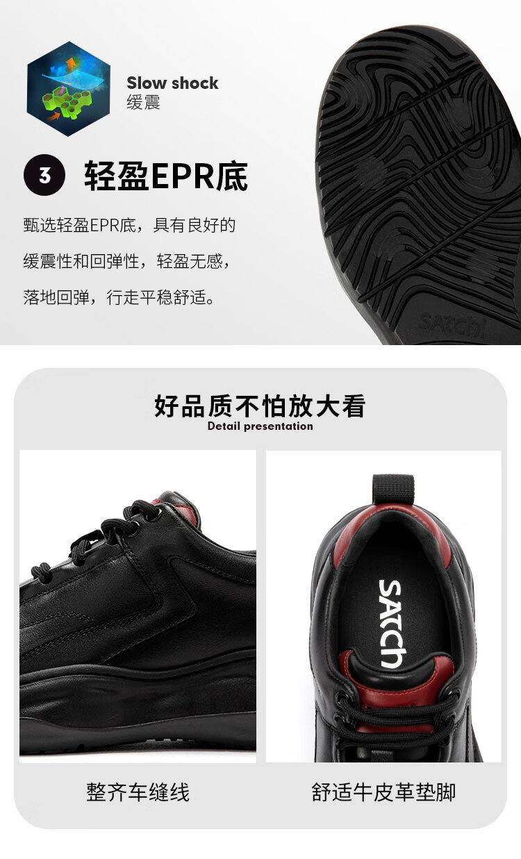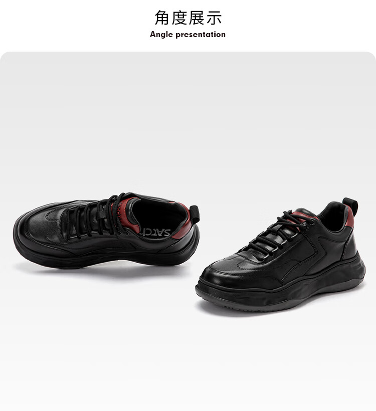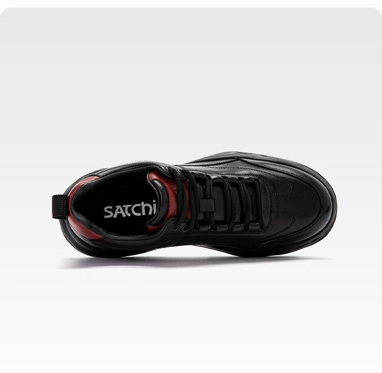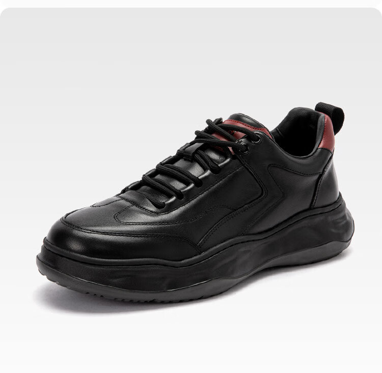 沙驰(SATCHI)男鞋【牛皮】新款轻软厚底撞色男士休闲鞋百搭板鞋运动鞋跑步鞋 黑/红(X285C2207) 42 欧码(选小一码)