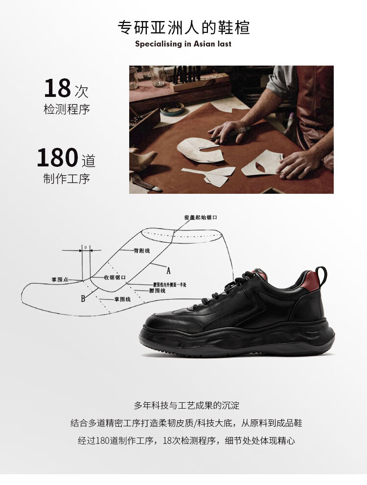 哈森(Harson)牛皮革男鞋秋冬运动皮鞋厚底商务休闲鞋公务通勤健步鞋2025年新款 黑色 41