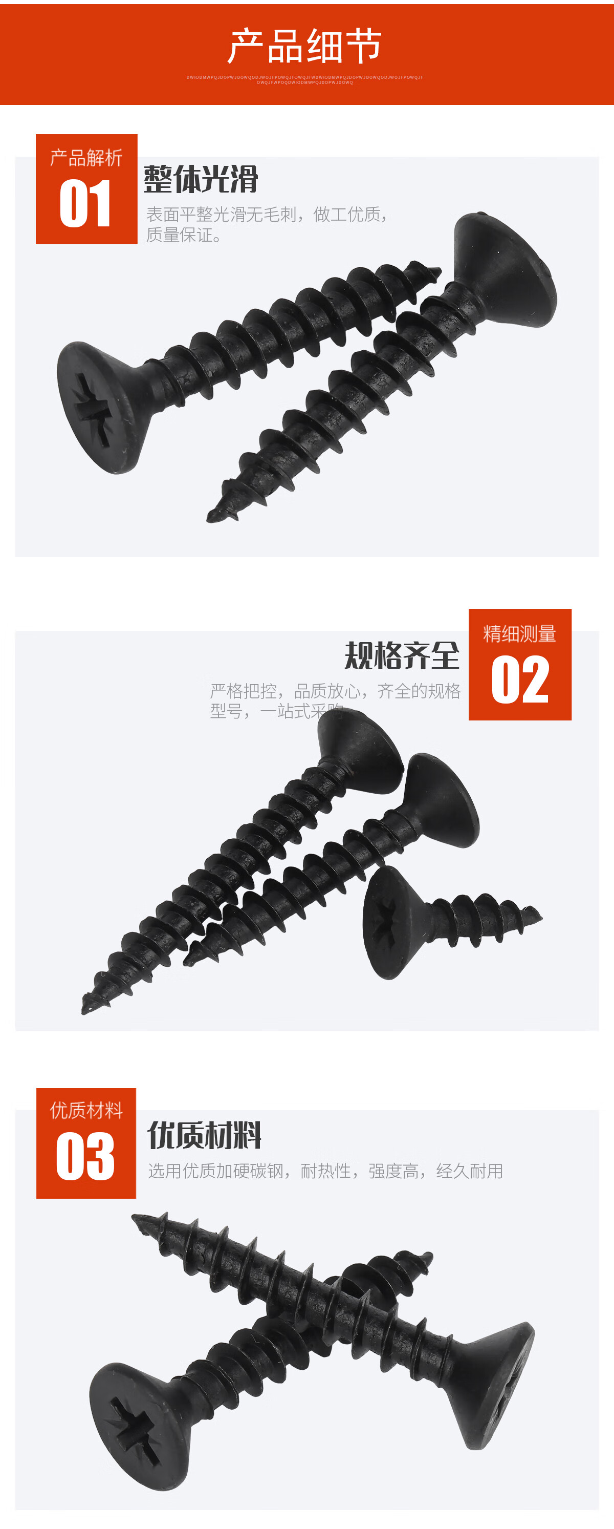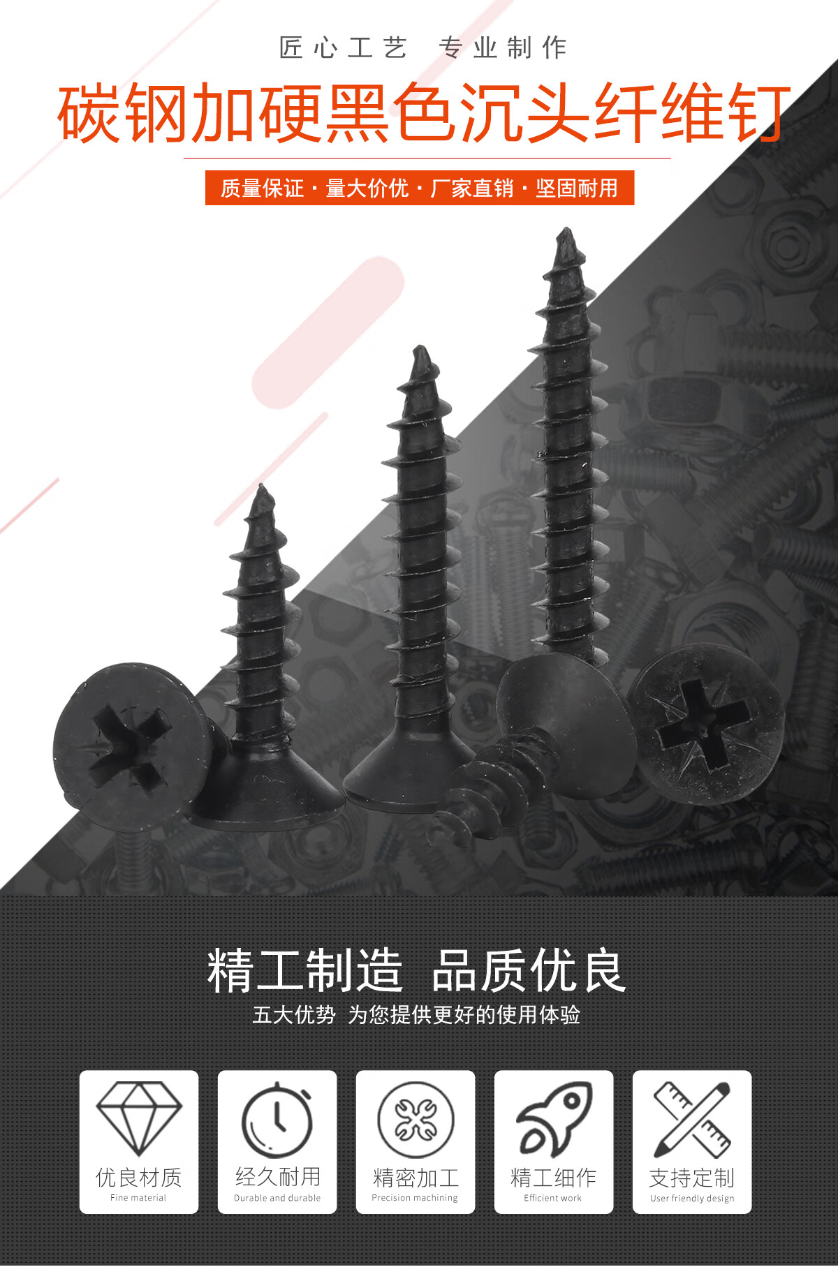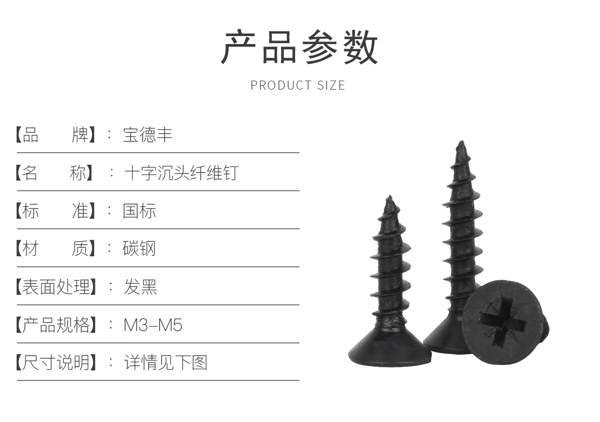 宝德丰高硬度纤维钉木螺丝沉头自攻螺丝钉发黑高强度平头螺钉M3M3.5M4M5 M3x10(500只)