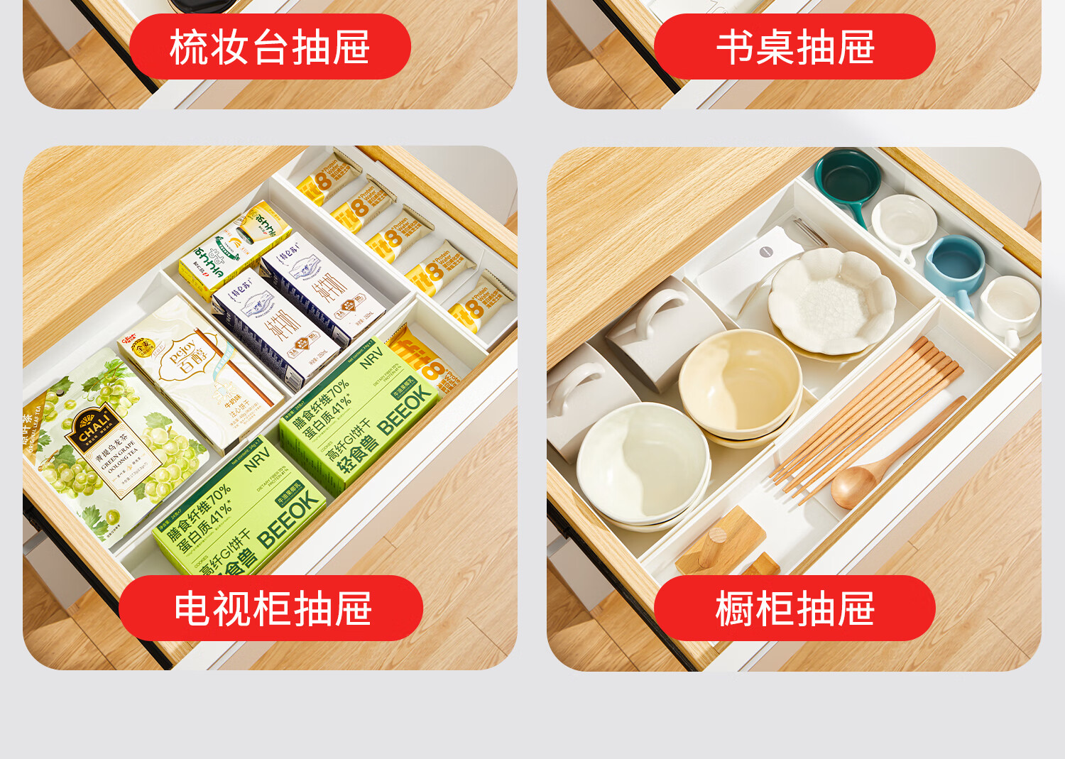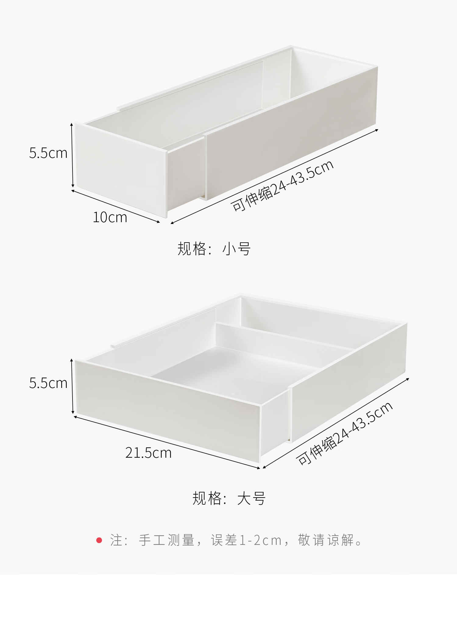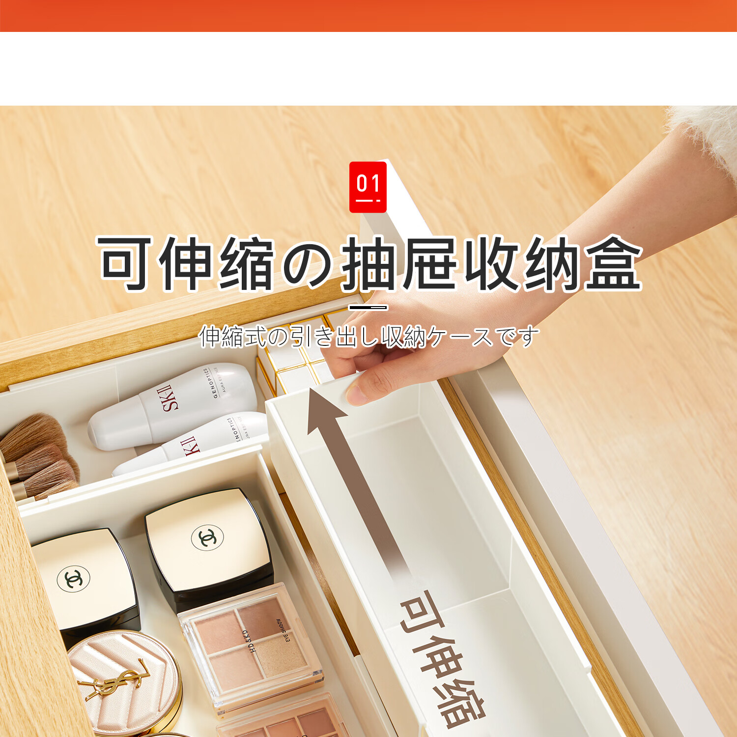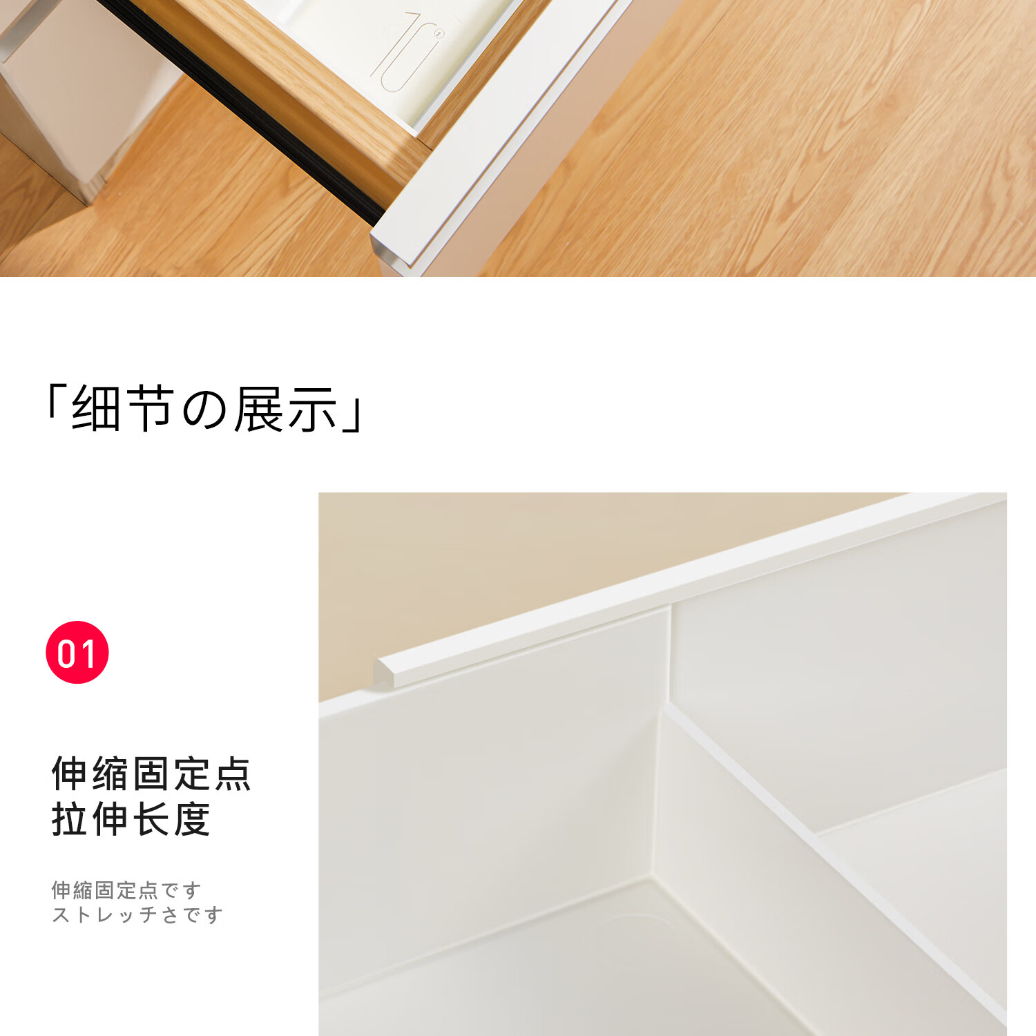 吱凡日本可伸缩收纳盒分隔抽屉式内置整理盒厨房餐具桌面化妆品分格盒 【白色伸缩窄款】1个装【高5.5cm】